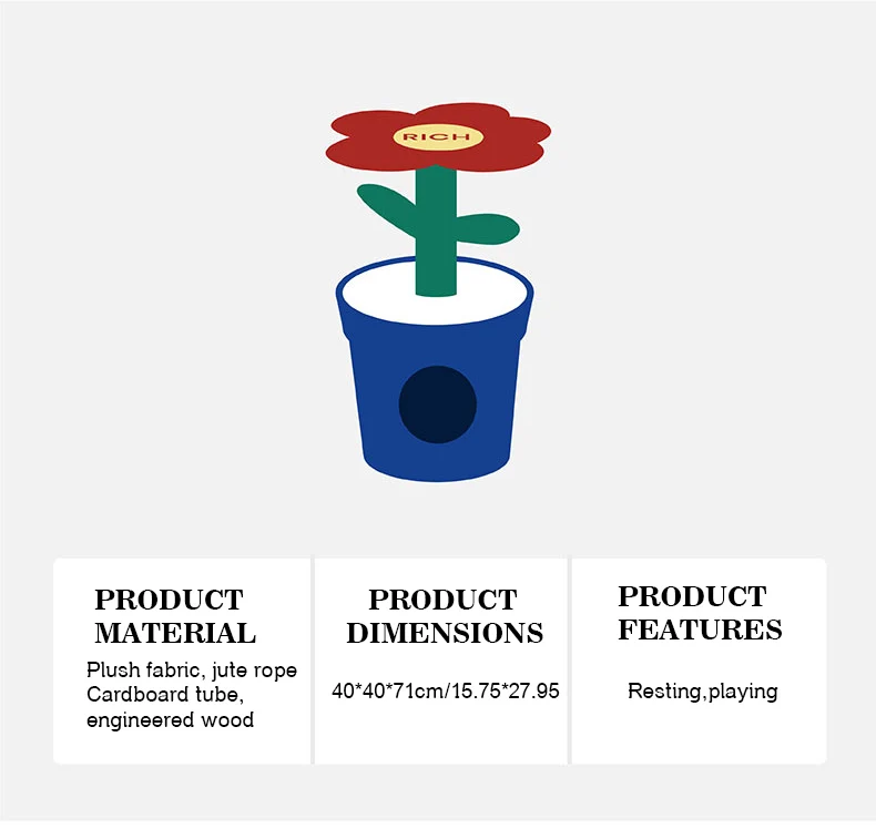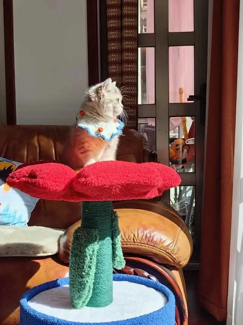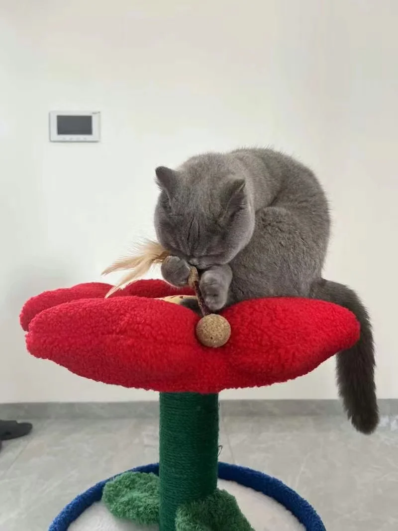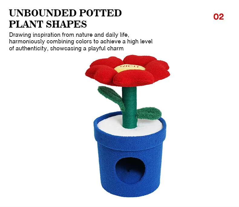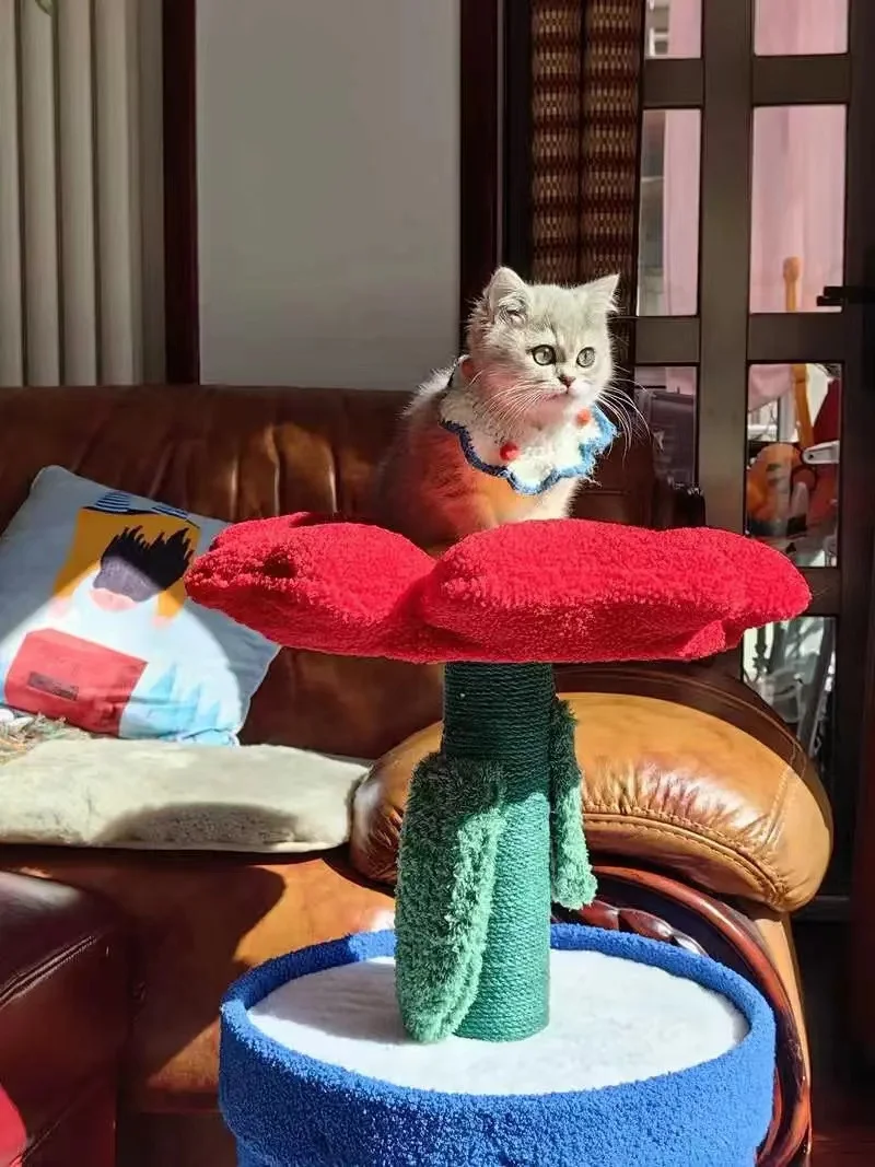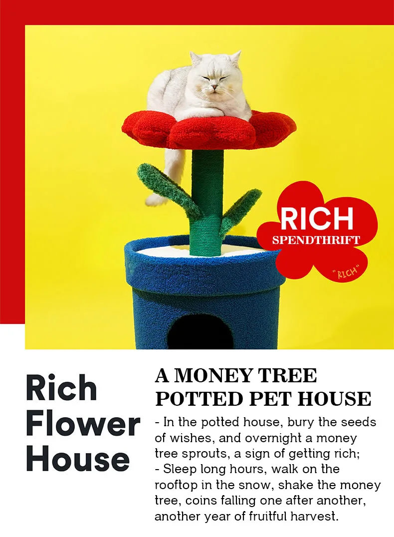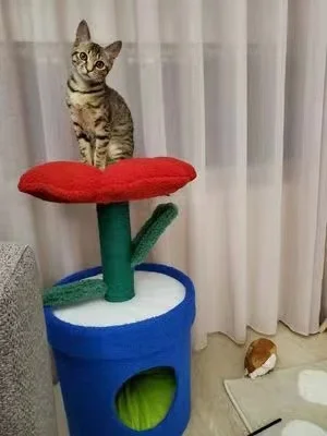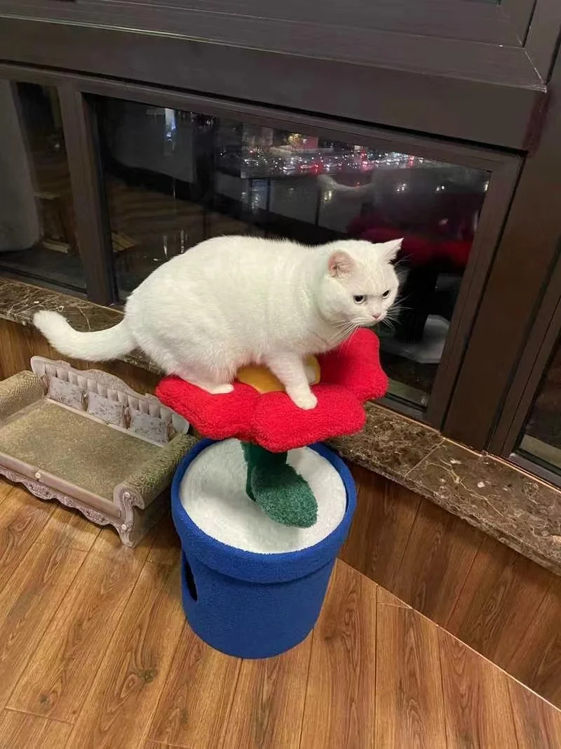 Árbol para gatos en maceta con flores rojas y cama para gatos integrada debajo del árbol para gatos de tamaño mediano (adecuado para gatos menores de 15 libras)