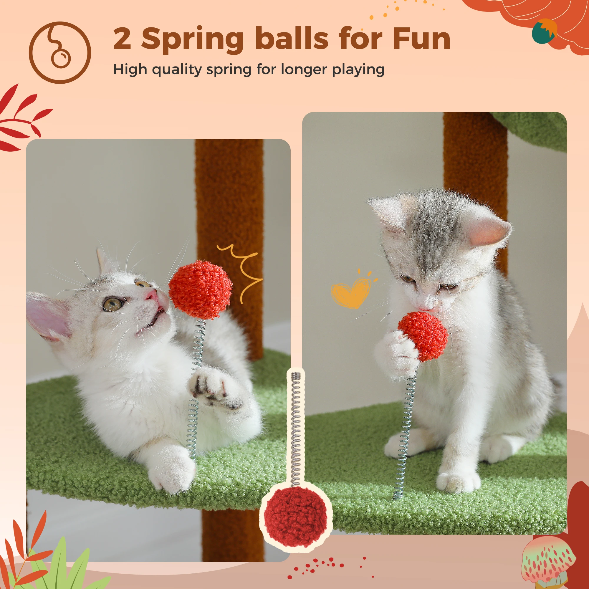 Centro de actividades multifuncional para gatos:¡Este completo árbol alto para gatos de madera puede servirse como parque infantil para gatos en su habitación!Equipado con un condominio espacioso, una hamaca pequeña y grande, postes rascadores masivos para gatos y bolas con pompones colgantes y de resorte que permiten a sus gatos saltar, trepar, ocultarse y descansar, liberando plenamente sus instintos naturales.