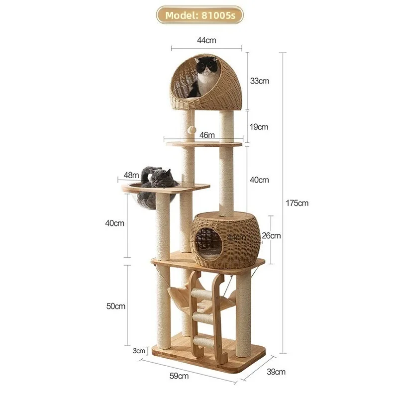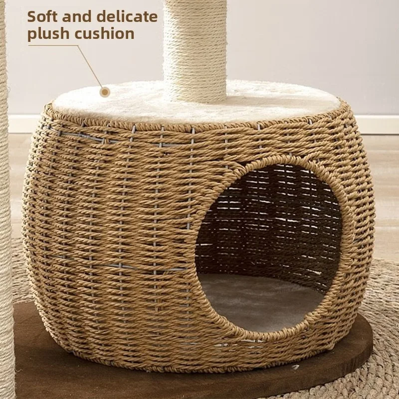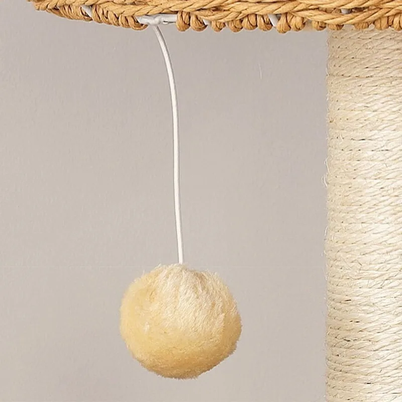 Información del producto Material: tablero de roble pulido y encerado, pilares de papel kraft envueltos externamente cuerda de cáñamo de espada Características: Felpa corta, fácil de limpiar, universal en todas las estaciones. "Paraíso del gato de las mascotas"