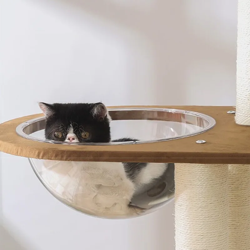 Árbol para gatos de madera maciza, árbol grande para dormir para gatos, cabina transparente, torre para gatitos, accesorios de juguete para mascotas, poste rascador para siesta para gatos