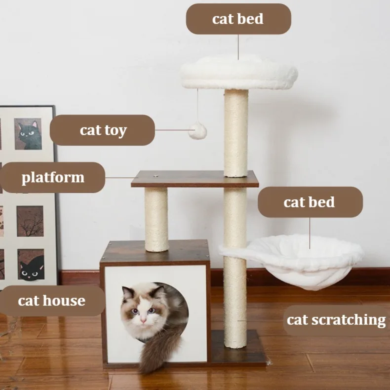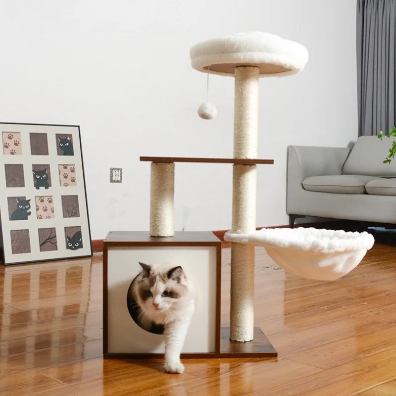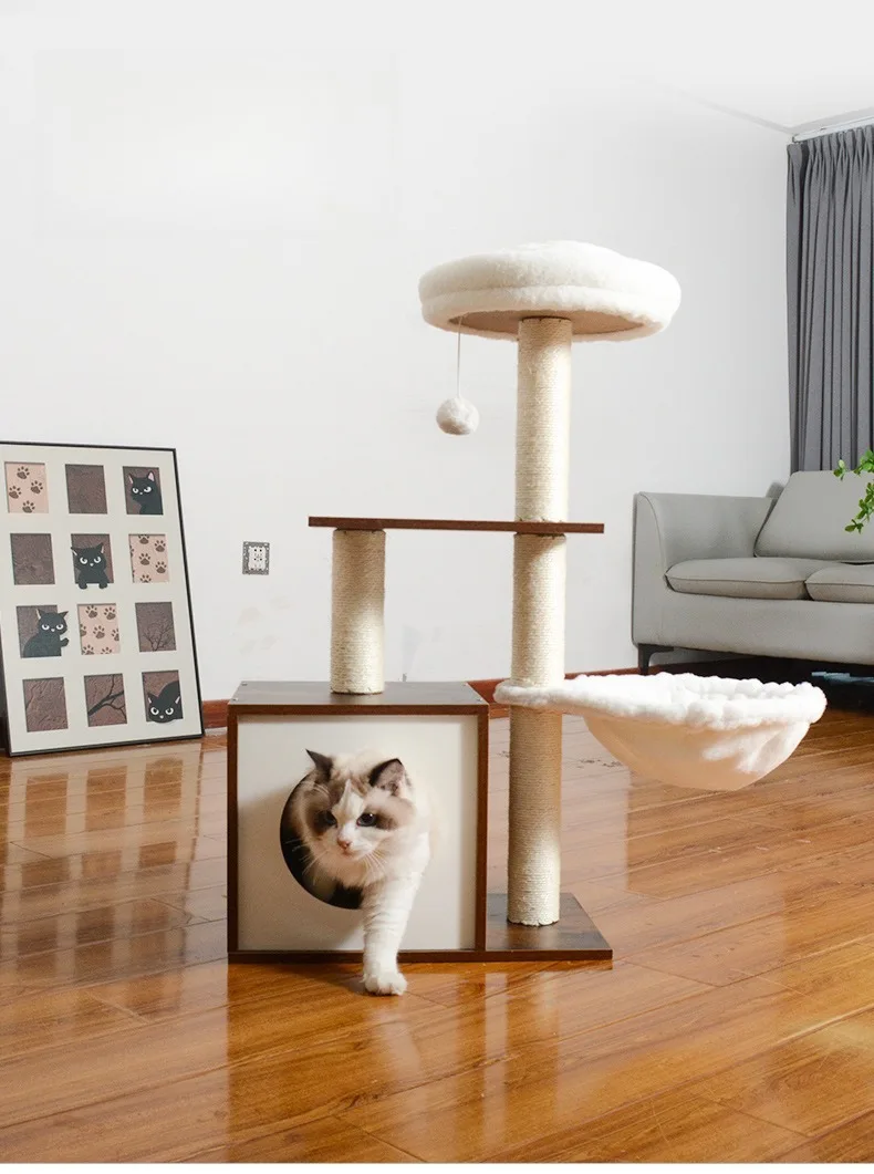 Árbol para gatos de madera maciza, gabinete interior, árboles para gatos, poste rascador, juguete, torre para gatos, cama rascador, escalar, ocultar, casa para mascotas de varios niveles