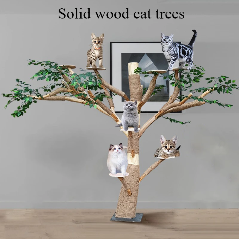 Árbol para gatos de madera maciza, poste alto, modelo grande, cuerda de Sisal, torre grande, árboles para gatitos baratos, rascador de escalada, suministros para mascotas