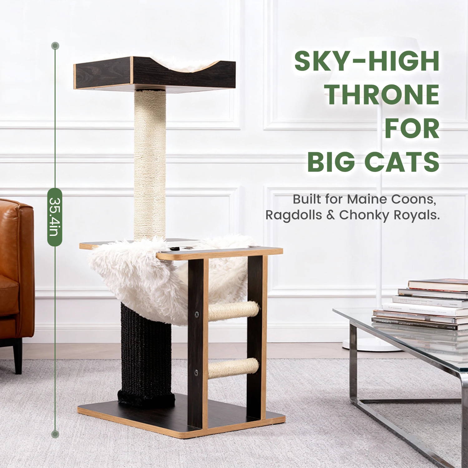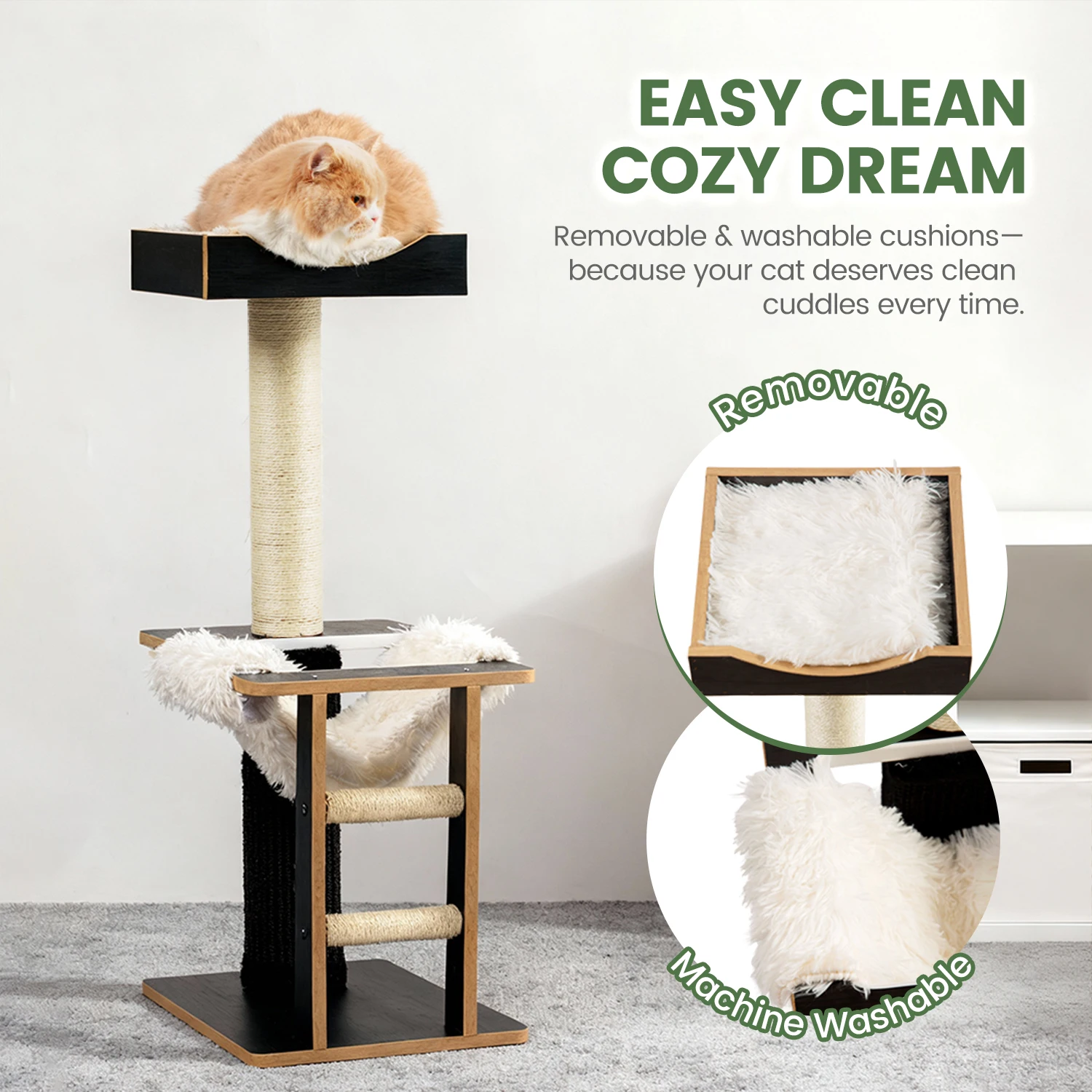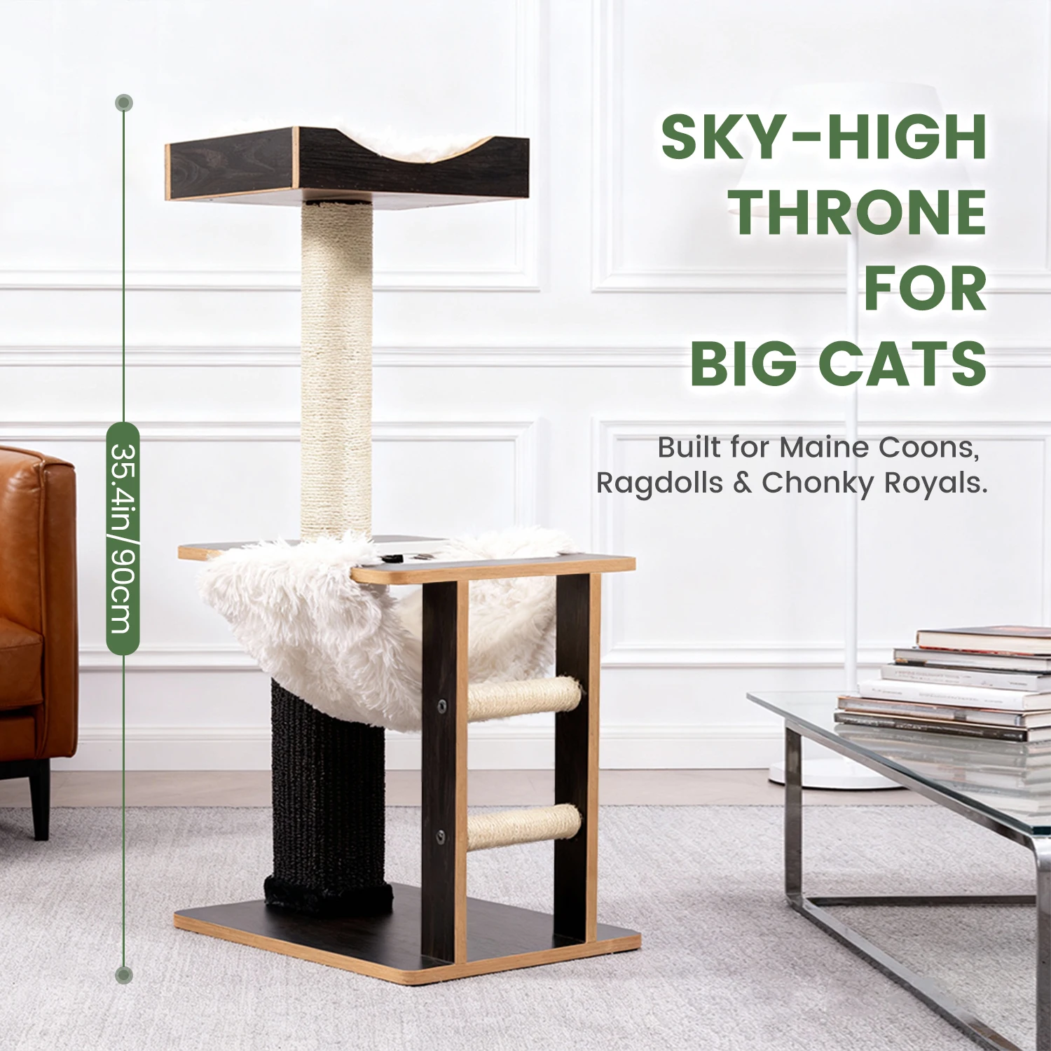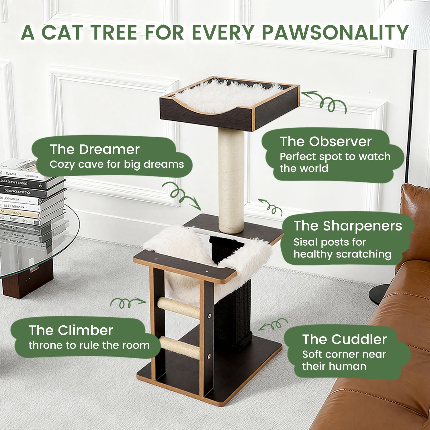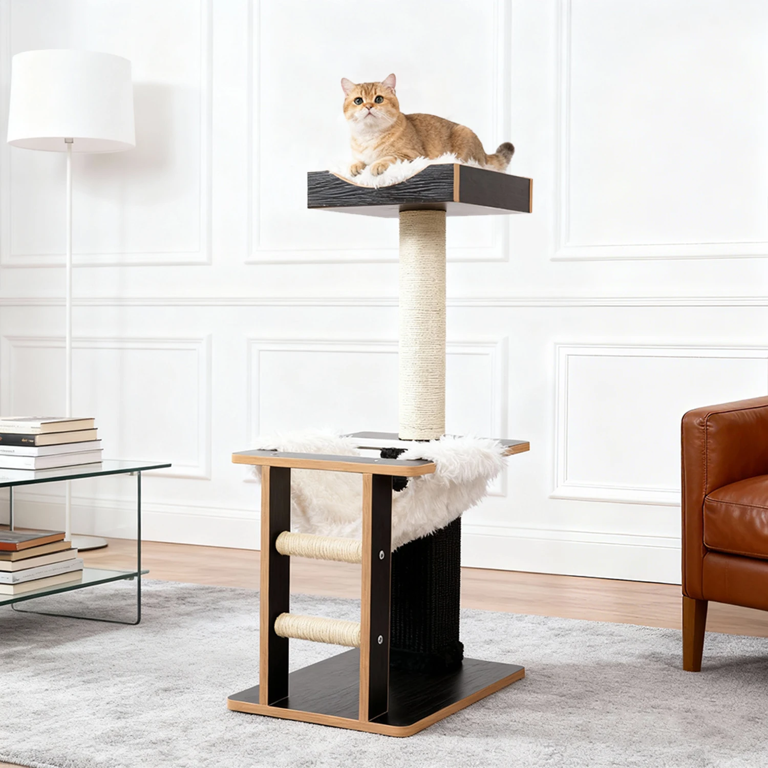 Árbol para gatos mediano de 35 pulgadas, marco de escalada para gatos modelo de escalera, torre para gatos de varios niveles con poste rascador para gatos, perca acogedora para gatos