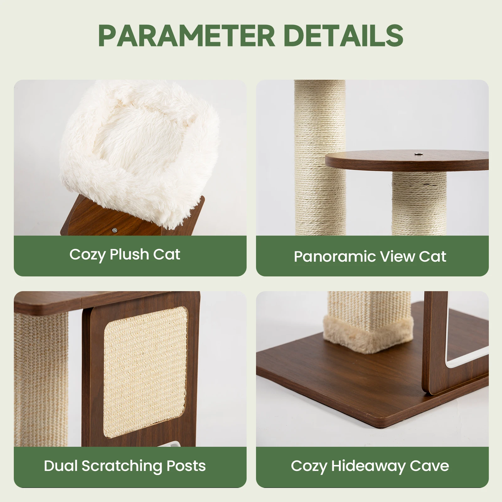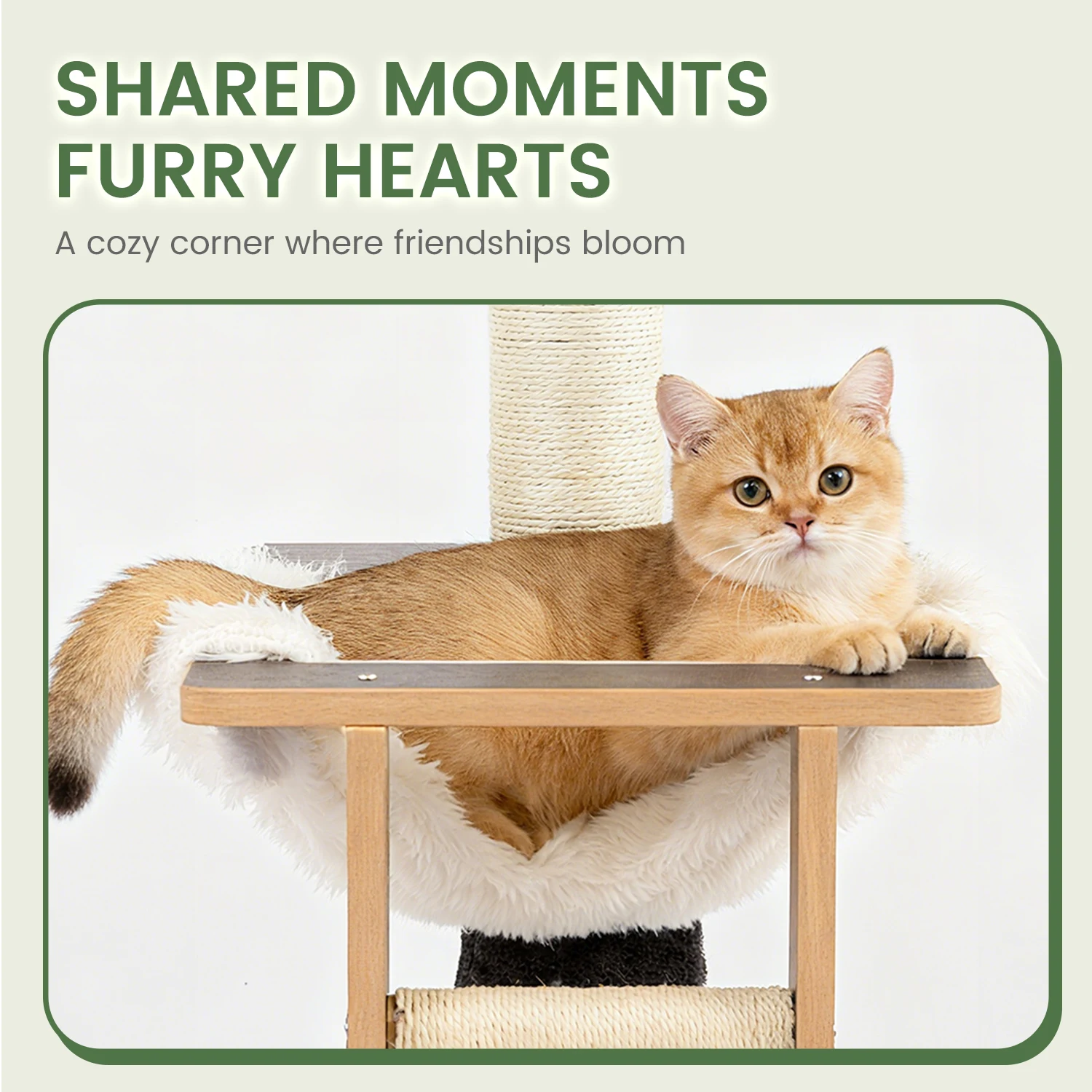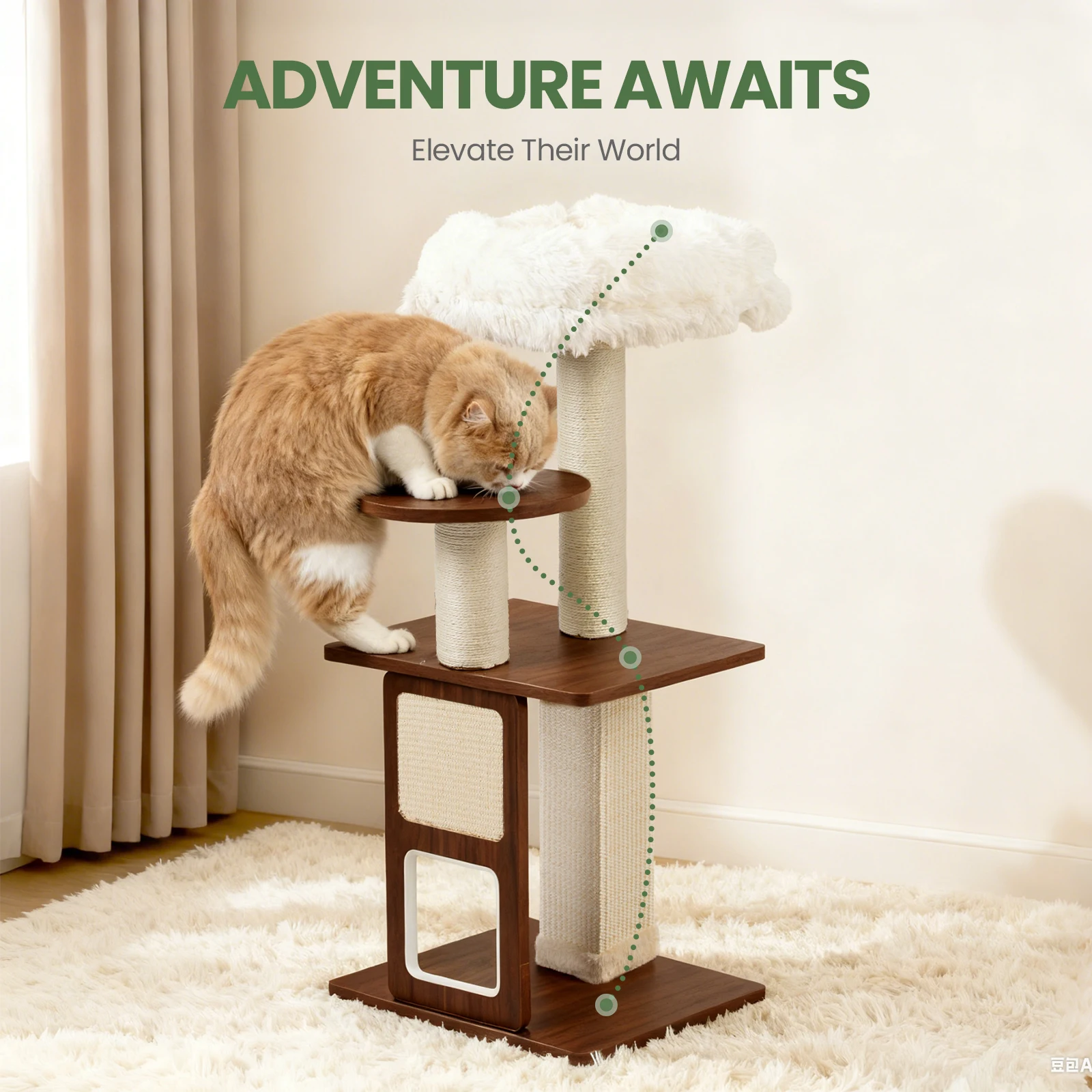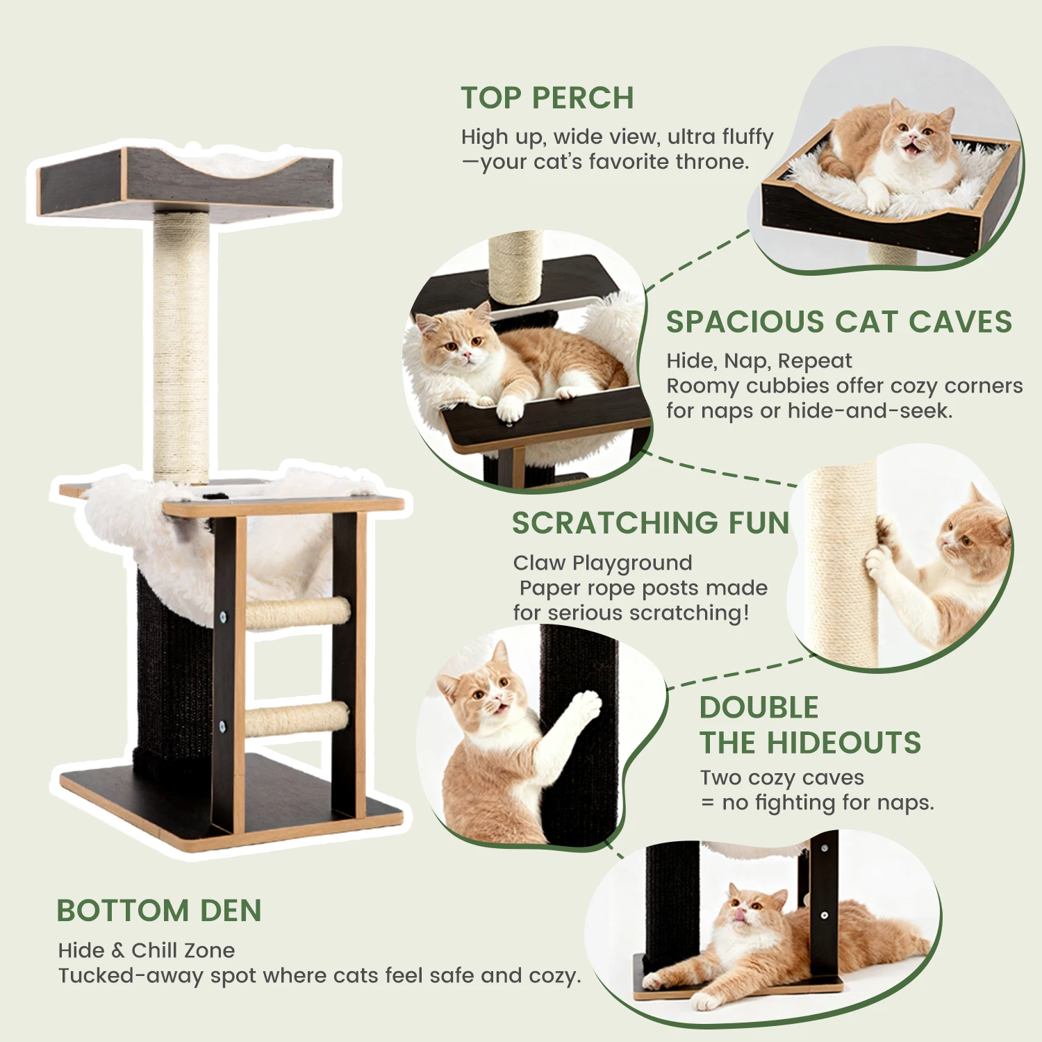 Árbol para gatos mediano de 35 pulgadas, marco de escalada para gatos modelo de escalera, torre para gatos de varios niveles con poste rascador para gatos, perca acogedora para gatos