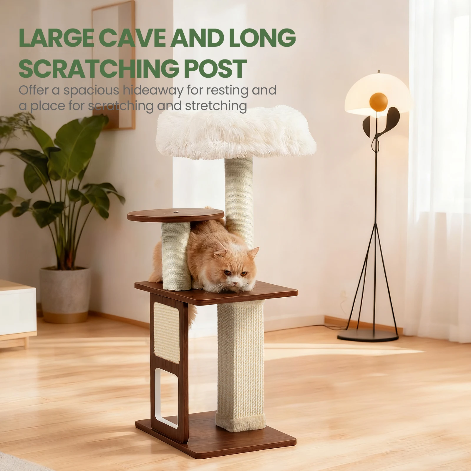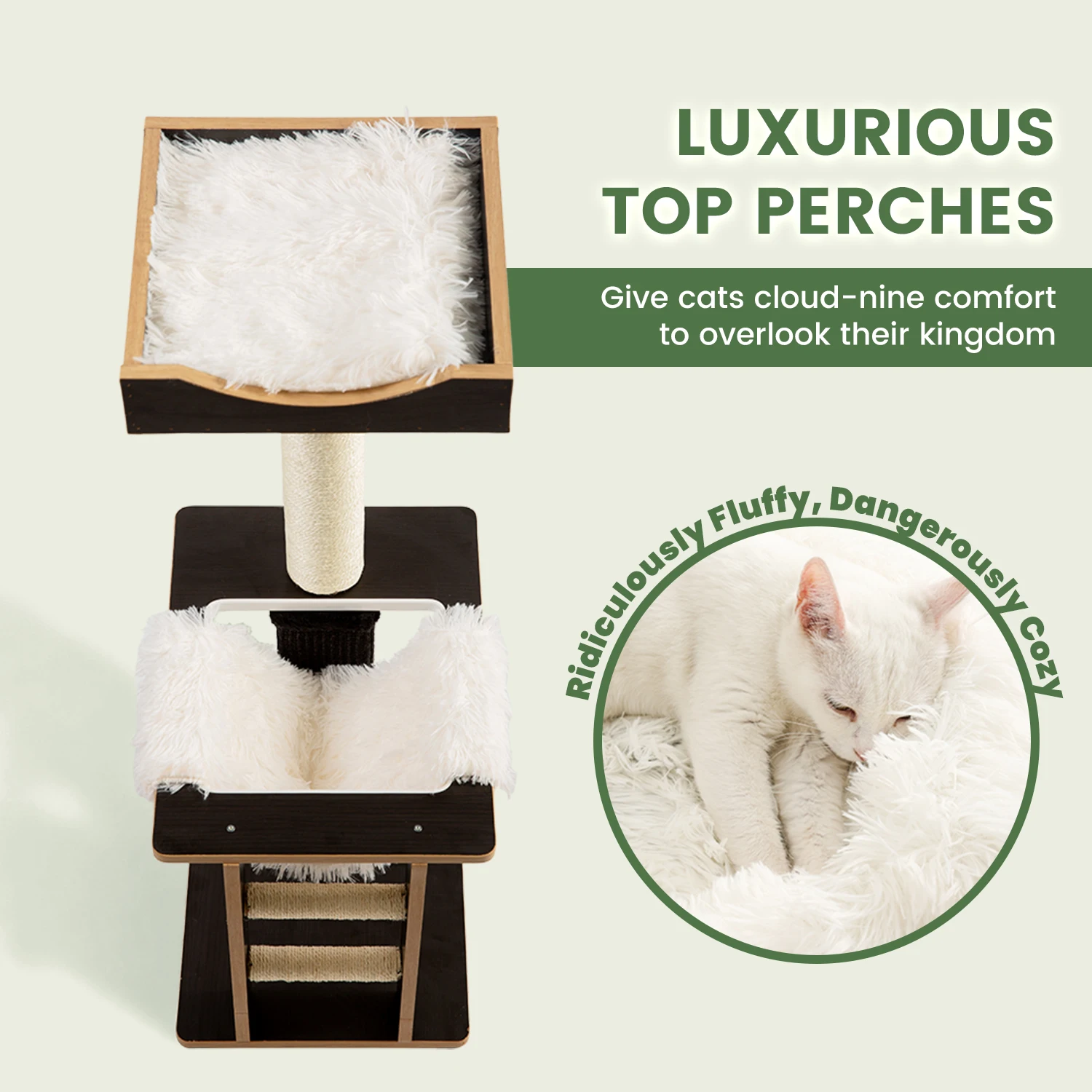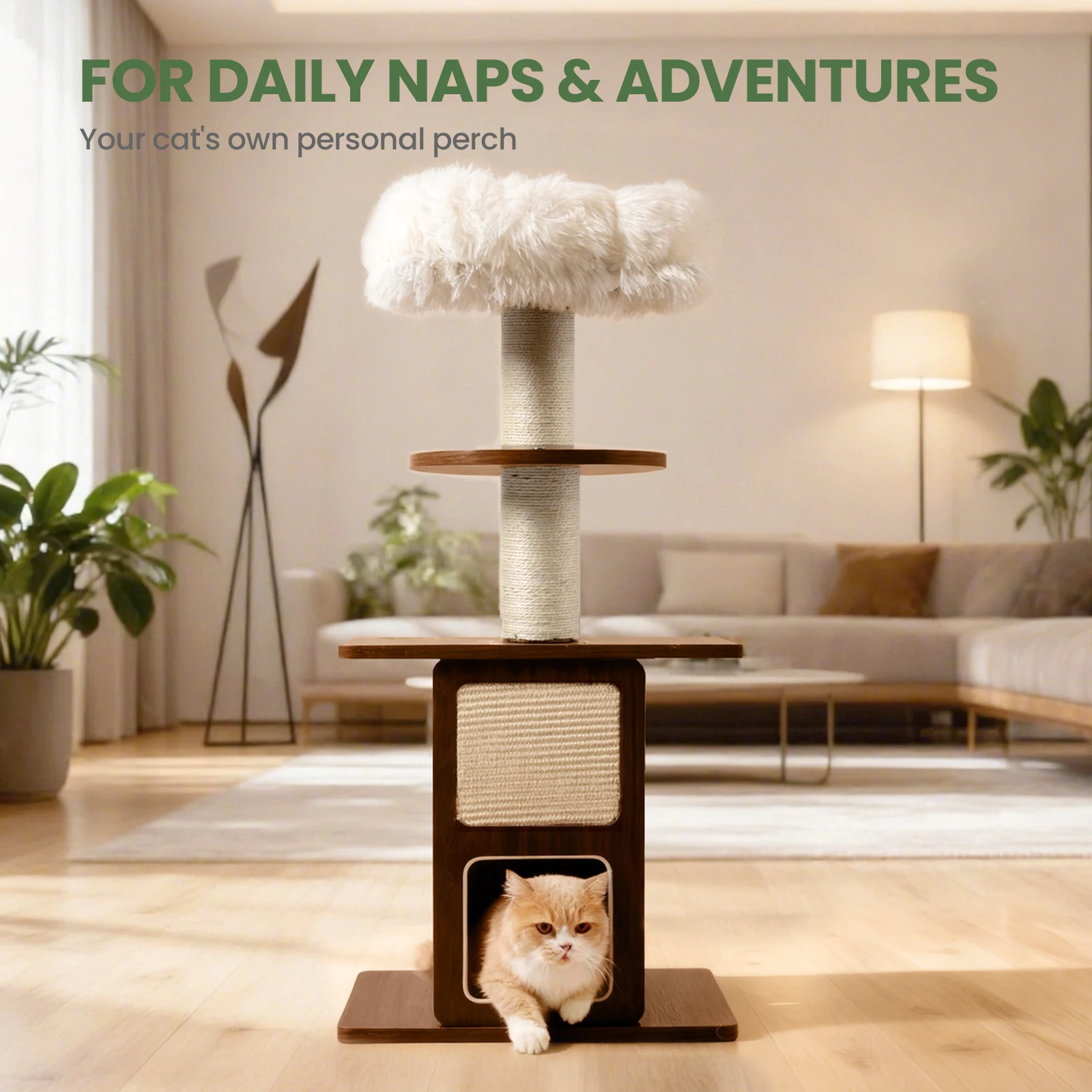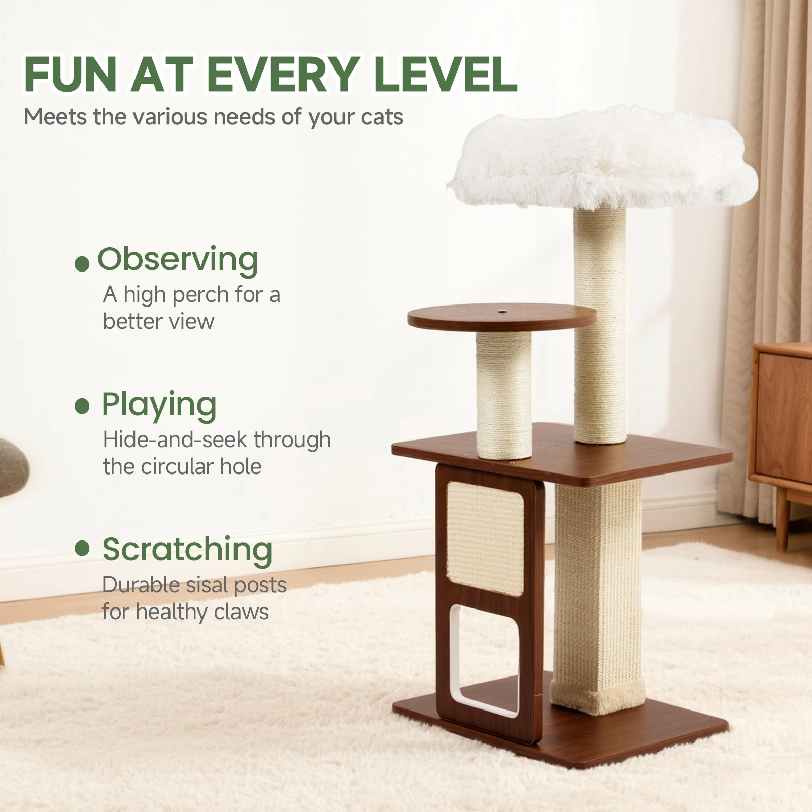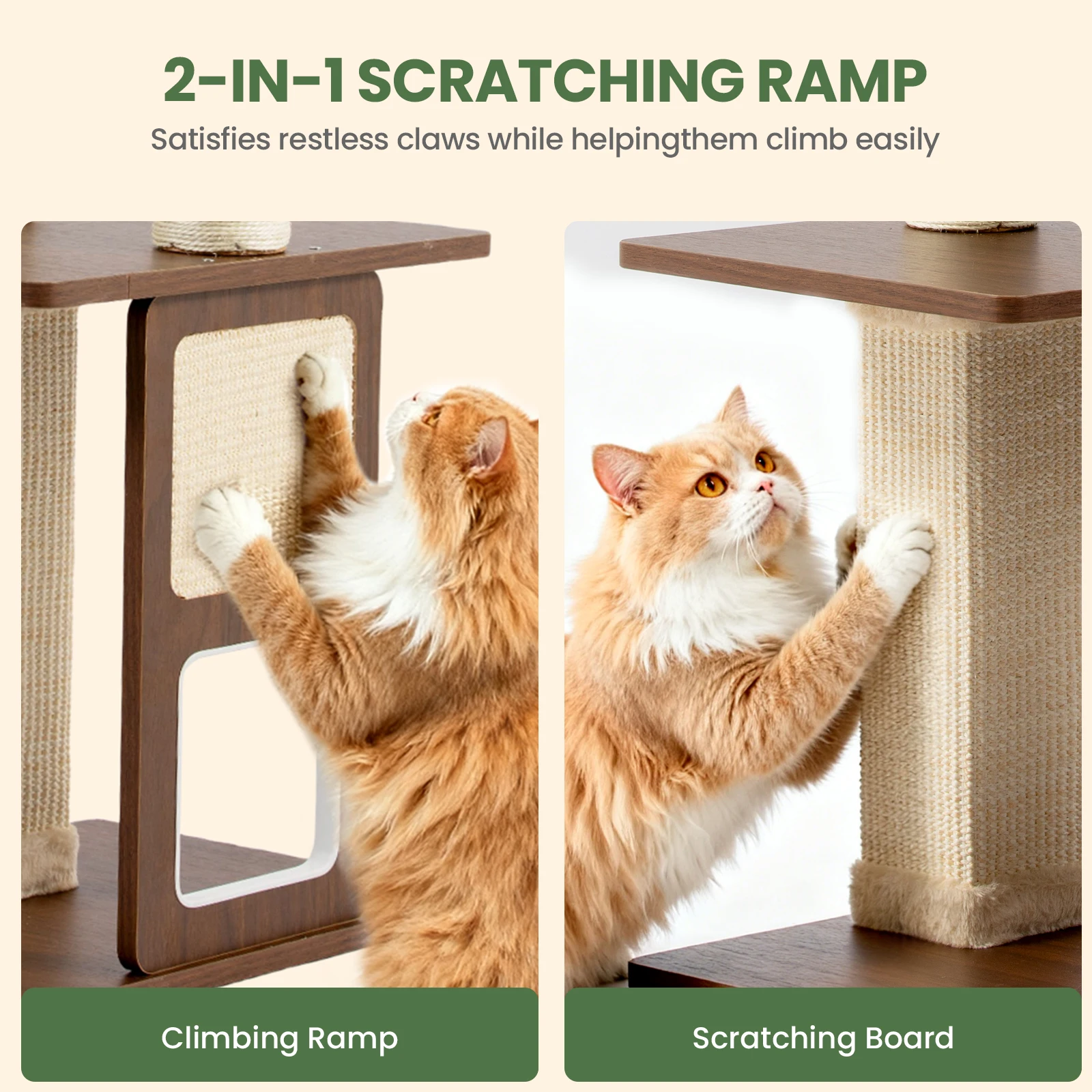 Árbol para gatos mediano de 35 pulgadas, marco de escalada para gatos modelo de escalera, torre para gatos de varios niveles con poste rascador para gatos, perca acogedora para gatos