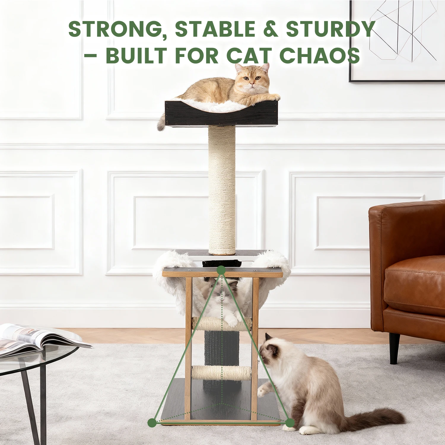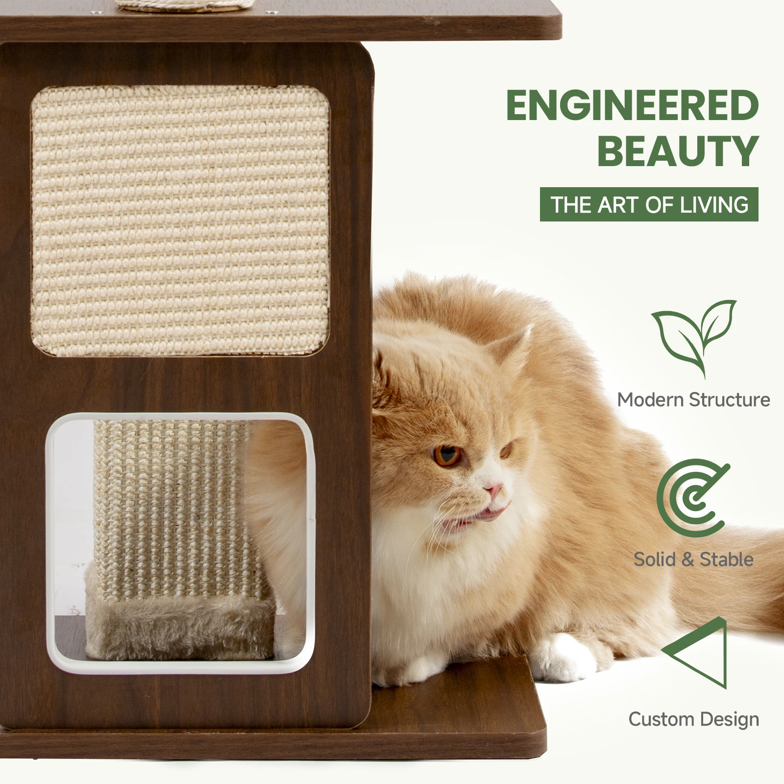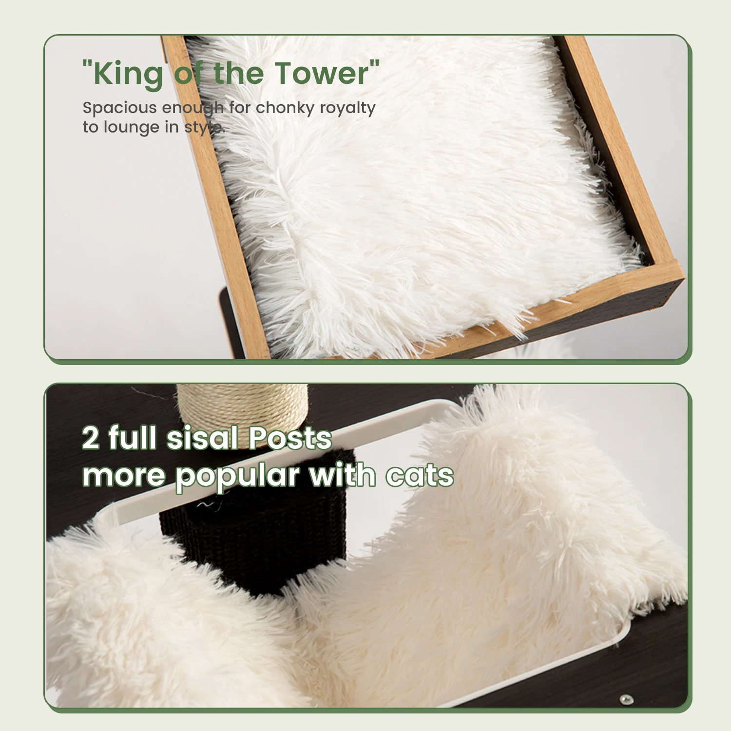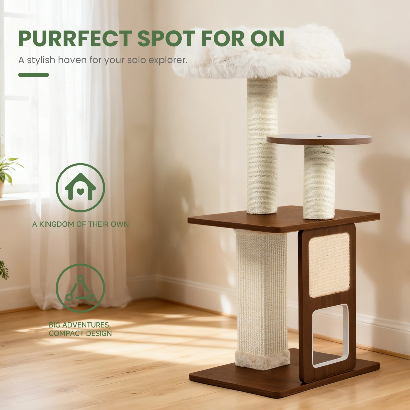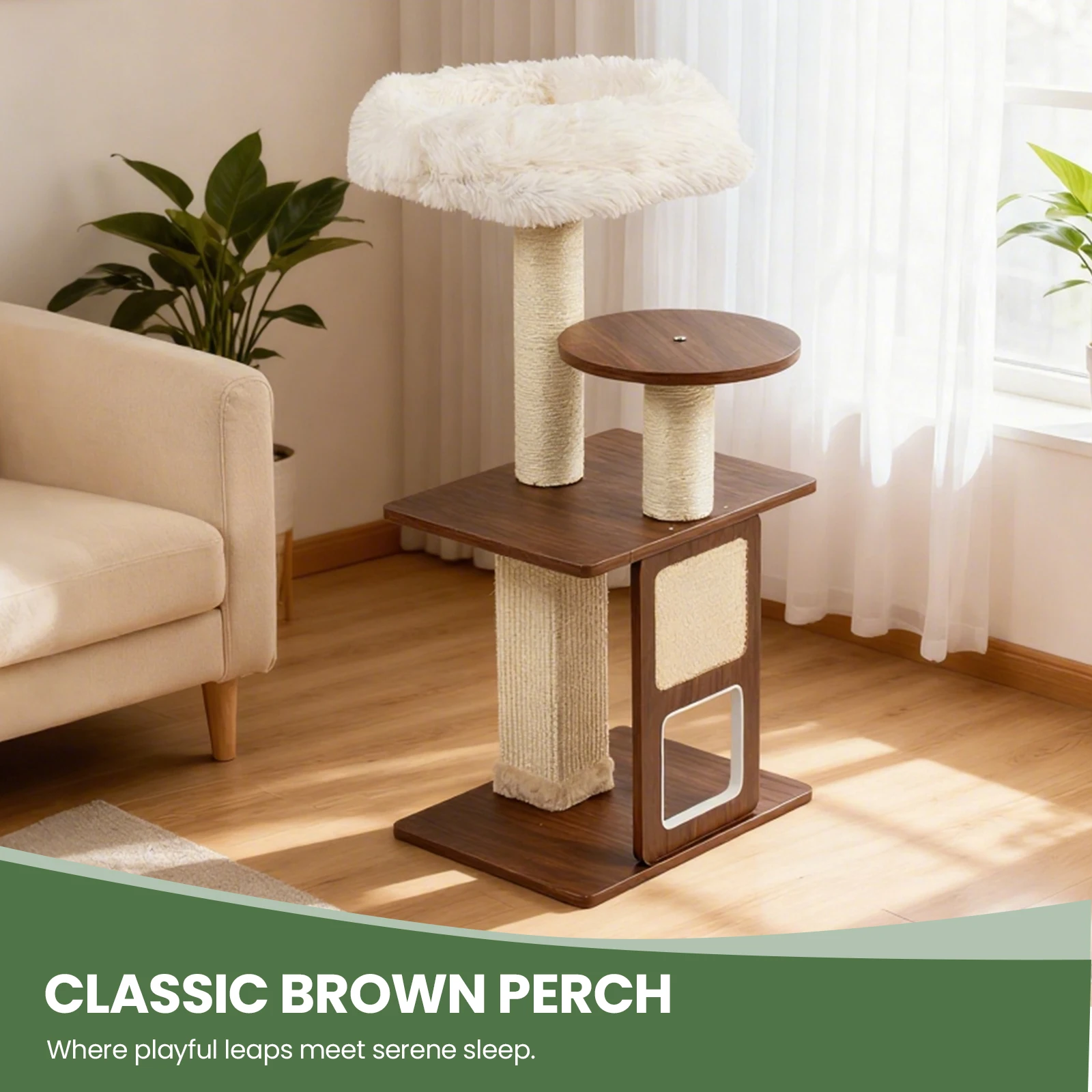 Árbol para gatos mediano de 35 pulgadas, marco de escalada para gatos modelo de escalera, torre para gatos de varios niveles con poste rascador para gatos, perca acogedora para gatos
