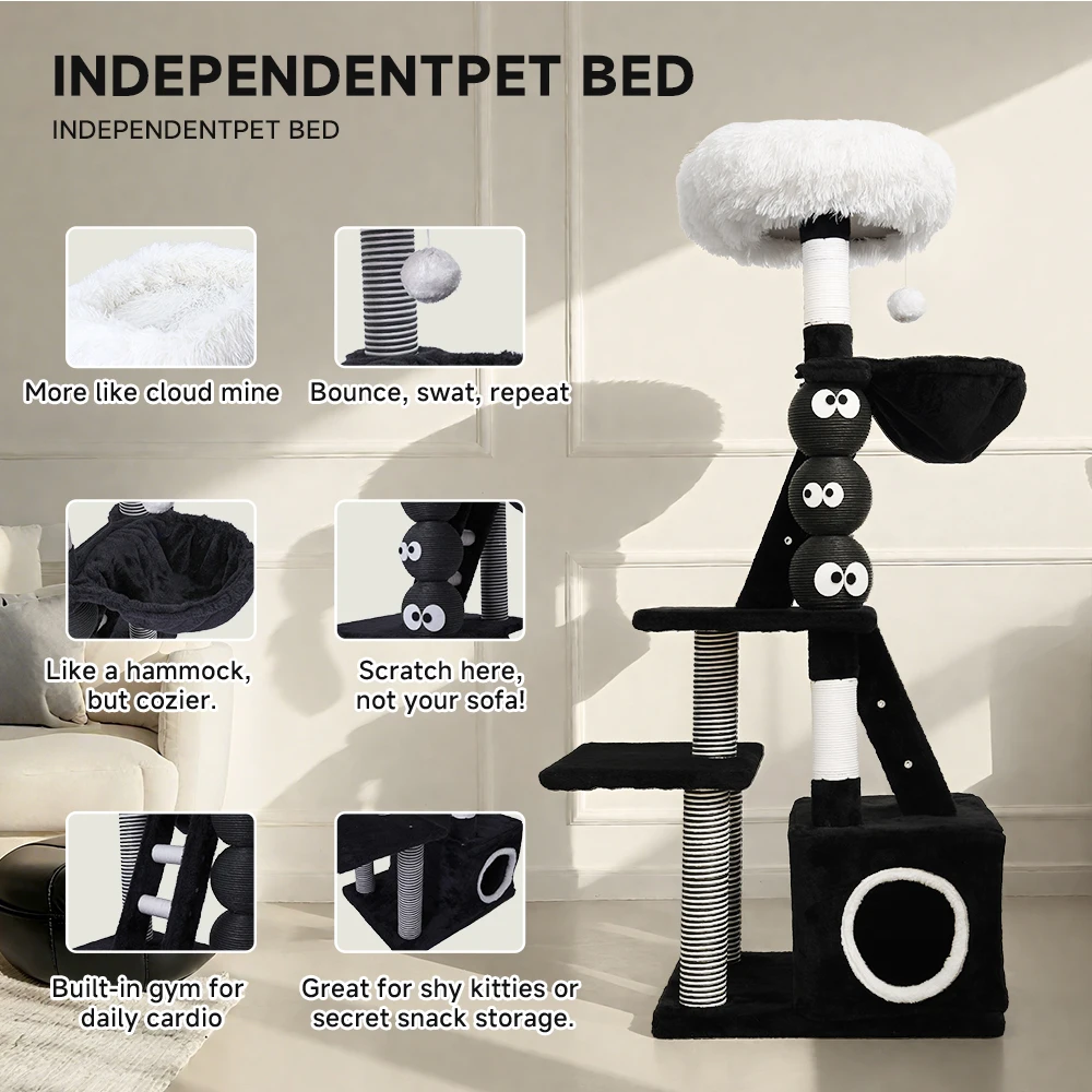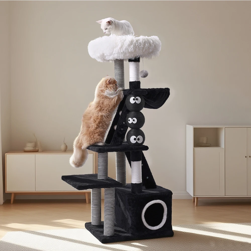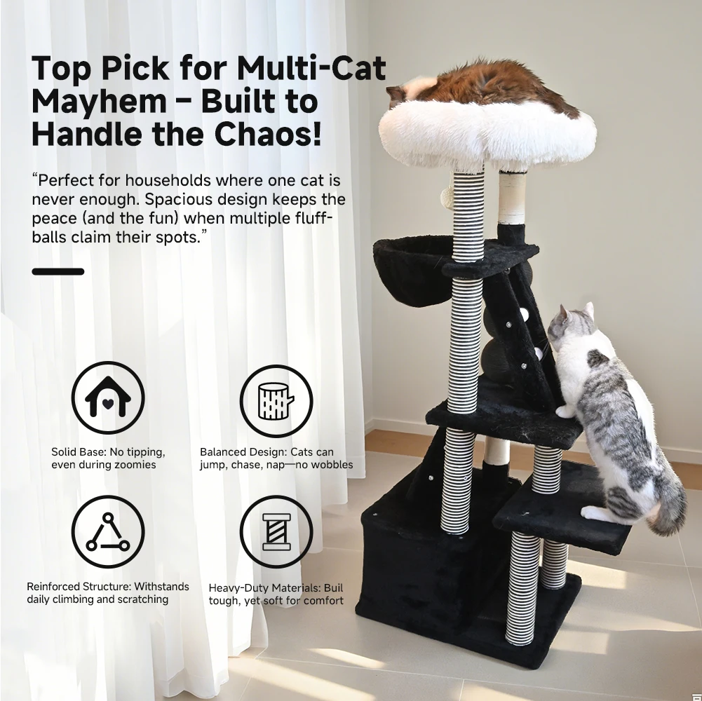 Árbol para gatos mediano de 49,2 pulgadas, modelo de escalera verde, marco de escalada para gatos, torre para gatos de varios niveles con poste rascador para gatos, perca acogedora