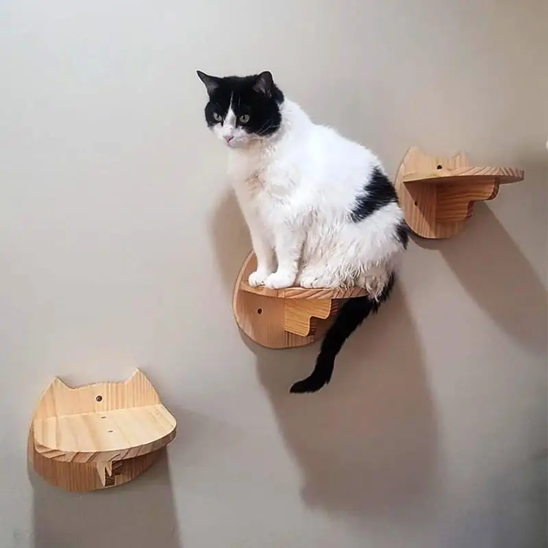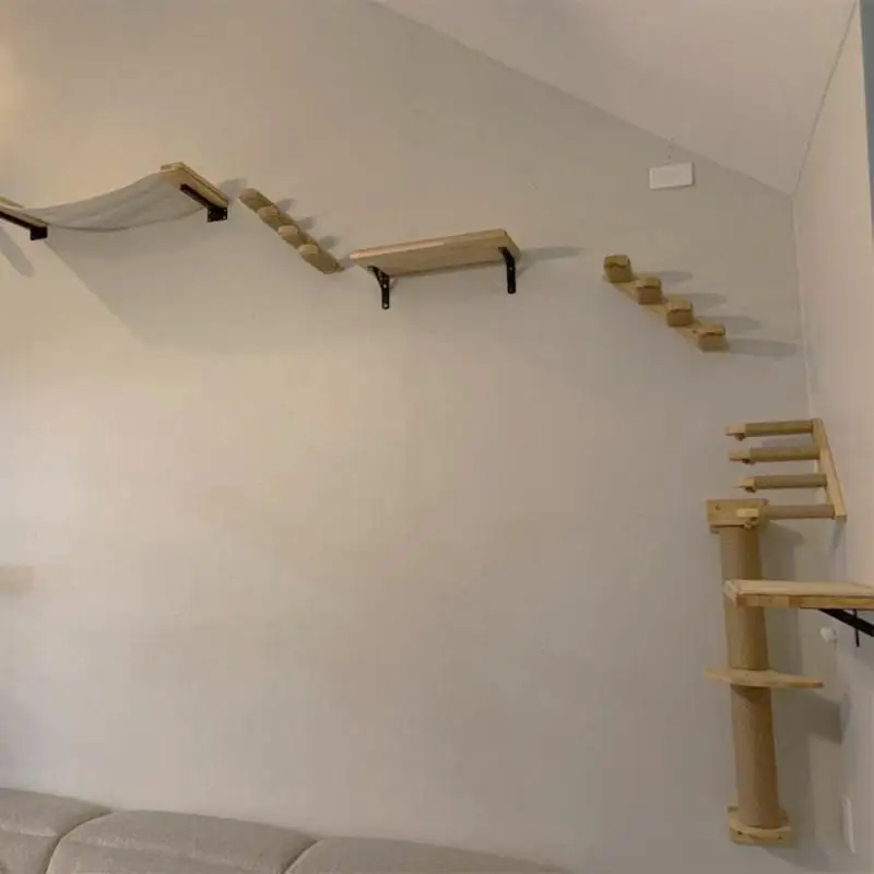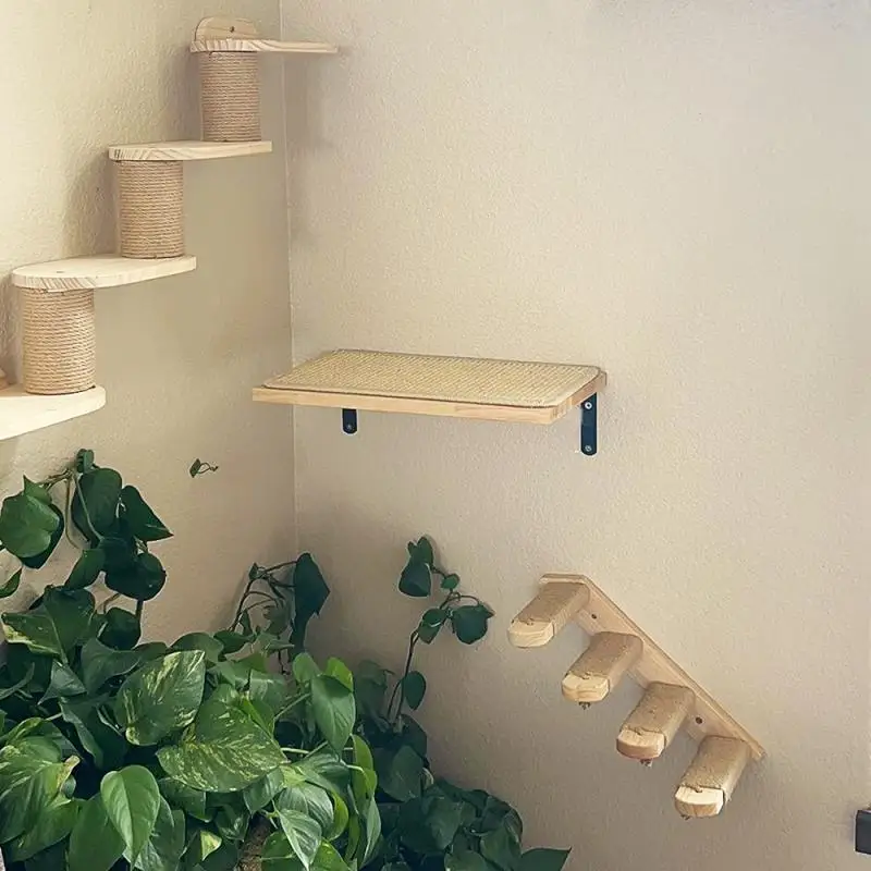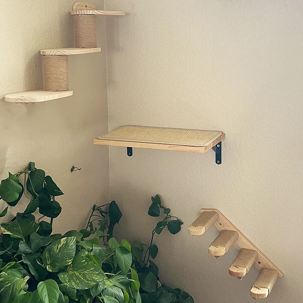 Árbol para gatos montado en la pared, plataforma y escalera, 4 escalones, poste para rascar, hamaca de pared, muebles de madera para mascotas, 1 pieza