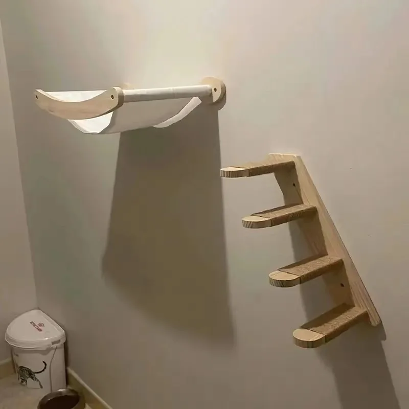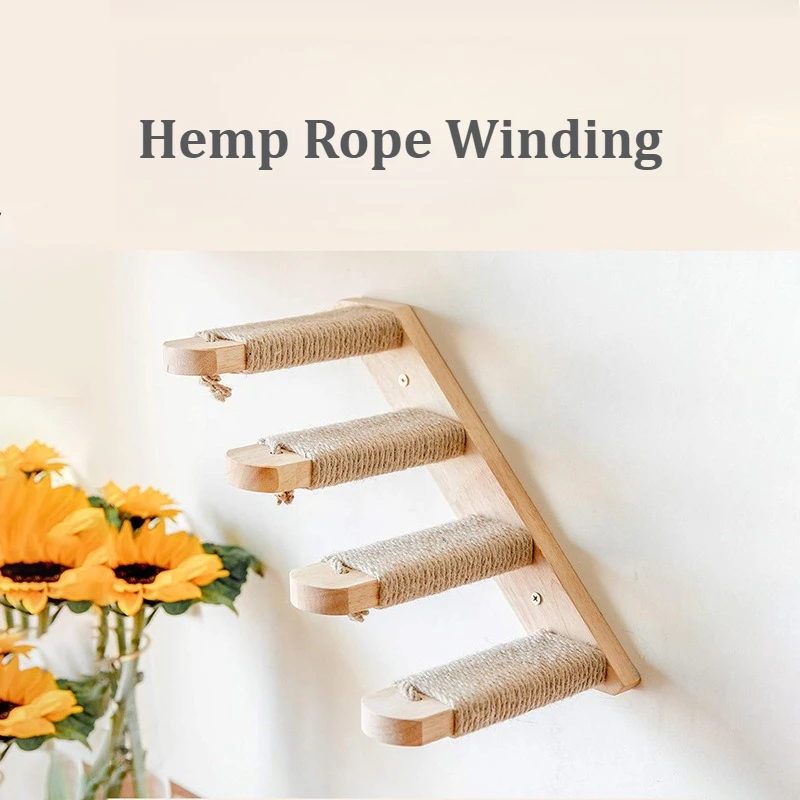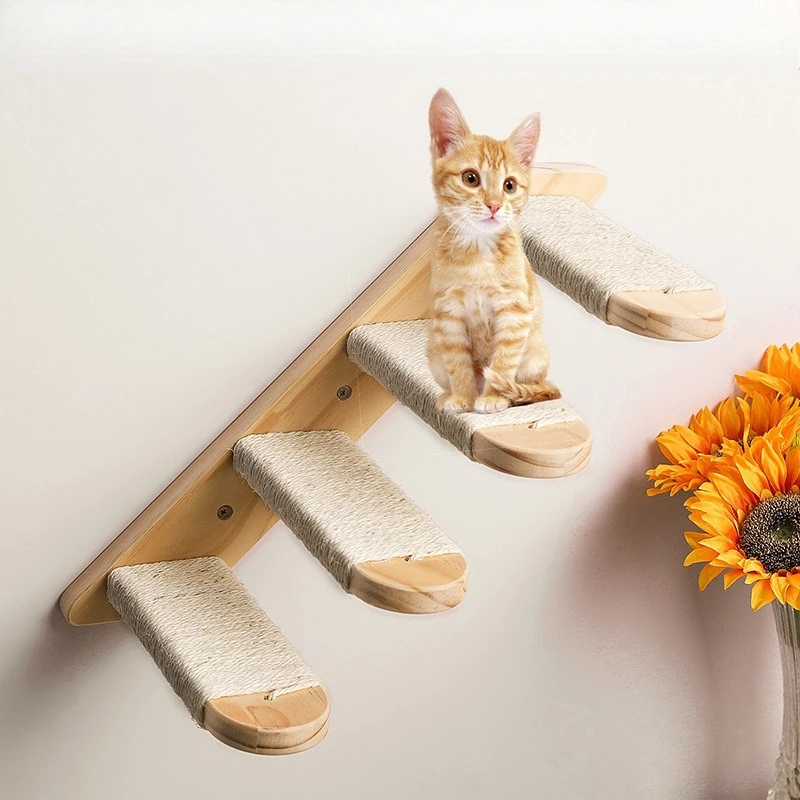 Árbol para gatos montado en la pared, escalera multicapa de madera maciza para gatos, pared de escalada, escaleras para gatos, cuerda de cáñamo antideslizante, almohadillas para rascar Catnap