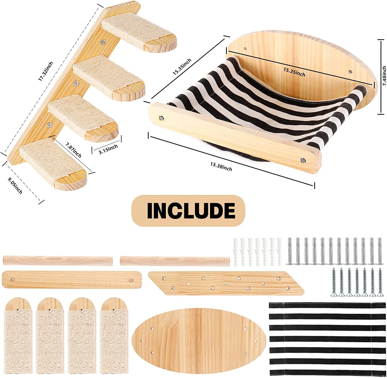 Wall-mounted Cat Tree with Four-Tier Steps Cat Tower Platform Jumping Pet Furniture Cat Hammock