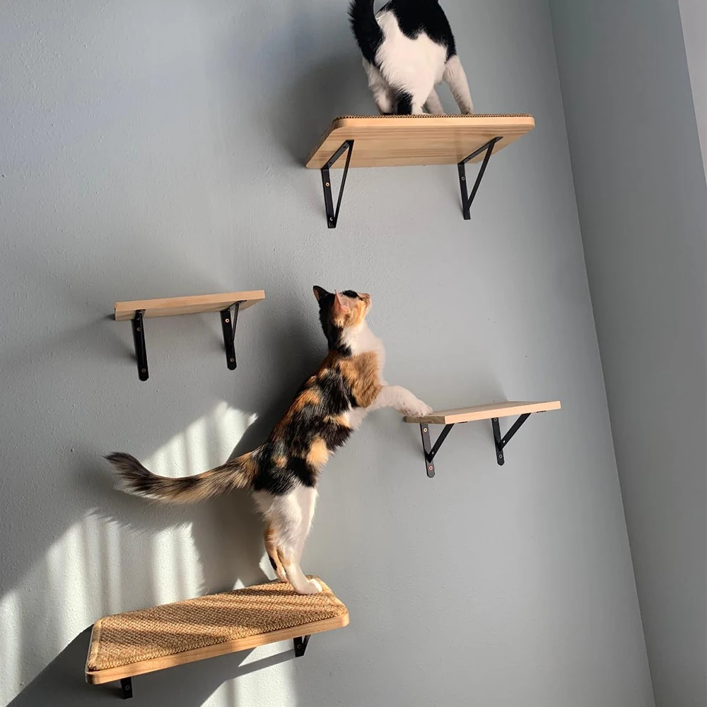 The staggered staircase design creates a fun climbing path for cats. Cats can shuttle up and down the stairs, jump, and explore to their heart's content, satisfying their natural desire to climb high, look far, and explore the unknown. They exercise their body coordination and muscle strength while climbing.
