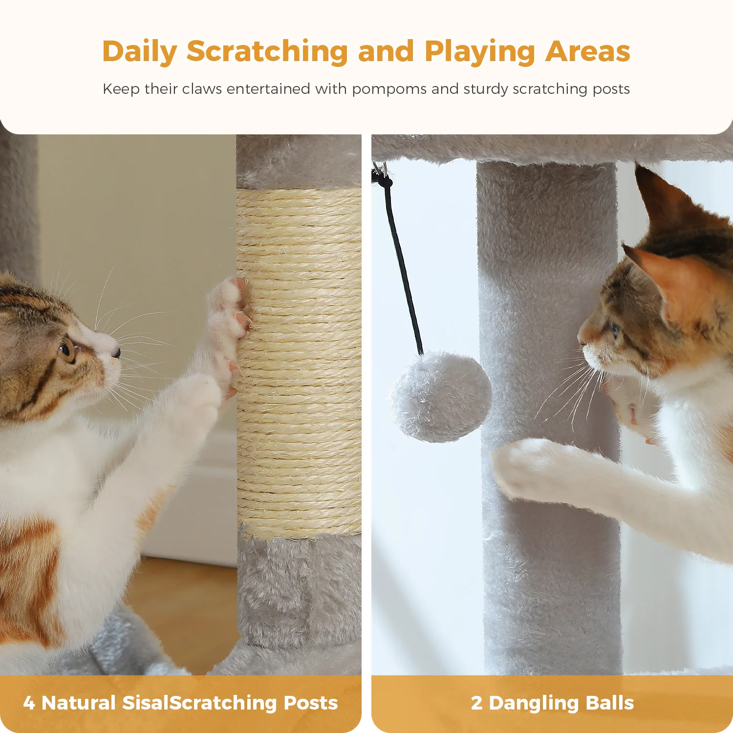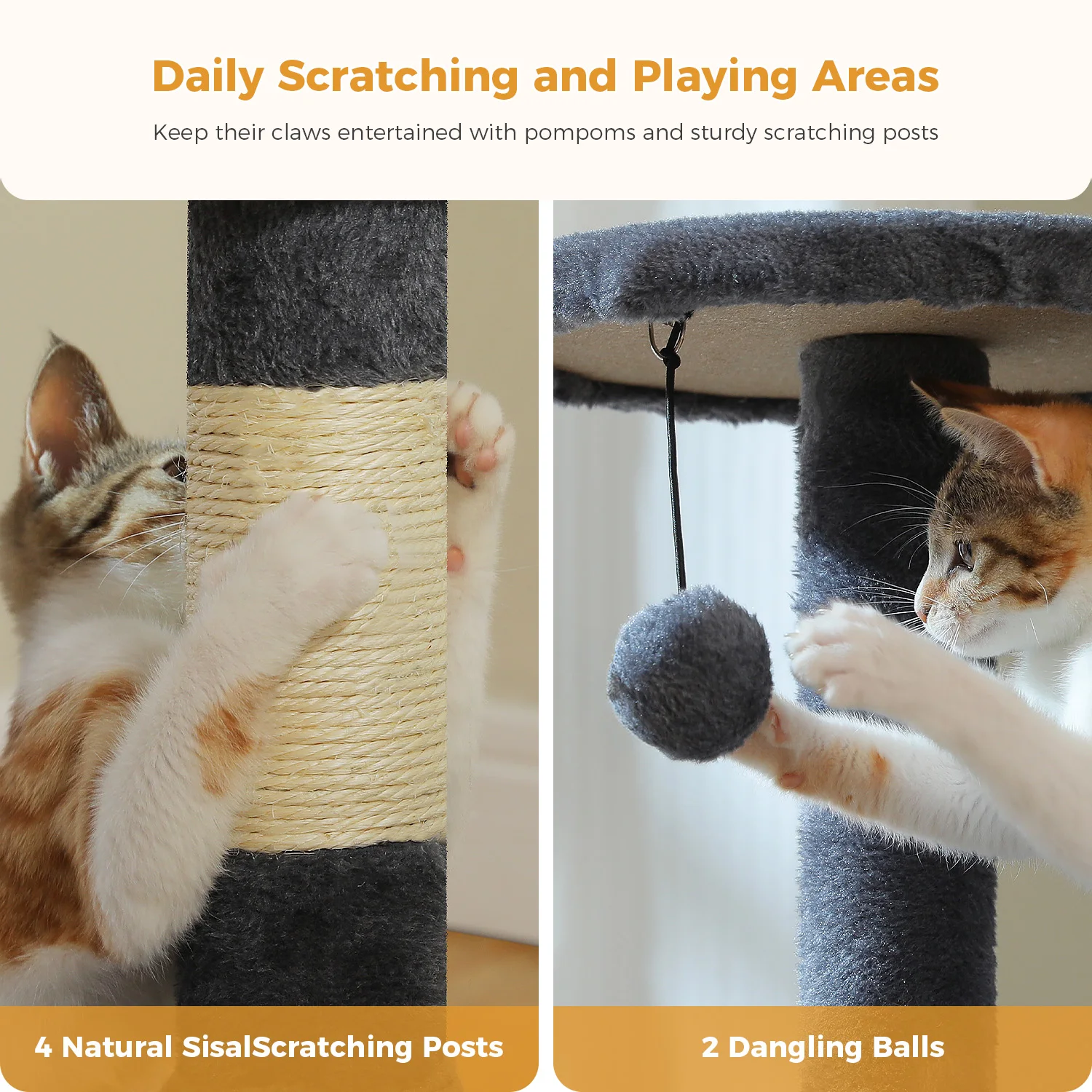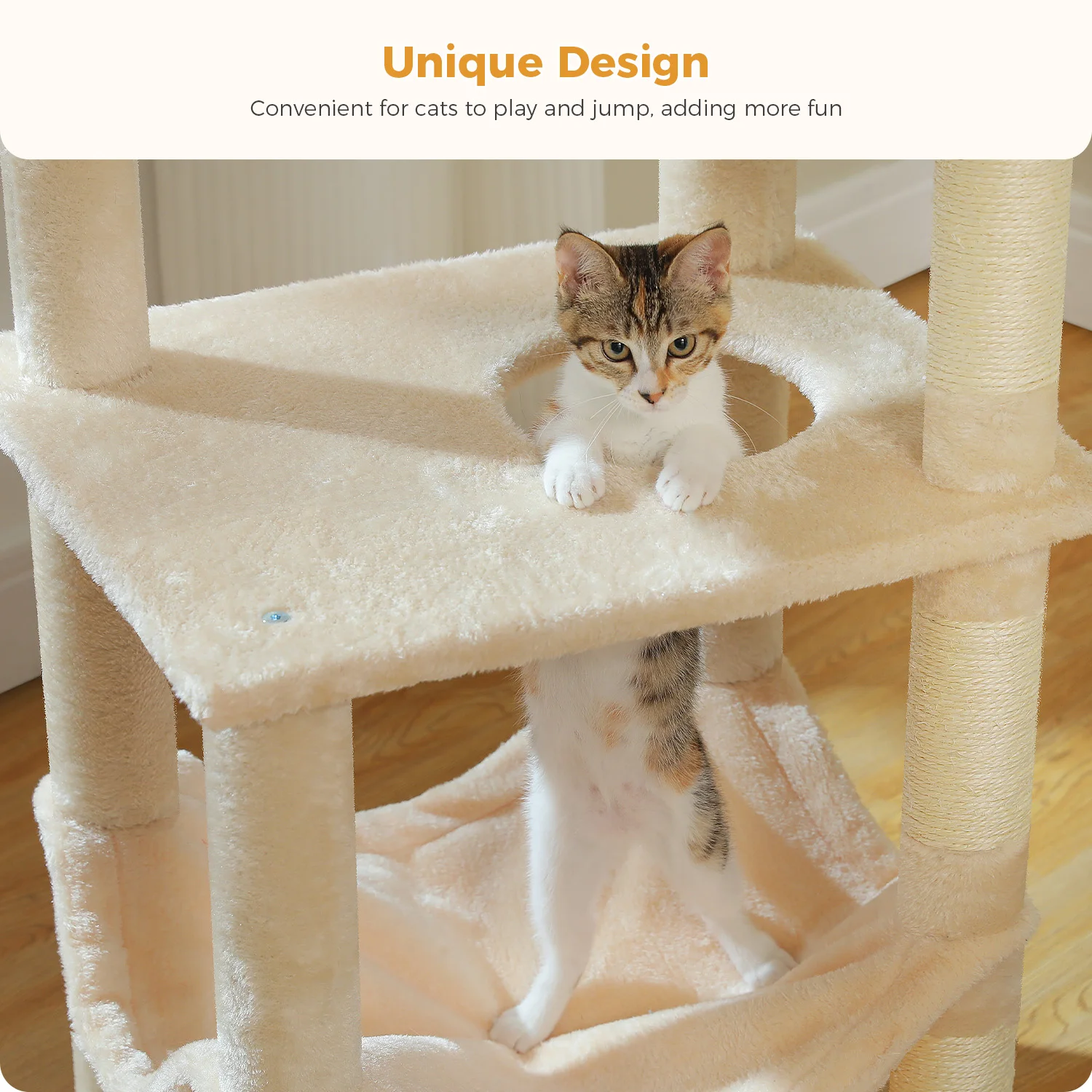 2.El cuerpo de la columna está envuelto con una cuerda de sisal natural, resistente al desgaste, resistente a los arañazos y no es fácil de romper, protege eficazmente las patas del gato.