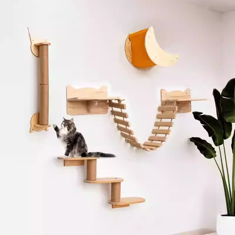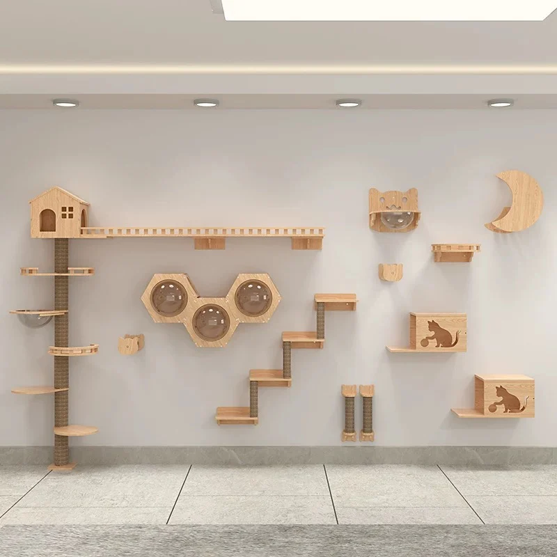El diseño montado en la pared ahorra espacio en su habitación y es muy adecuado para escalar, dormir y hacer ejercicio.Apto para gatos de todas las edades.