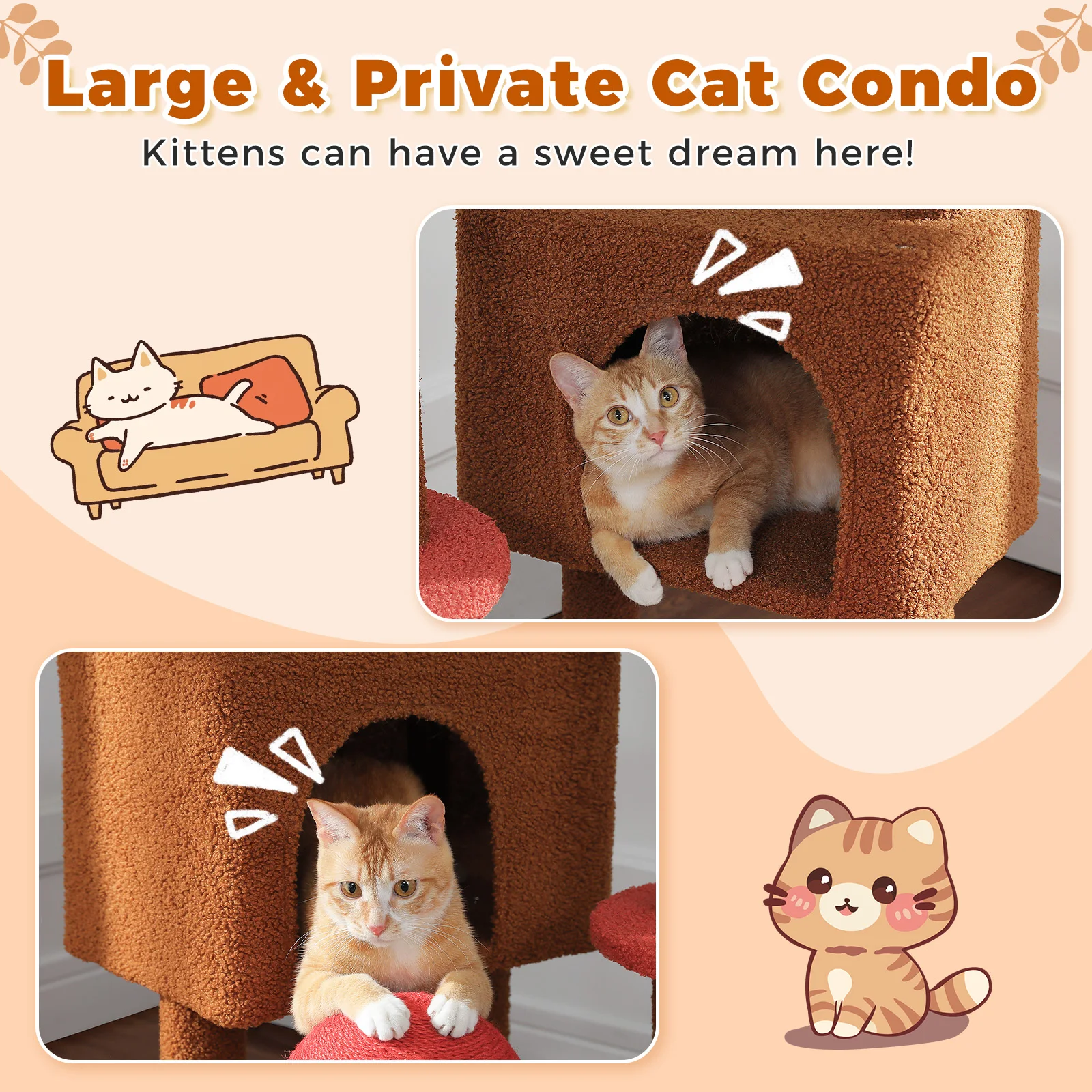 Hogar cómodo para rascarse y entretenerse:Este árbol alto para gatos presenta muchas actividades para mantener a sus gatitos entretenidos y entretenidos.Pueden subirse al techo, disfrutar de la sensación de estar en la parte superior, ser un soñador o descansar cómodamente en la hamaca.Además, el rascador cubierto de sisal y la bola colgante les permitirán afilar sus garras y practicar sus habilidades de caza.