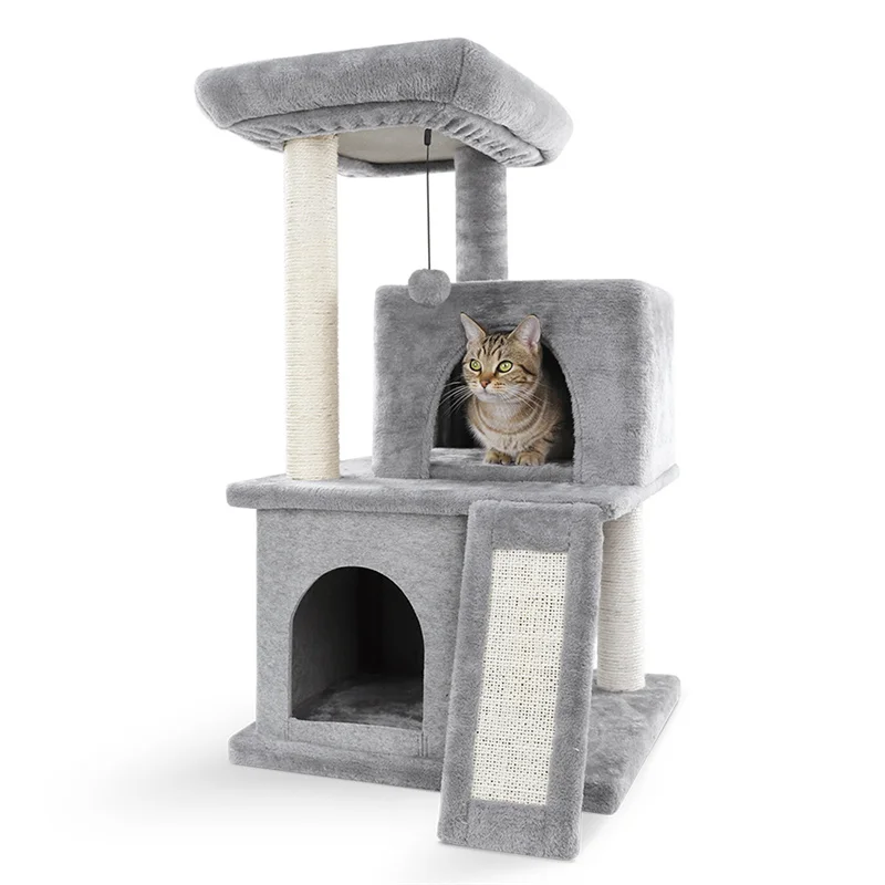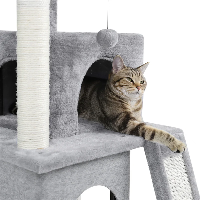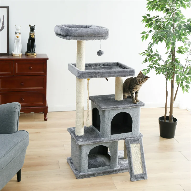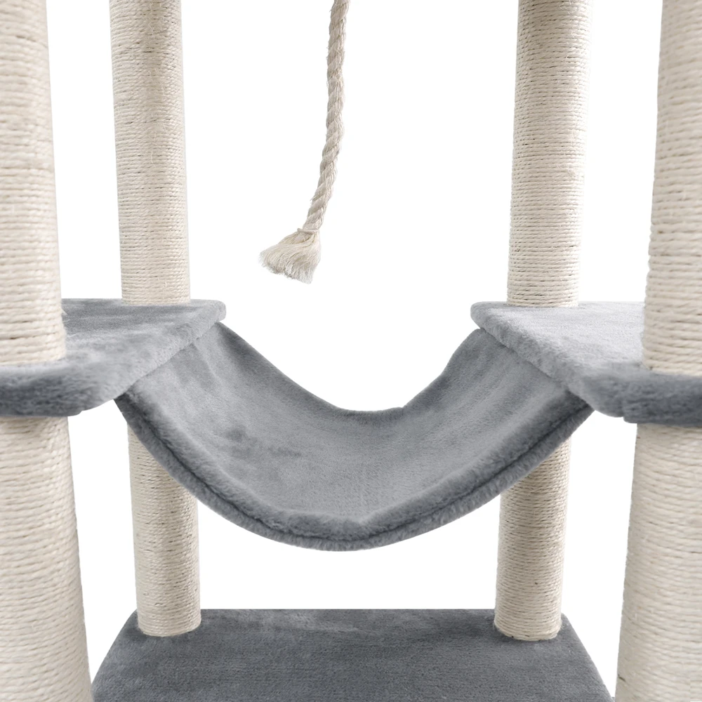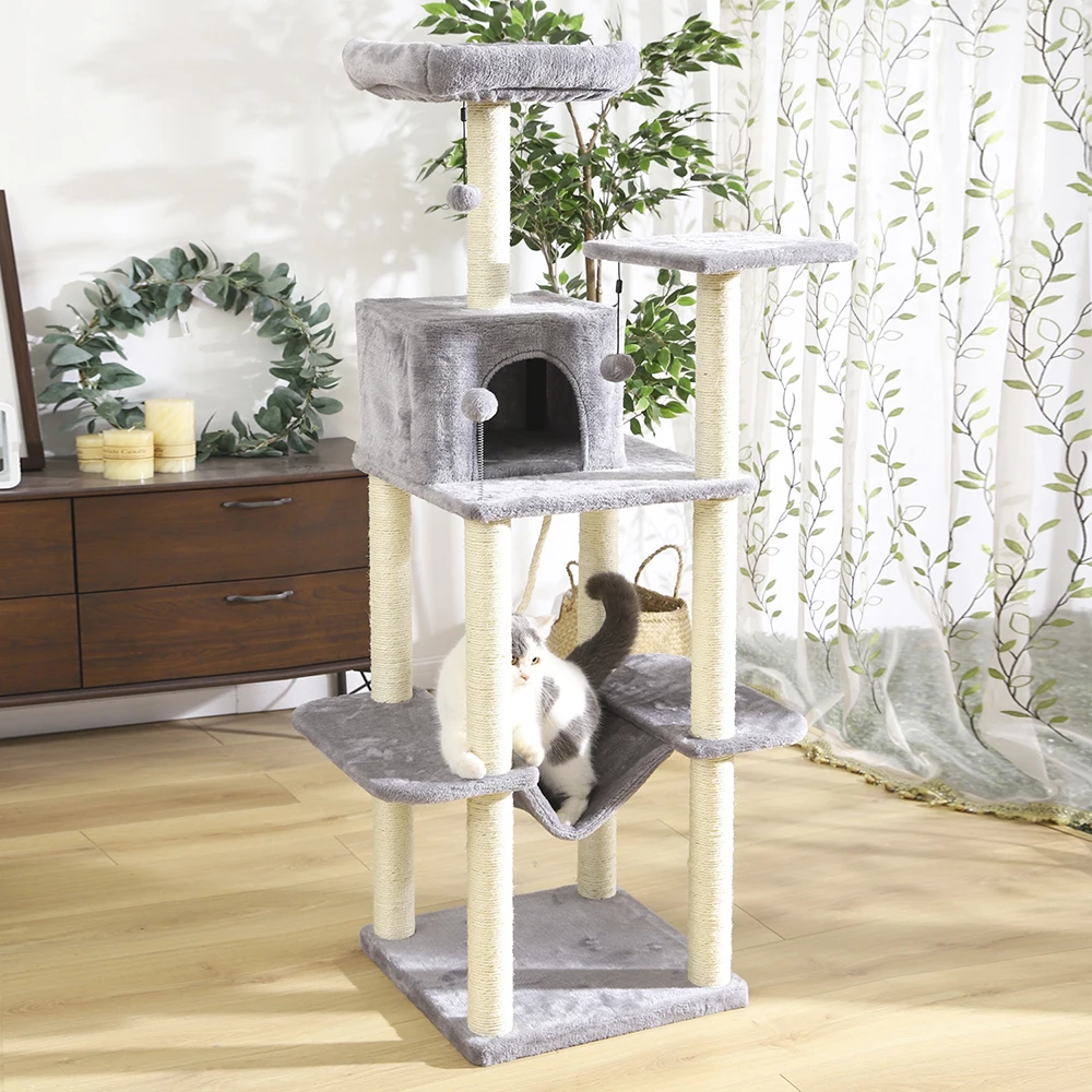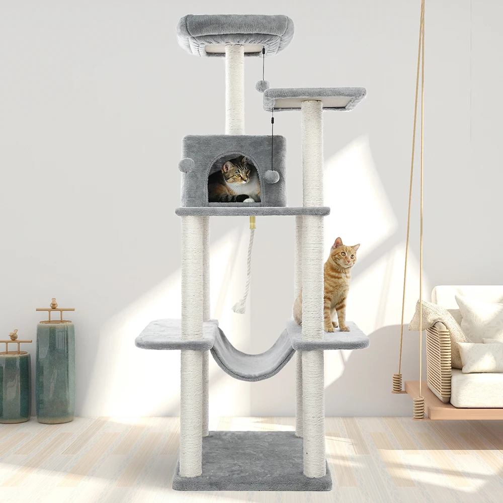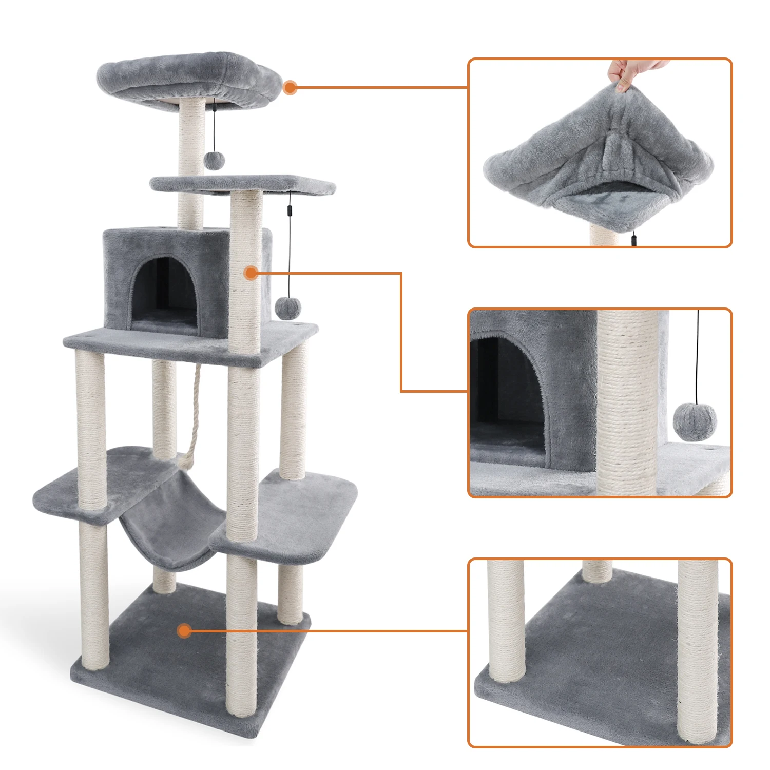 Árbol para gatos torres de lujo para gatos con doble consolas hamaca espaciosa para gatos totalmente envuelta para rascar poste de Sisal y bolas colgantes