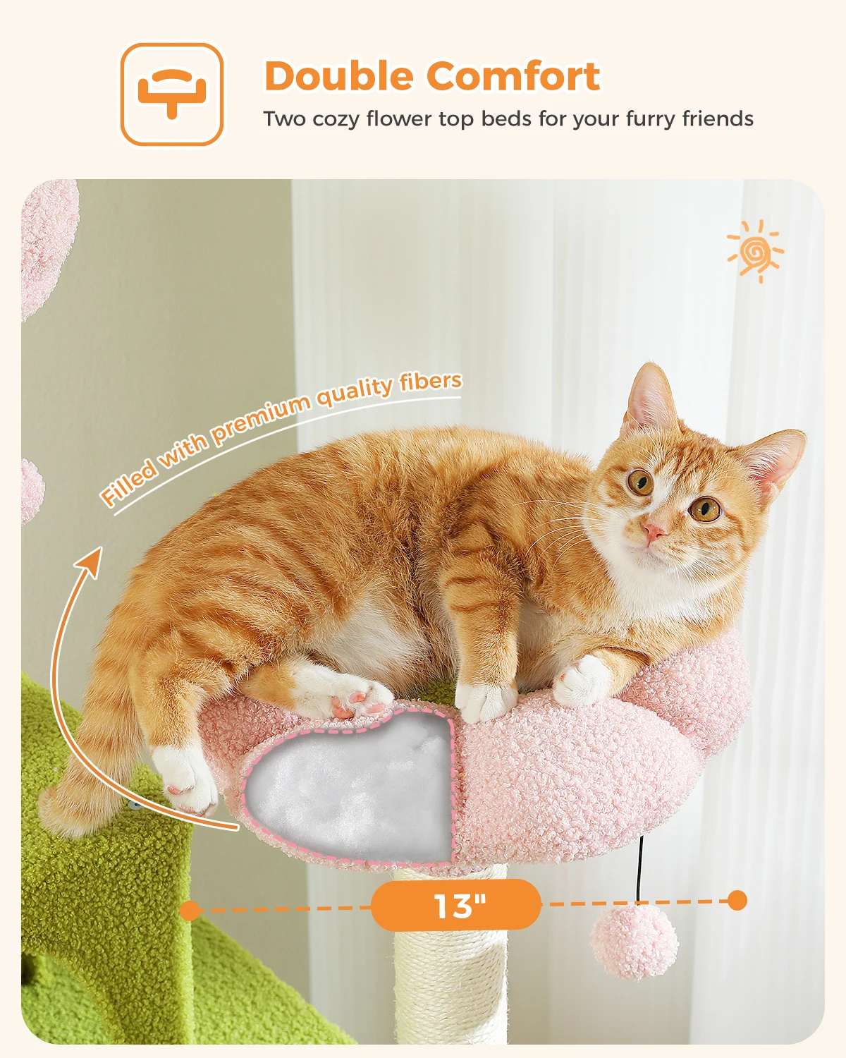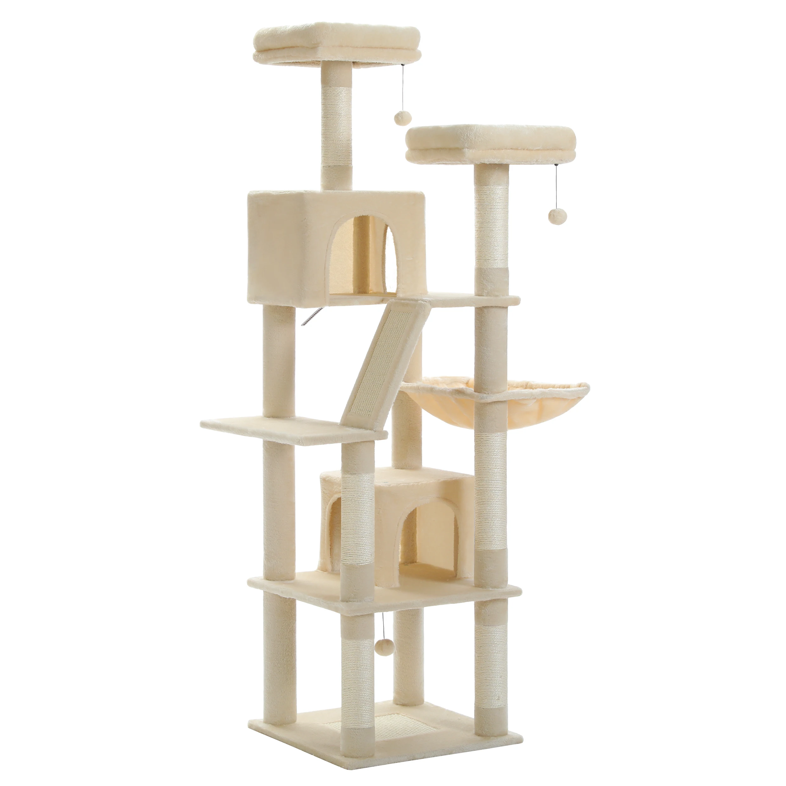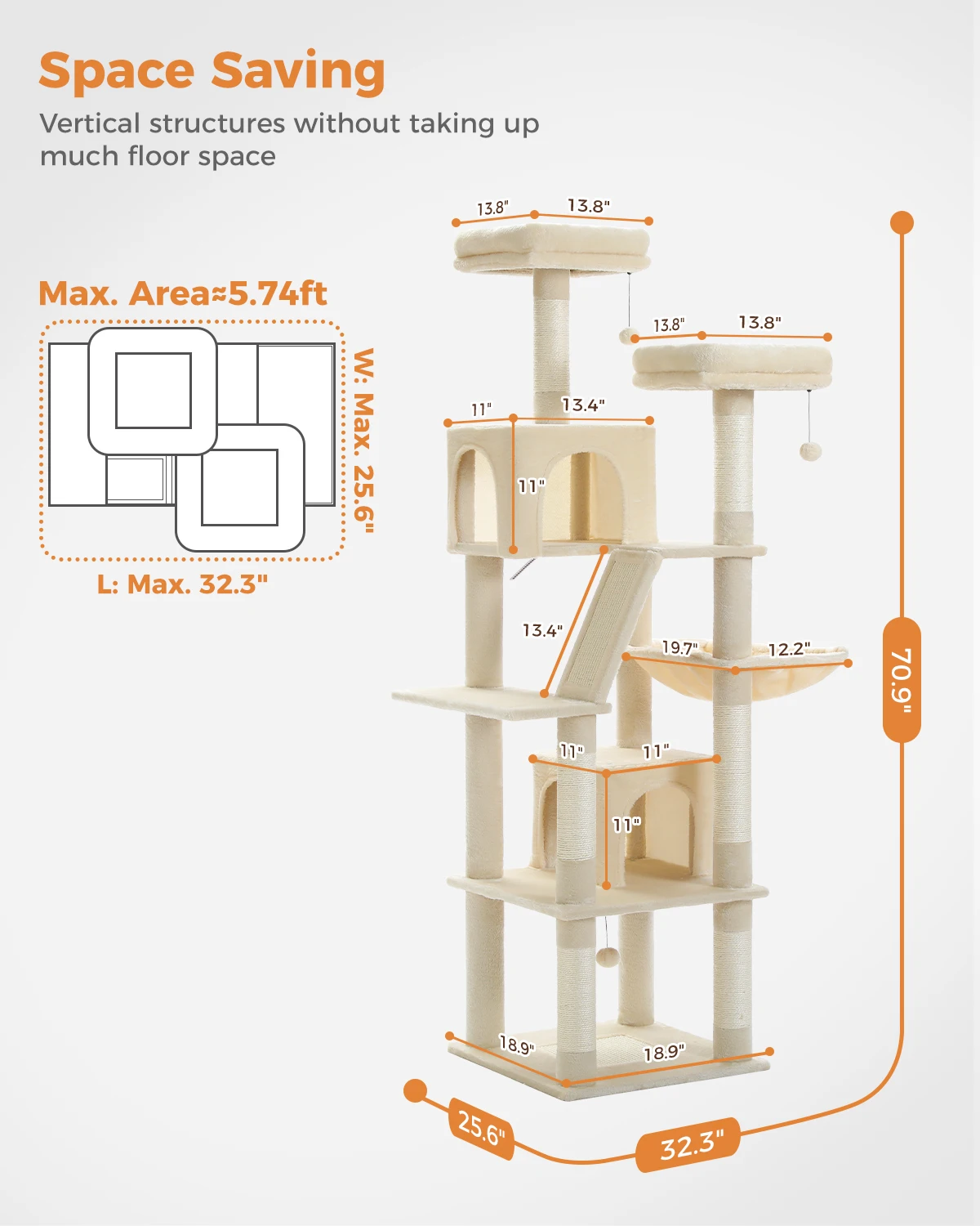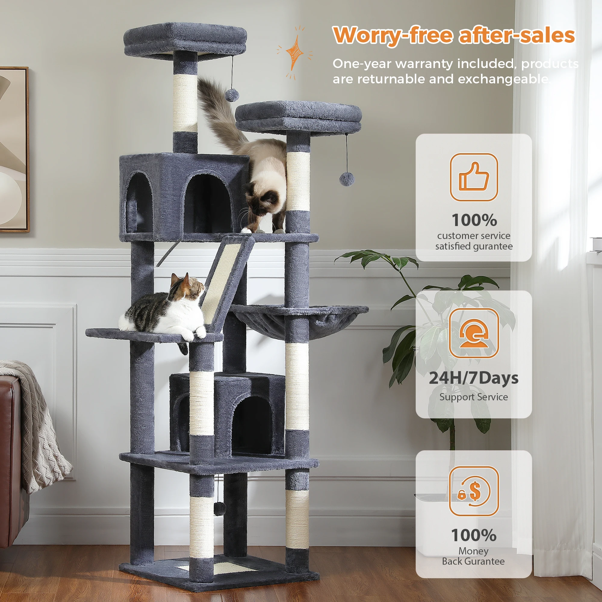 Rascarse en abundancia:Equipado con seis postes rascadores envueltos en sisal duradero y dos rascadores, nuestro árbol para gatos satisface las necesidades naturales de rascado de su gato.Ayuda a mantener sus garras saludables mientras las disuade el uso de sus muebles como almohadilla para rascar.