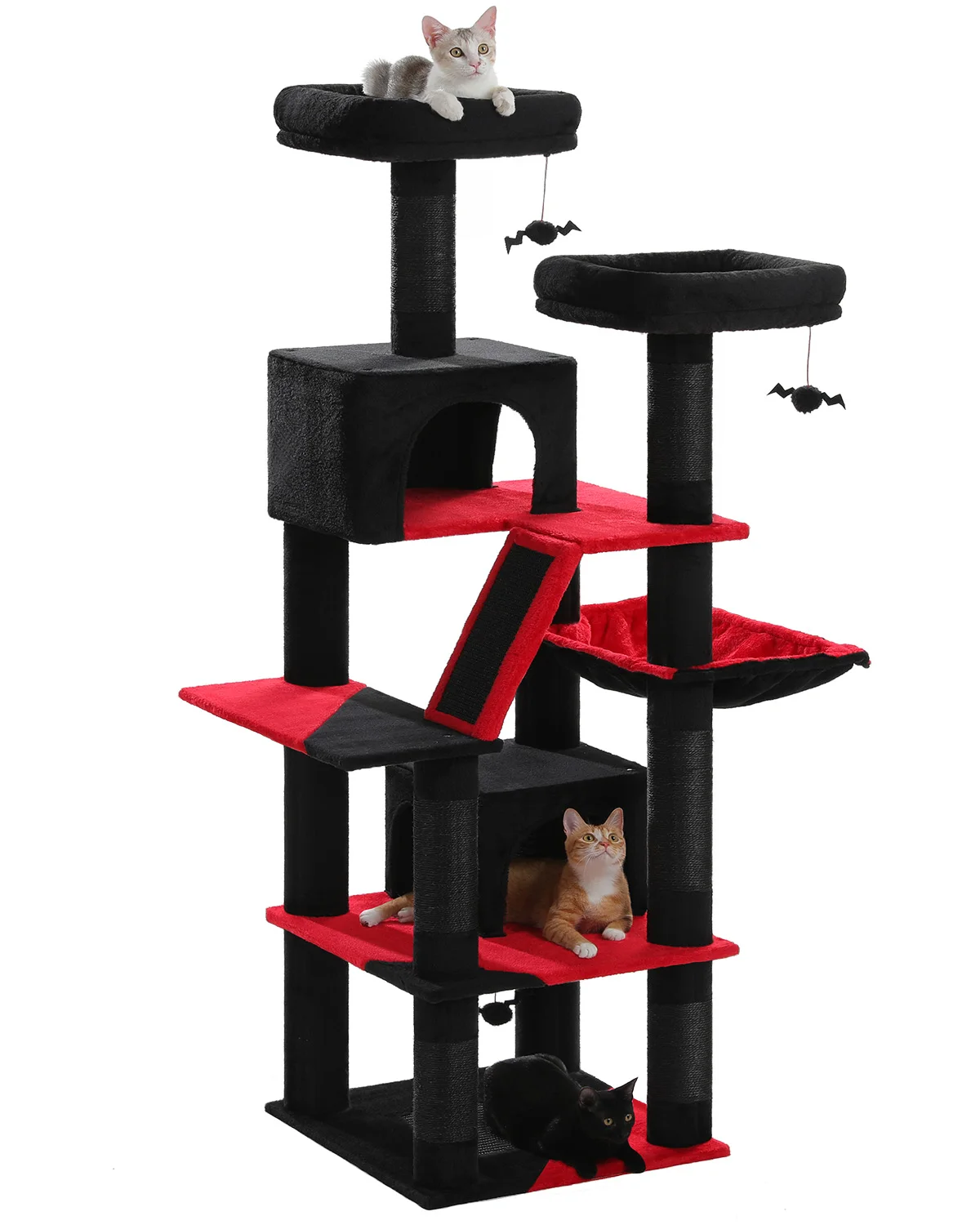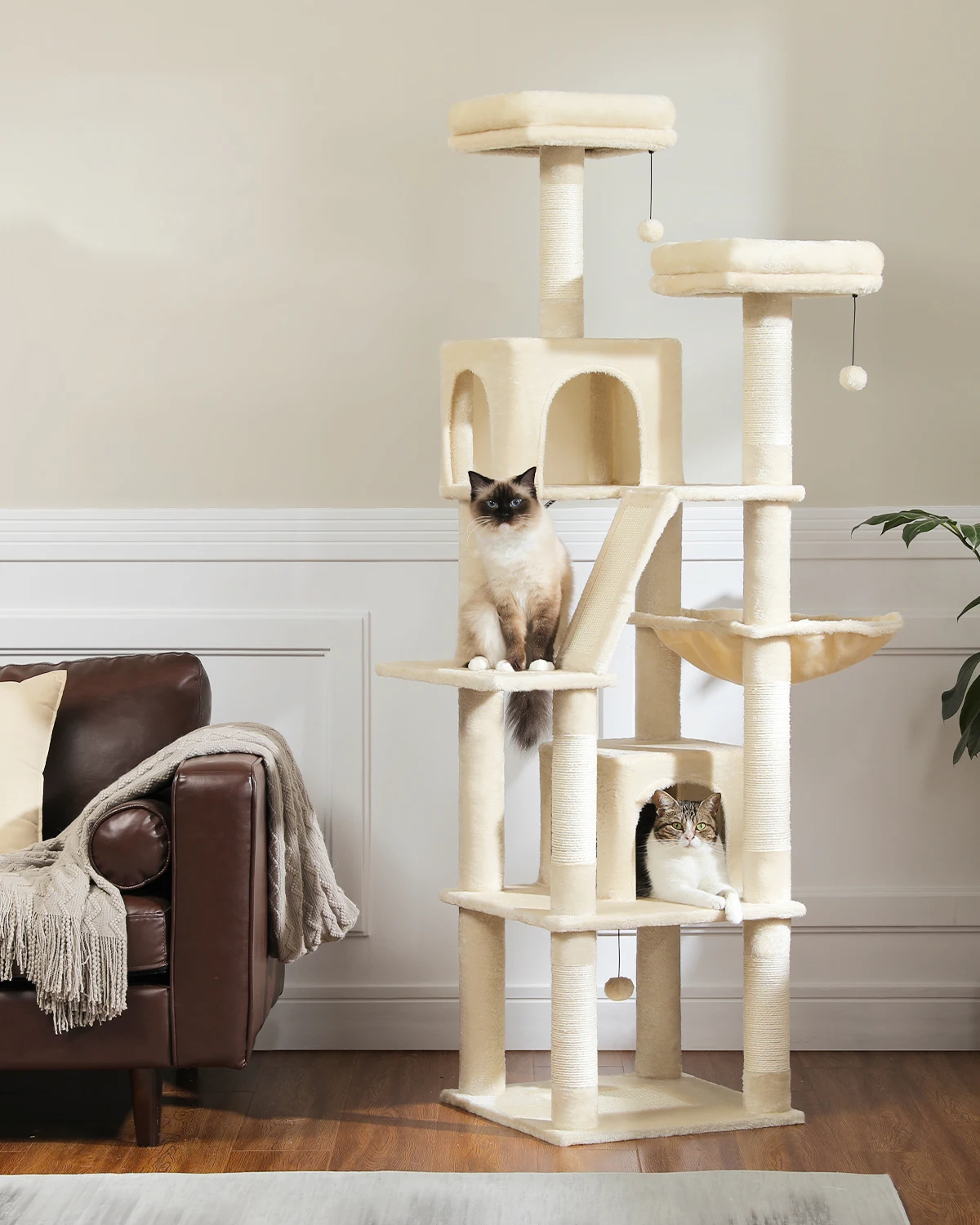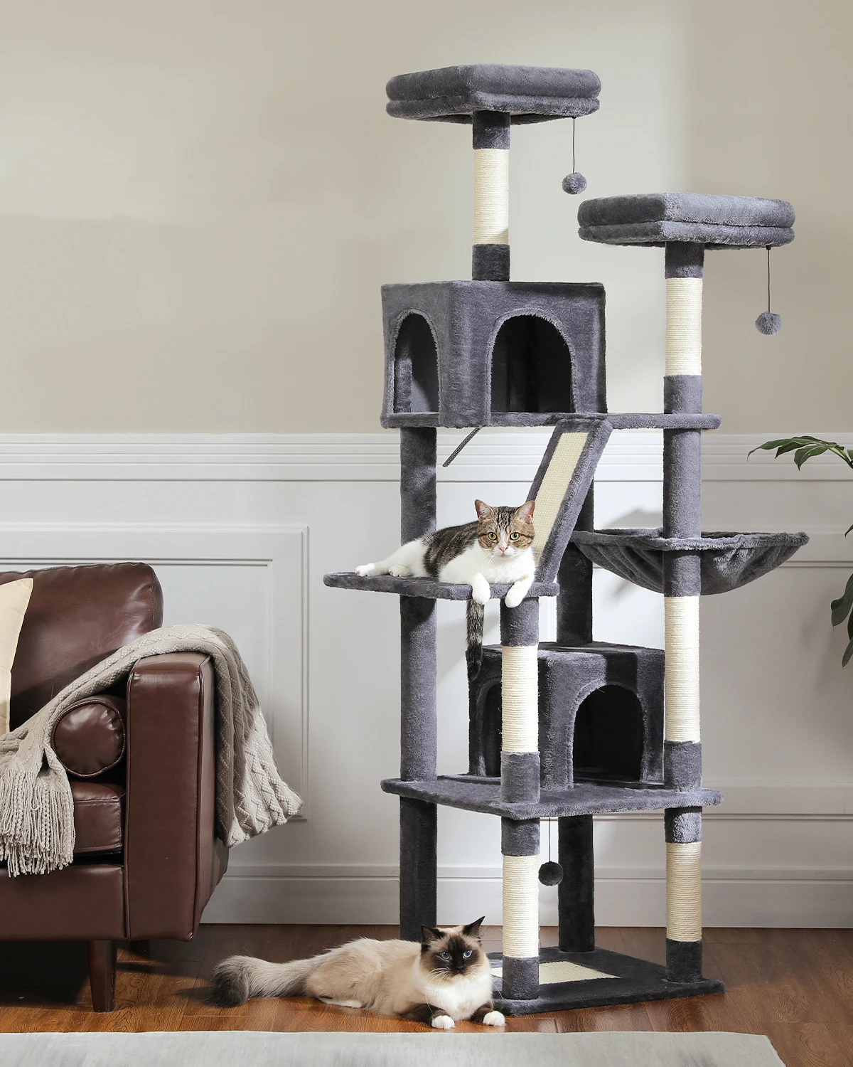 1.Torre para gatos de varios niveles, permite que 4-5 gatos descansen juntos al mismo tiempo.Adecuado para familias de varios gatos.
