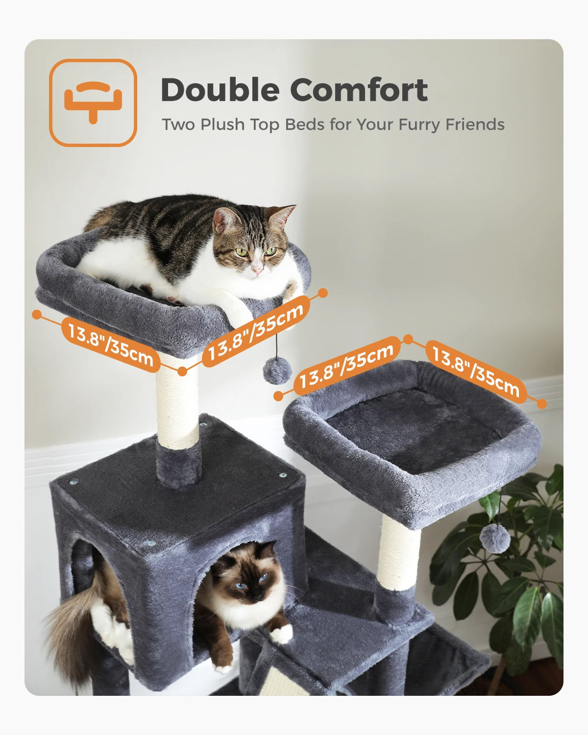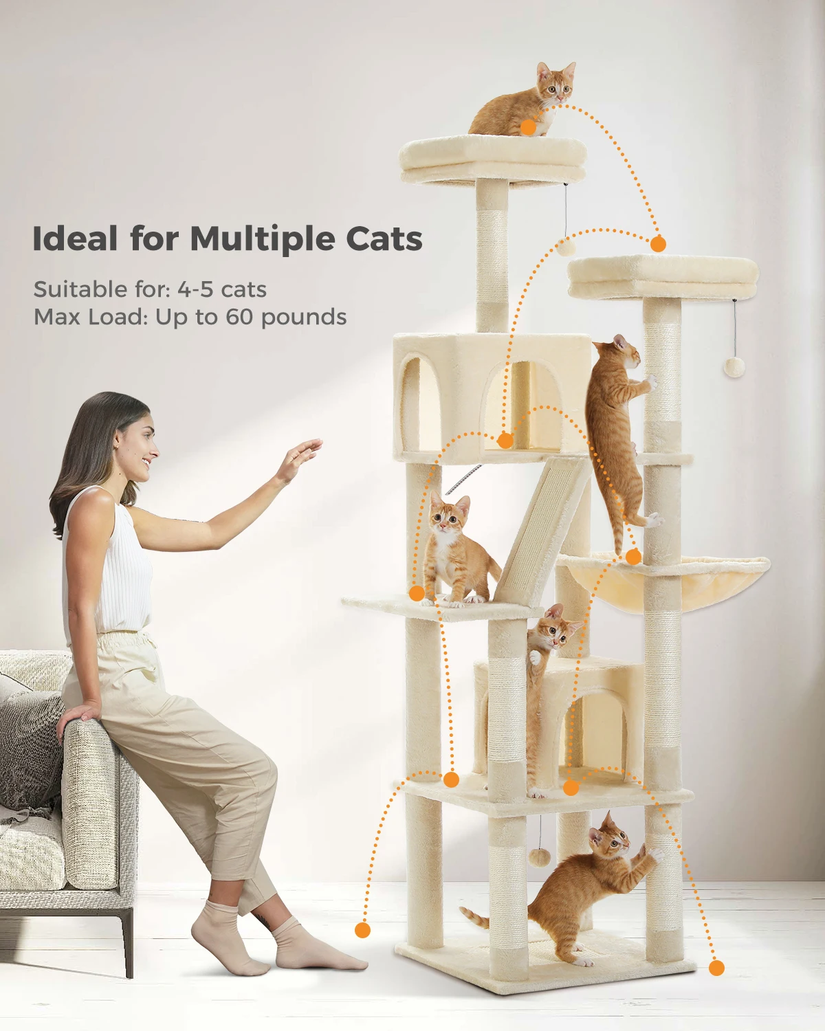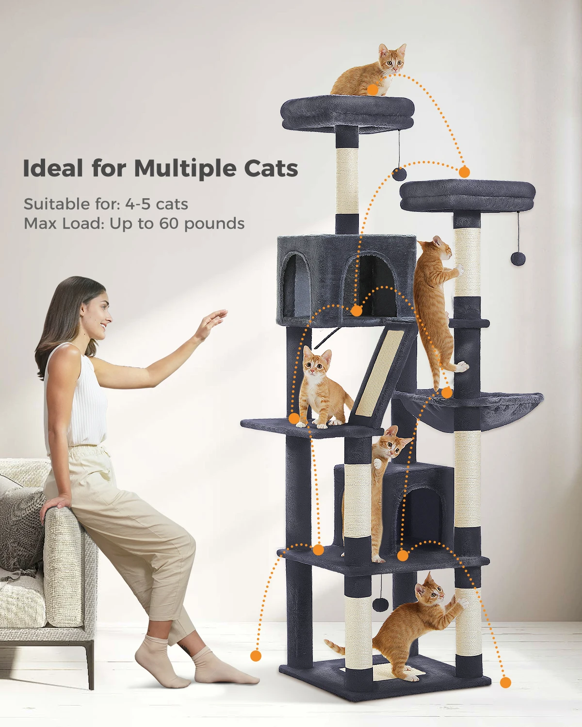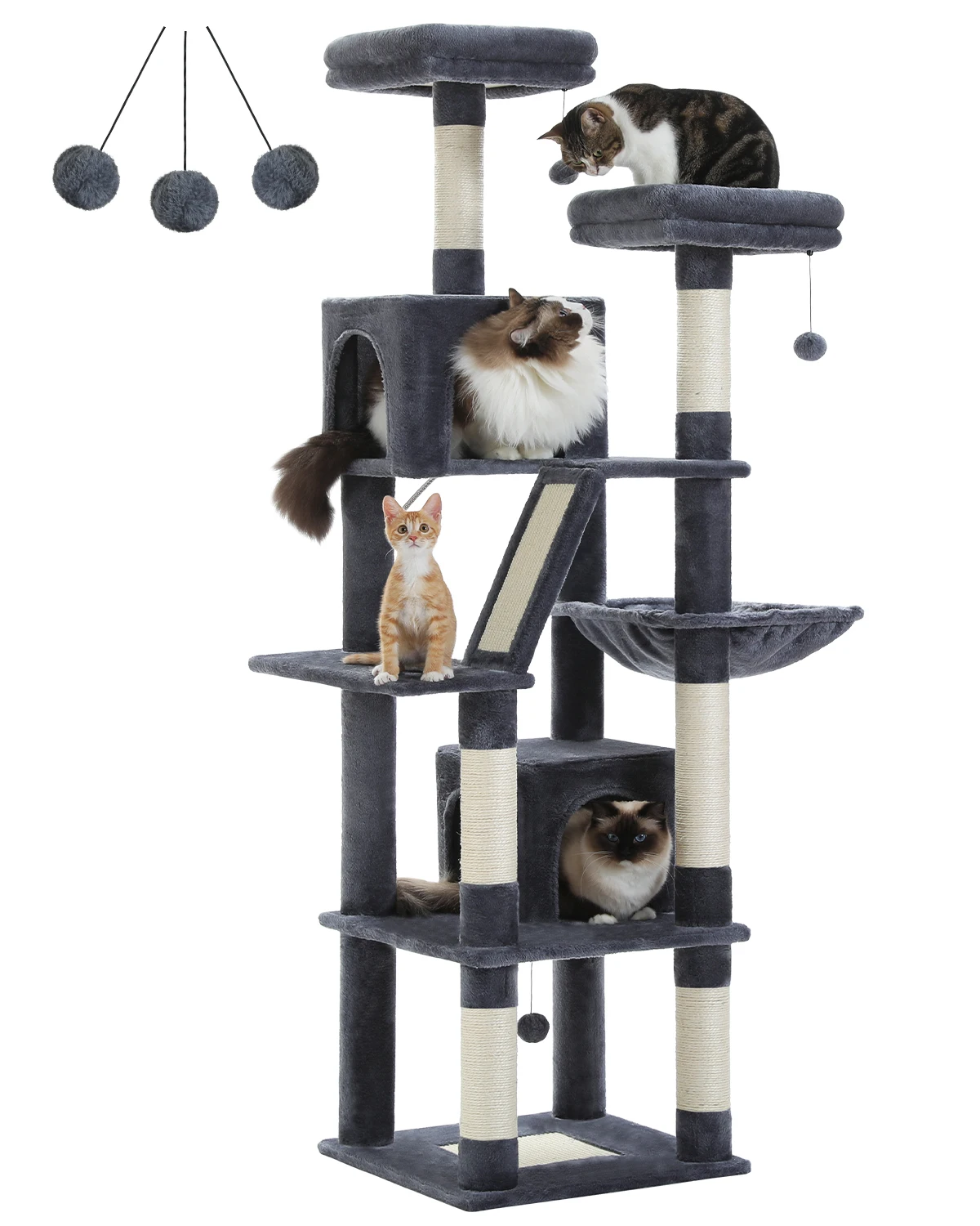 1.Torre para gatos de varios niveles, permite que 4-5 gatos descansen juntos al mismo tiempo.Adecuado para familias de varios gatos.