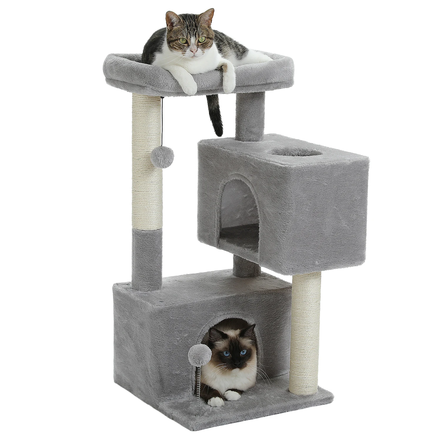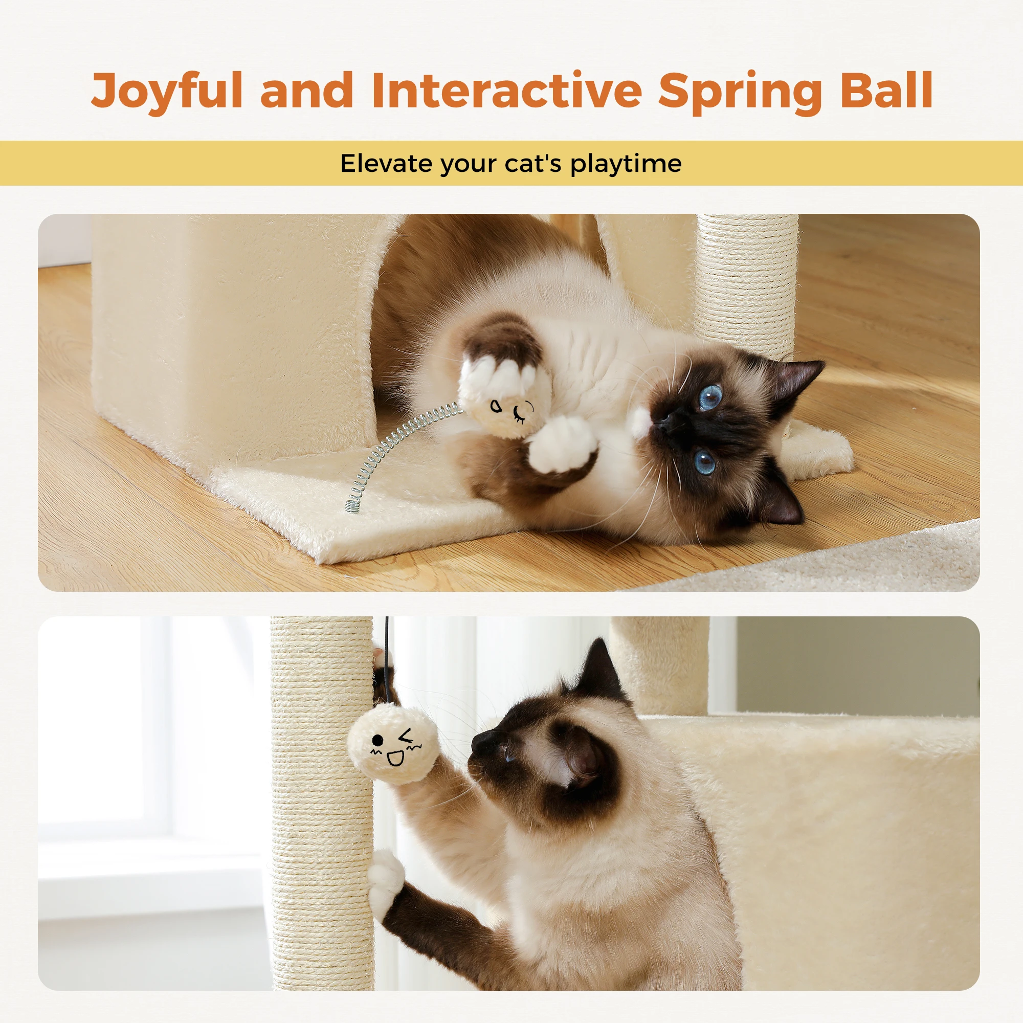 Duplica la diversión con dos pompones:Equipada con dos divertidos pompones, esta torre para gatos ofrece el doble de entretenimiento para tus gatos.Estos juguetes colgantes fomentan el juego activo y ayudan a mantener a sus gatos interesados y estimulados, brindándoles horas de diversión.