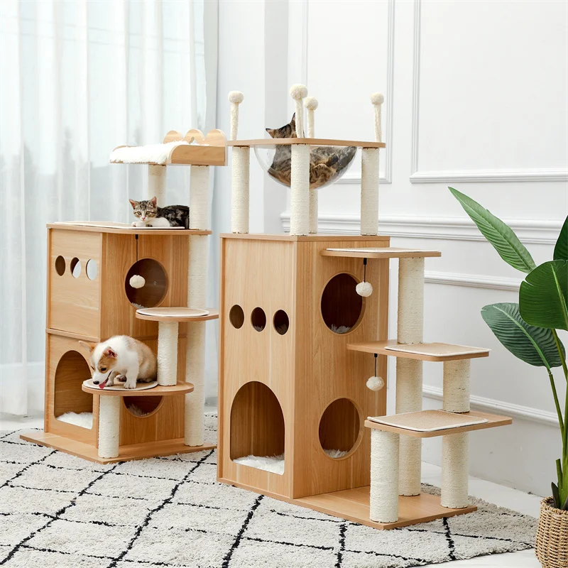 Árbol para gatos multivel moderno, postes de Sisal para rascar, toalla de madera para gatos, marco de escalada con conos acogedores, nido de lujo