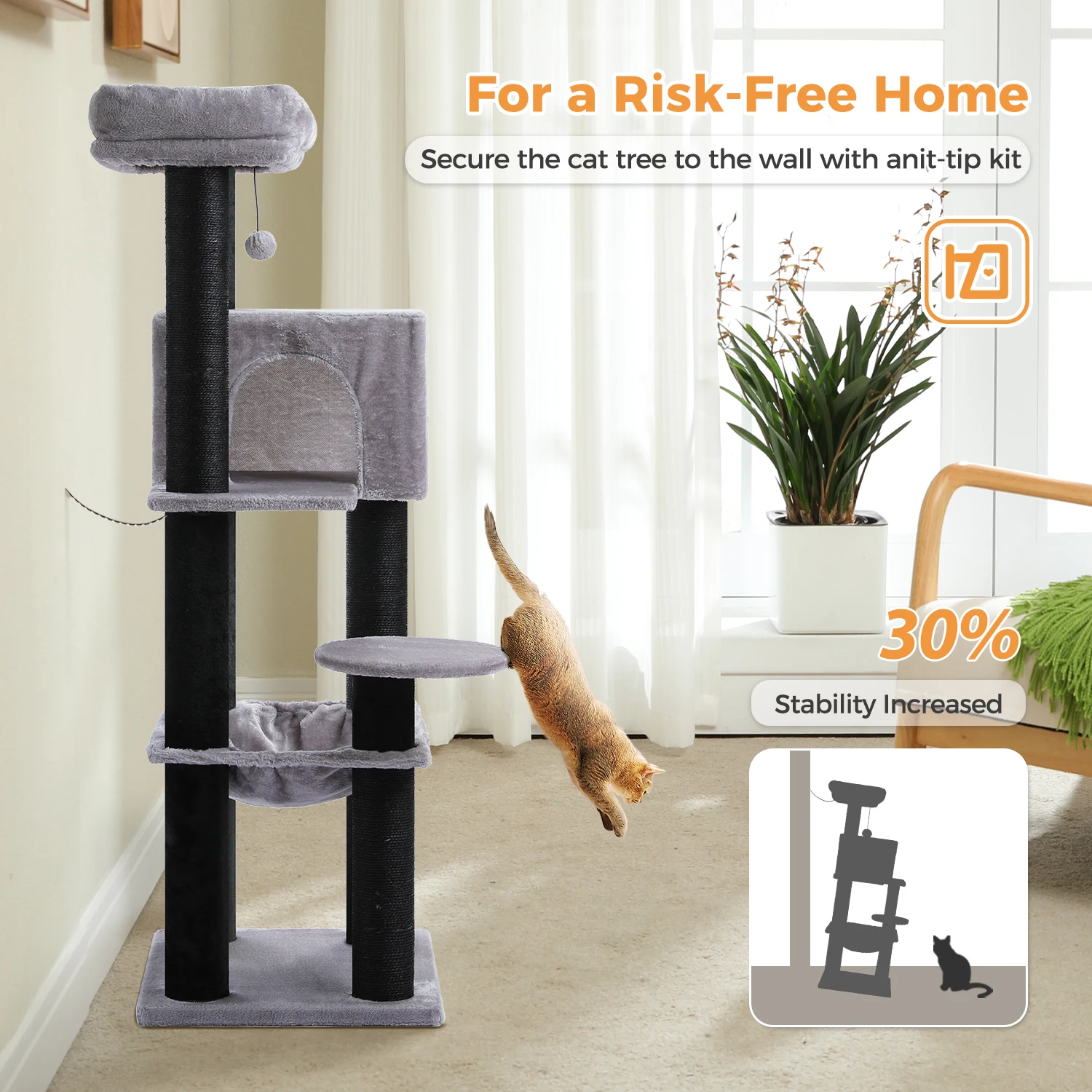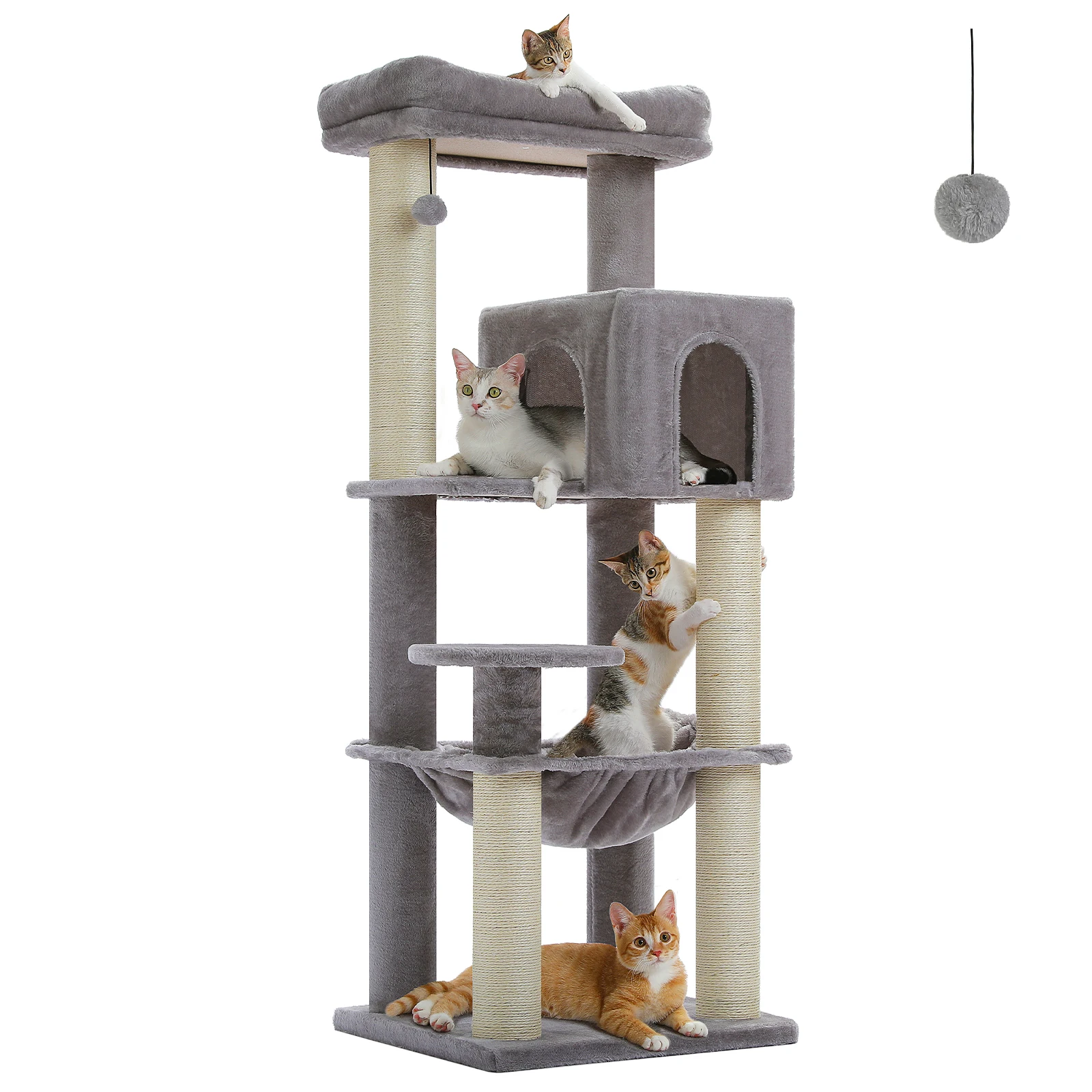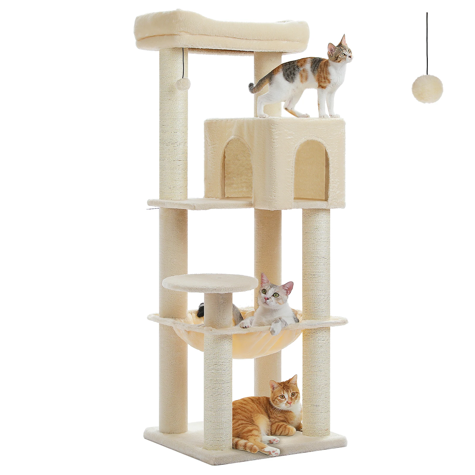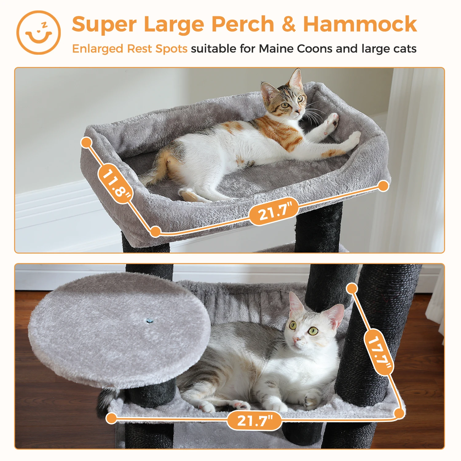 Upgrade Cat Tree for Large Adult Cats: Extra-wide plush hammock and reinforced perch accommodate Maine Coon, Ragdoll, and big cats up to 30lbs. Multi-tier structure with 3.7" thick sisal-wrapped scratching posts prevents tipping. Perfect for multi-cat households with simultaneous use.