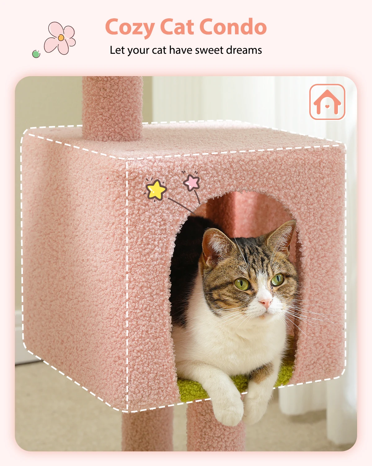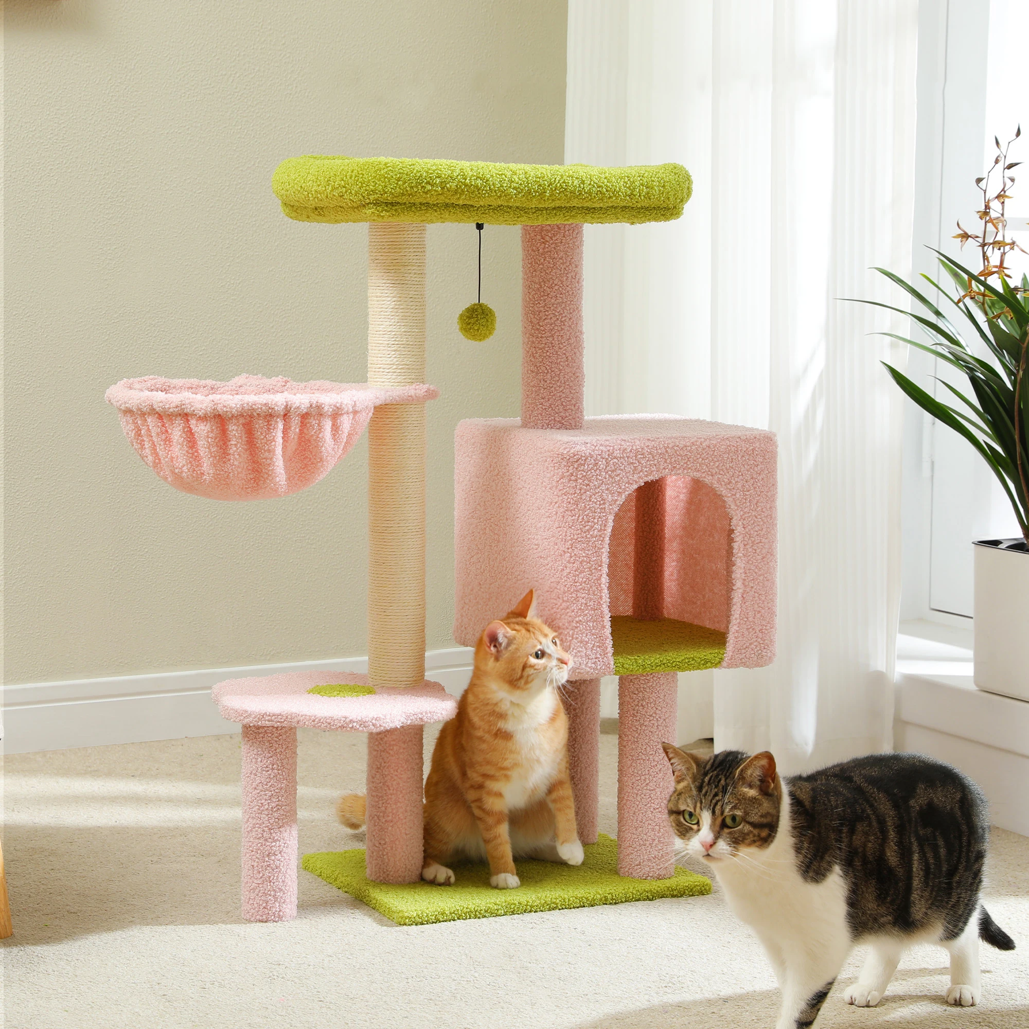 Árbol para gatos de lujo para interiores, torre para gatos de varios niveles con hamaca Condo, percha acolchada, poste para rascar gatos, accesorios para gatos, juguetes para gatos