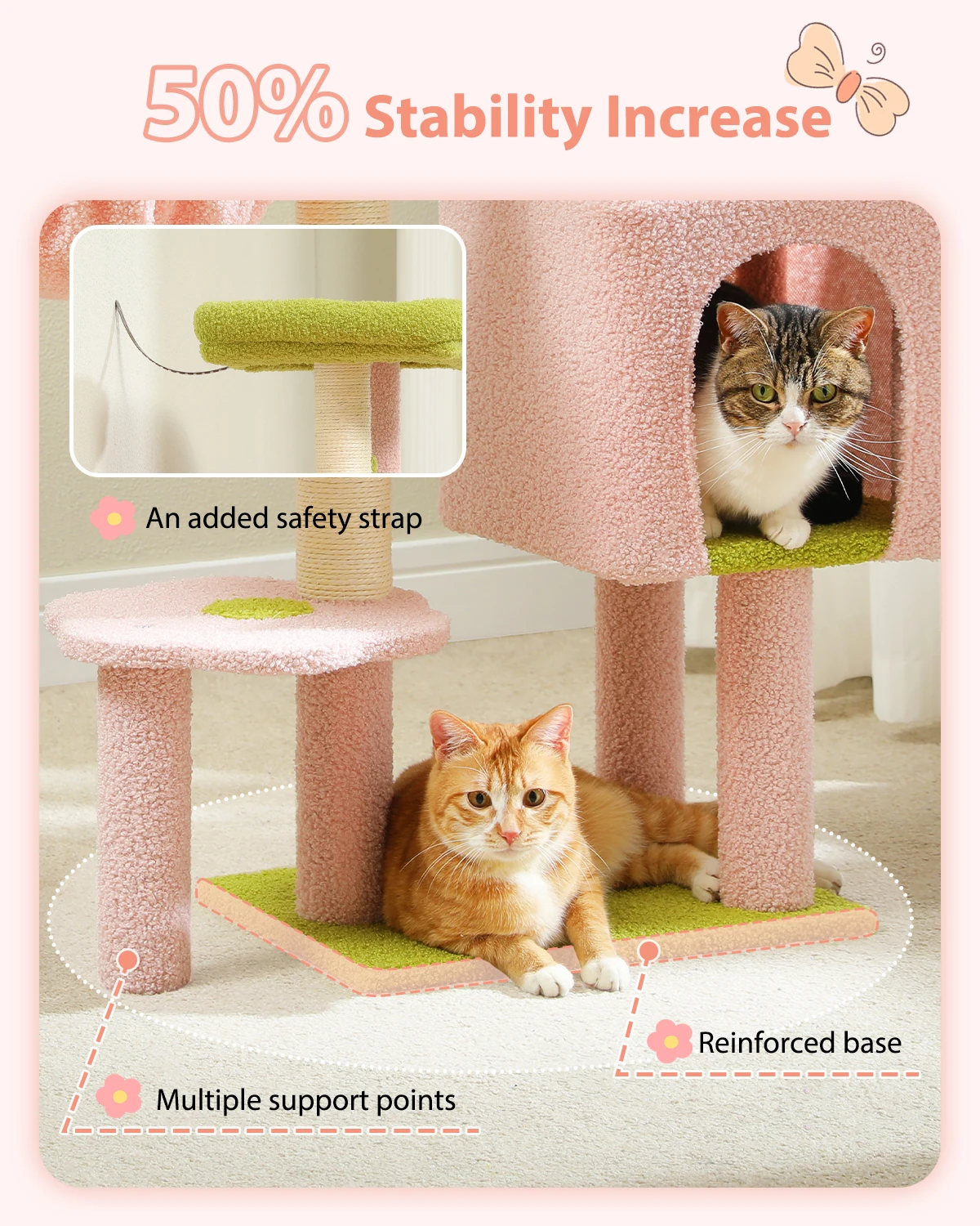 [Más diversión]:Tu amigo felino no solo puede dormir en la cama superior grande y suave, sino que también disfruta jugando con un pompón de felpa interactivo y postes rascadores envueltos en sisal natural.El rascador de sisal natural estimula sus instintos naturales de rascado, proporcionando un lugar para que sus amigos peludos afilen sus garras y liberen energía.¡Manténgalos alejados de sus costosos muebles!