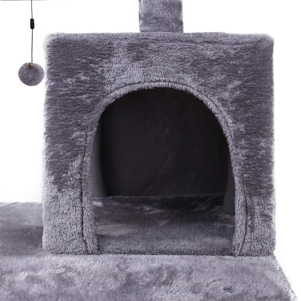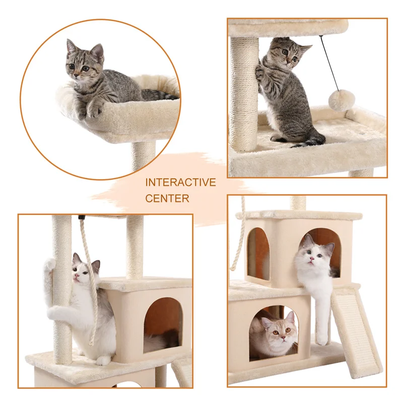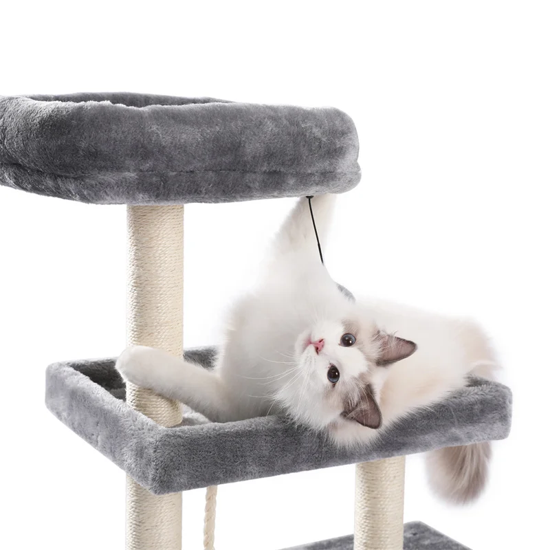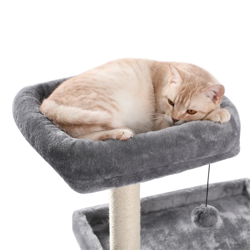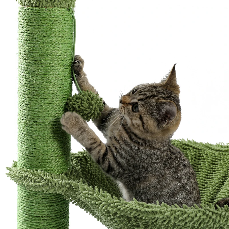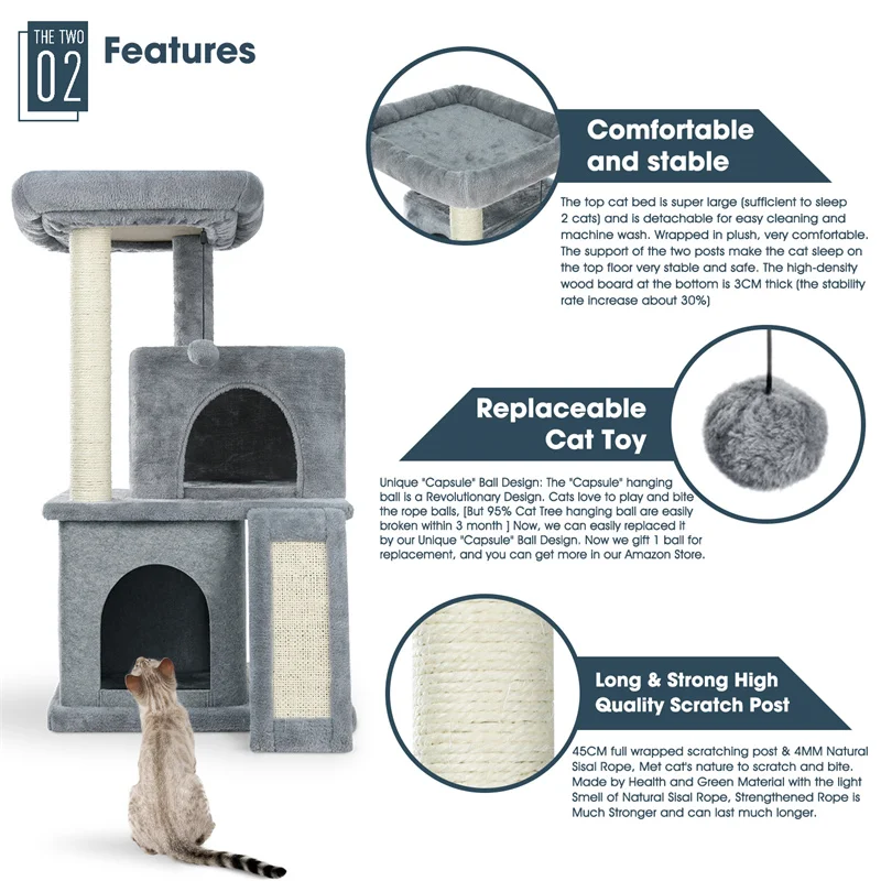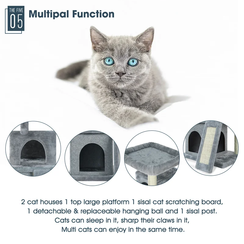 Si tiene un gato, sin duda puede entender cuánto entretenimiento necesita. Amueblado con una percha de felpa extragrande, 2 espaciosos condominios escondidos y una profunda y acogedora Hamaca, este árbol para gatos es un domicilio lujoso y de ensueño para cada tigre doméstico.La estabilidad es una de las principales características que determinarán el grado de satisfacción tanto usted como su gato con la torre elegida.El diseño de varias capas es conveniente para que sus gatos se suban y bajen. Una acogedora hamaca permite a sus gatos disfrutar de un baño de sol mientras duermen la siesta mientras la pelota esponjosa interactiva enriquece su tiempo de juego.Rascar es siempre el favorito de los felinos. Por lo tanto, 5 postes de rascado engrosados, incluso más gruesos que antes, en este árbol para gatos están completamente envueltos con una cuerda de sisal 100% natural para permitir rascarse las uñas y promover su ejercicio diario.AMT0005