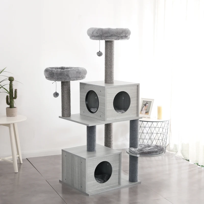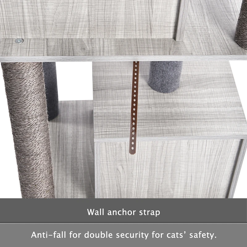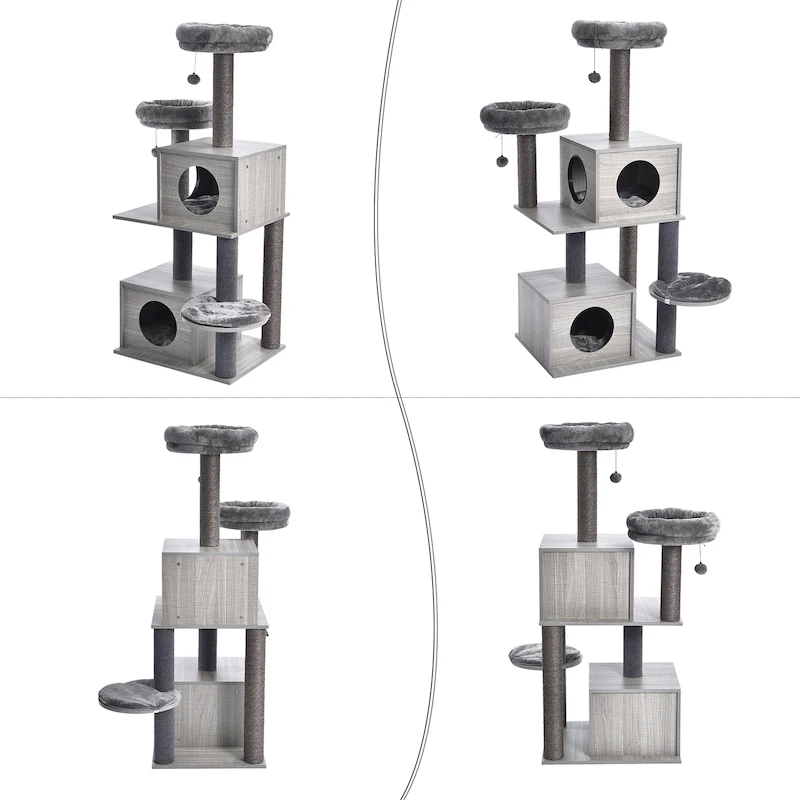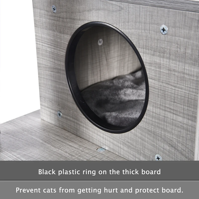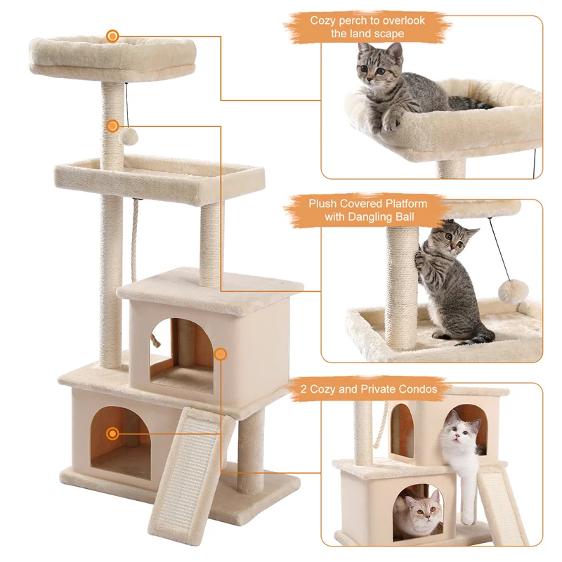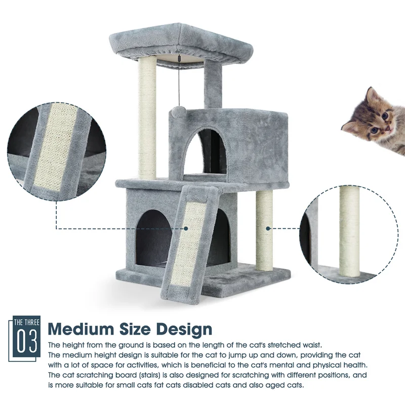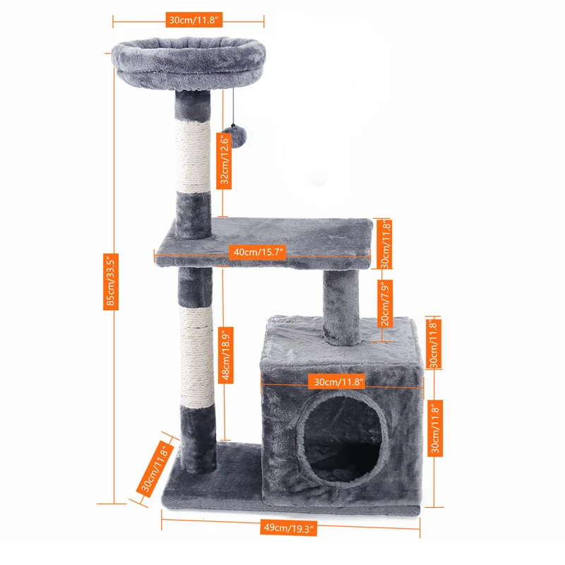 Si tiene un gato, sin duda puede entender cuánto entretenimiento necesita. Amueblado con una percha de felpa extragrande, 2 espaciosos condominios escondidos y una profunda y acogedora Hamaca, este árbol para gatos es un domicilio lujoso y de ensueño para cada tigre doméstico.La estabilidad es una de las principales características que determinarán el grado de satisfacción tanto usted como su gato con la torre elegida.El diseño de varias capas es conveniente para que sus gatos se suban y bajen. Una acogedora hamaca permite a sus gatos disfrutar de un baño de sol mientras duermen la siesta mientras la pelota esponjosa interactiva enriquece su tiempo de juego.Rascar es siempre el favorito de los felinos. Por lo tanto, 5 postes de rascado engrosados, incluso más gruesos que antes, en este árbol para gatos están completamente envueltos con una cuerda de sisal 100% natural para permitir rascarse las uñas y promover su ejercicio diario.AMT0005