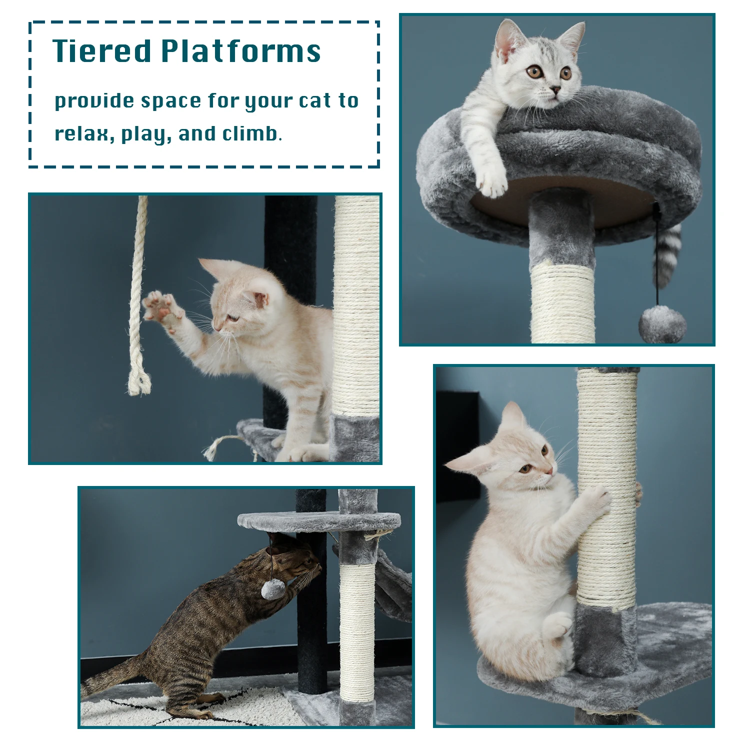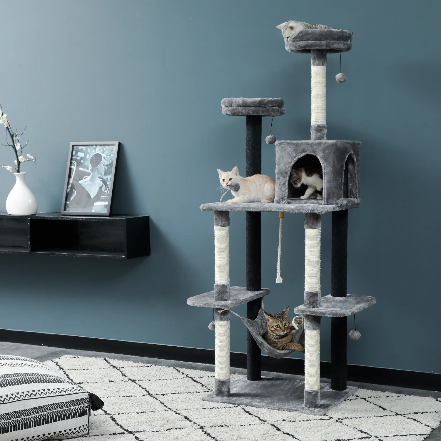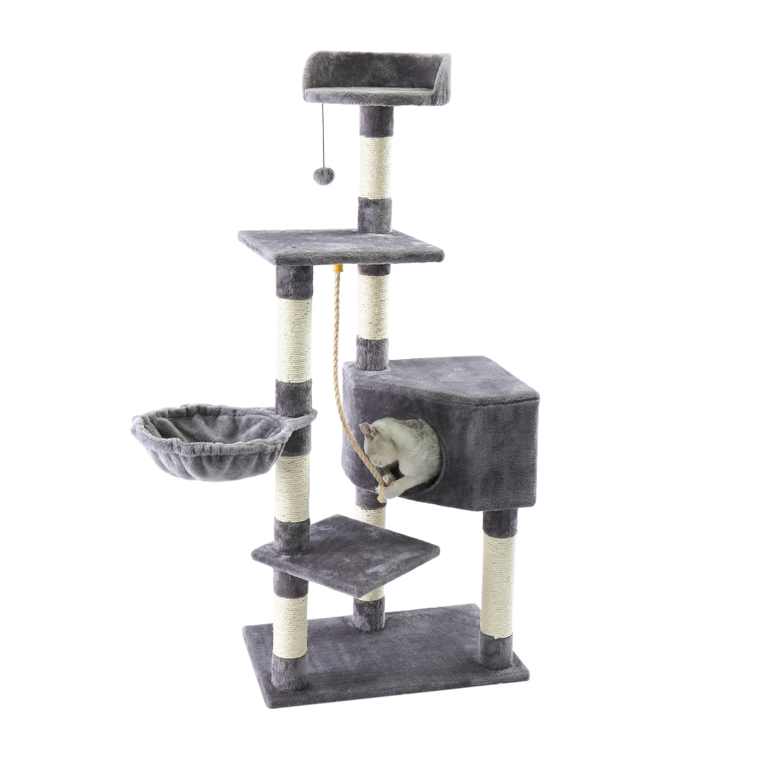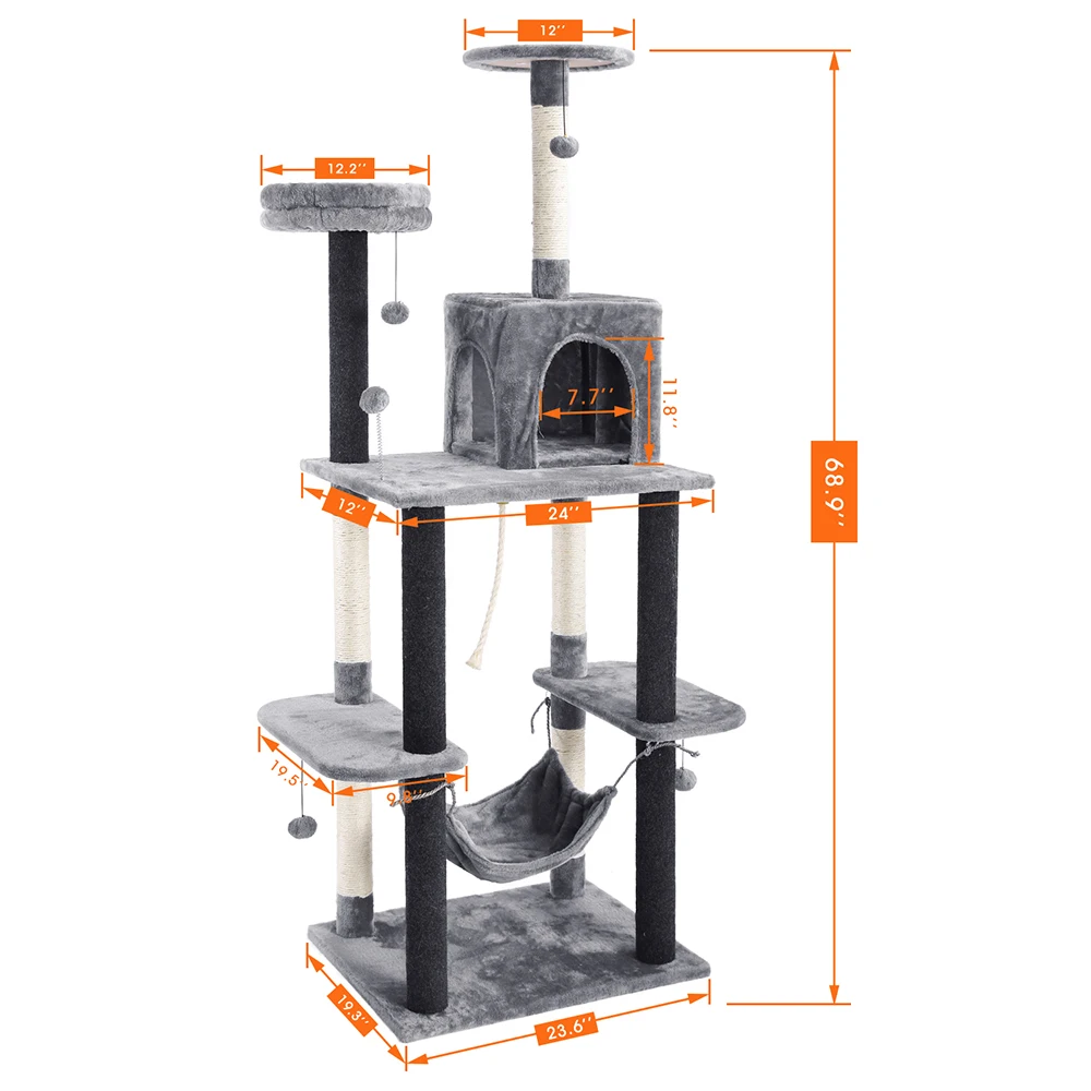 Torre para gatos Deluxe de varios niveles con percha de felpa extragrande, hamaca espaciosa y rascador grueso cubierto de sisal