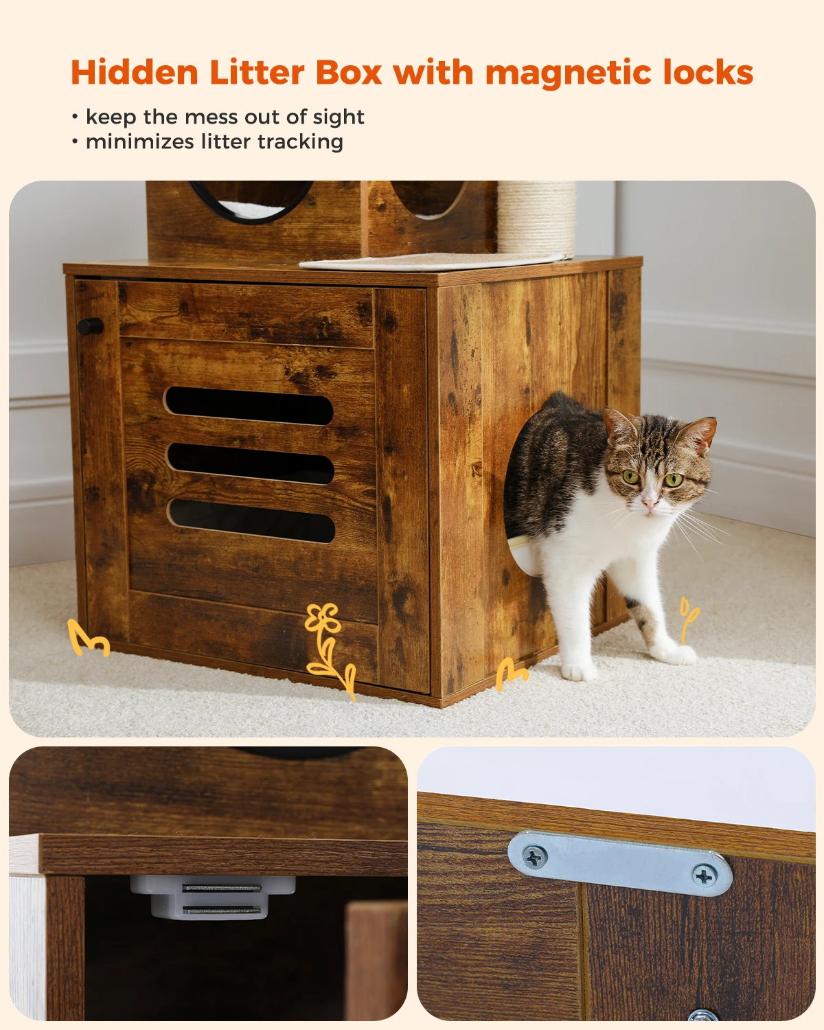 5. Árbol trepador alto para gatos, envíe una caja de arena plegable para gatos. Resuelve el problema del inodoro de tu gato.