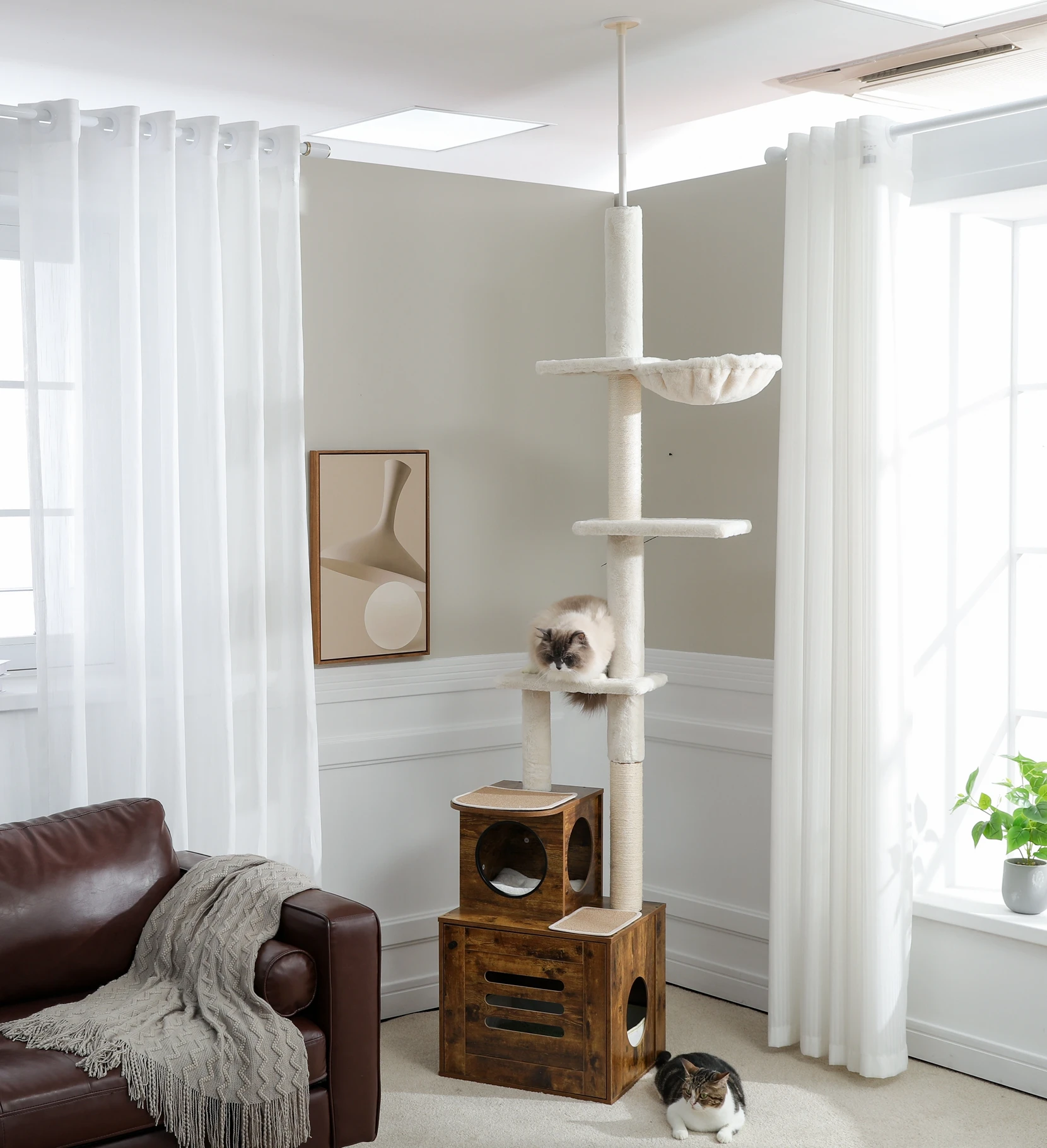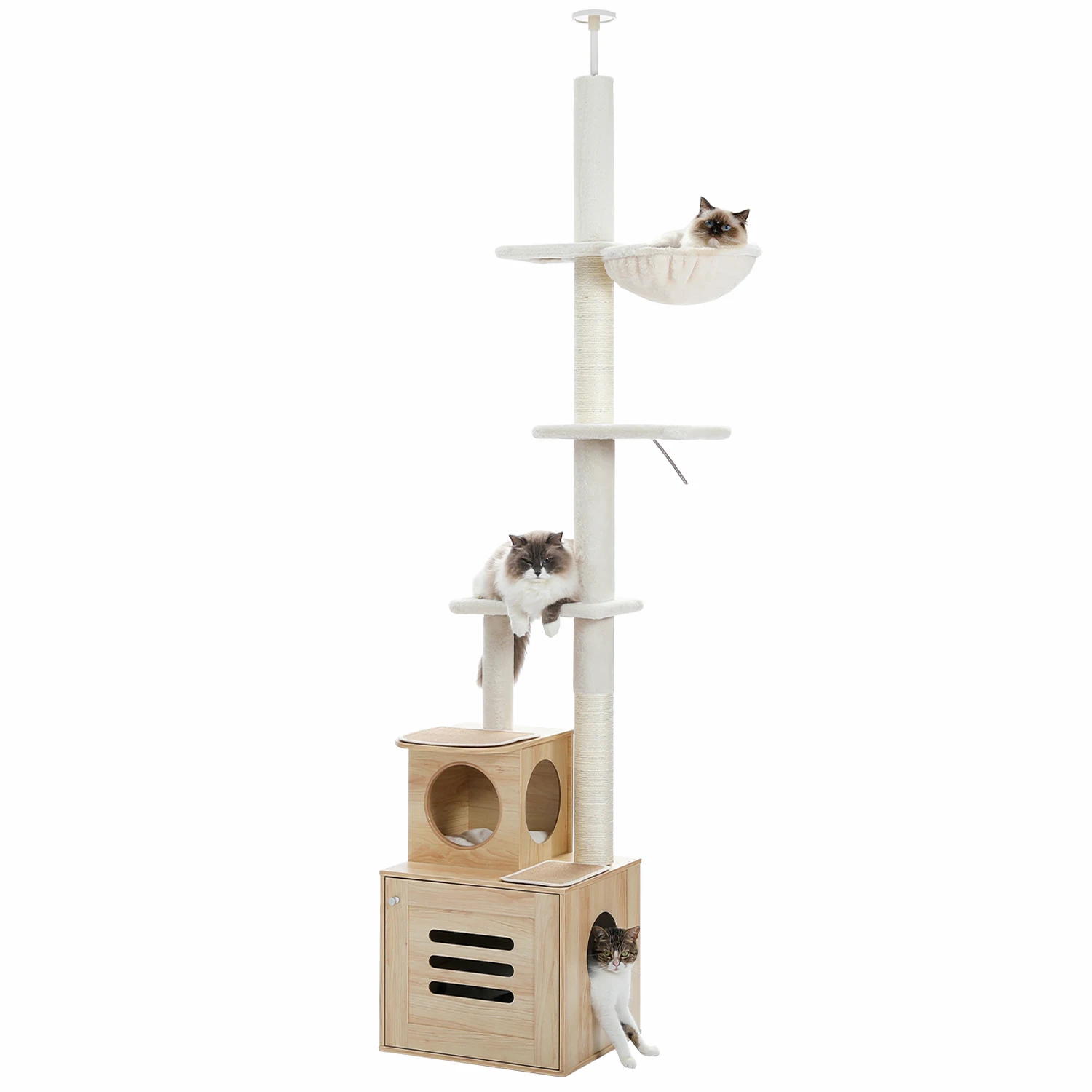 Nombre: Ajustable 230-280cm de altura gato árbol gato condominio madera gato Torre gato rascador
