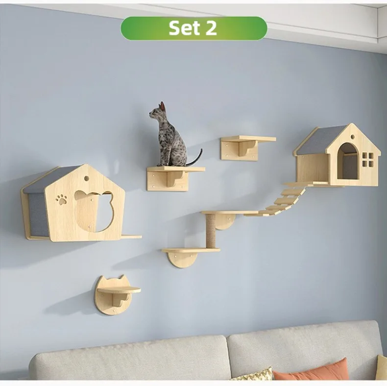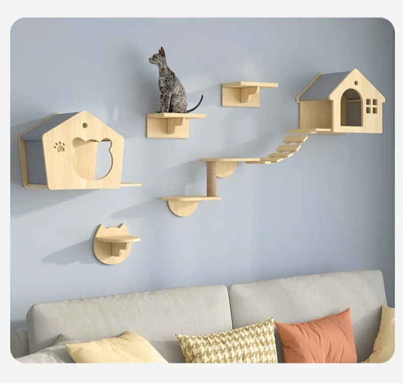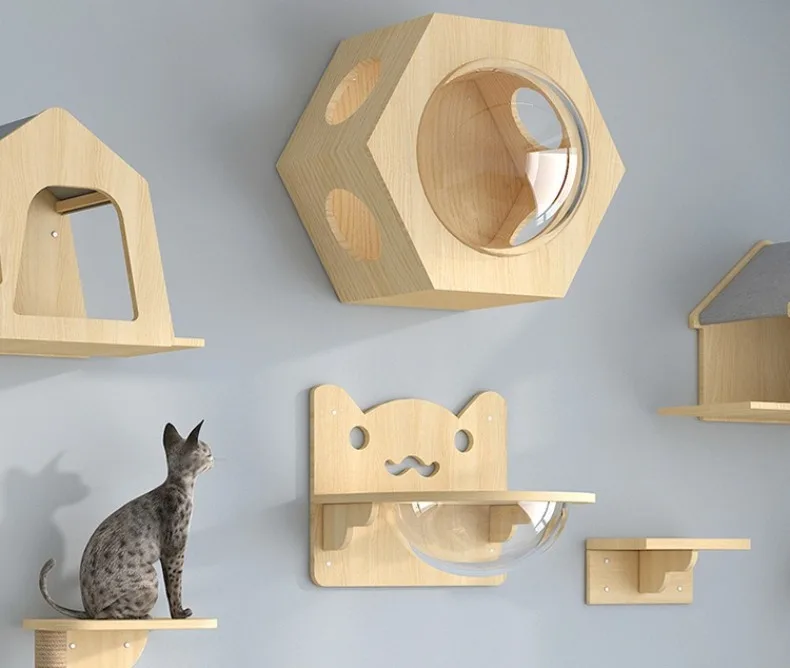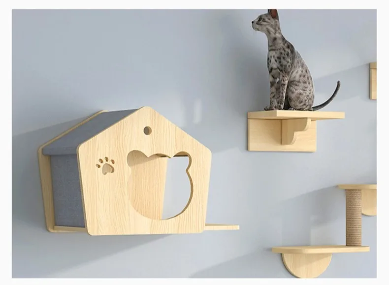 Árbol de pared para gatos de madera maciza, árboles colgantes para gatos, cama para gatos, muebles, accesorios, torre, Catnap, casa, suministros de productos para gatos