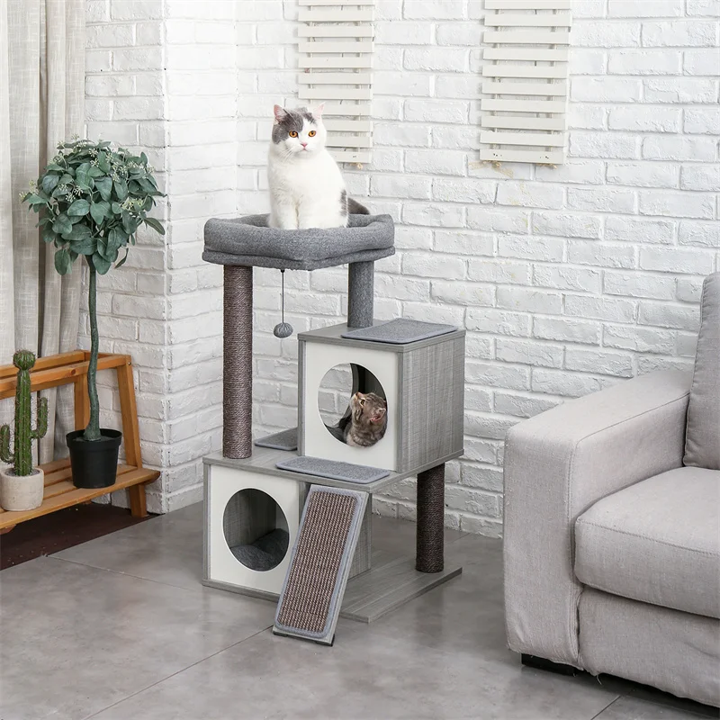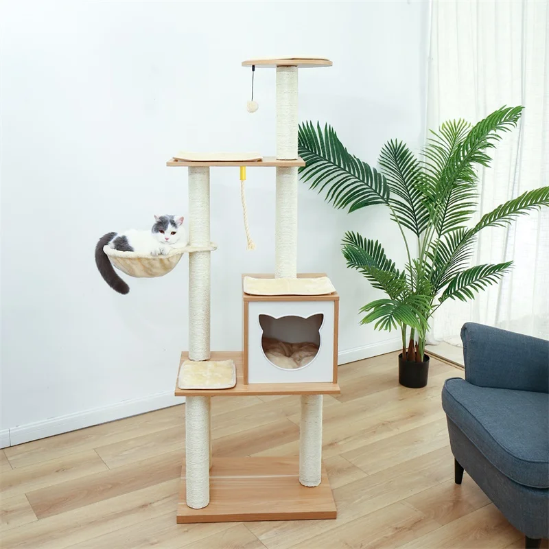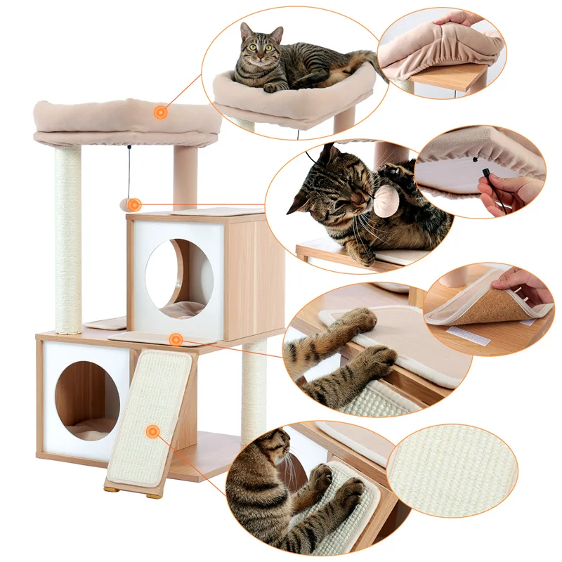 Casa para rascador de gato, sisal, árbol, ventana y silla de lujo para gato, cama, bola colgante divertida, diseño único