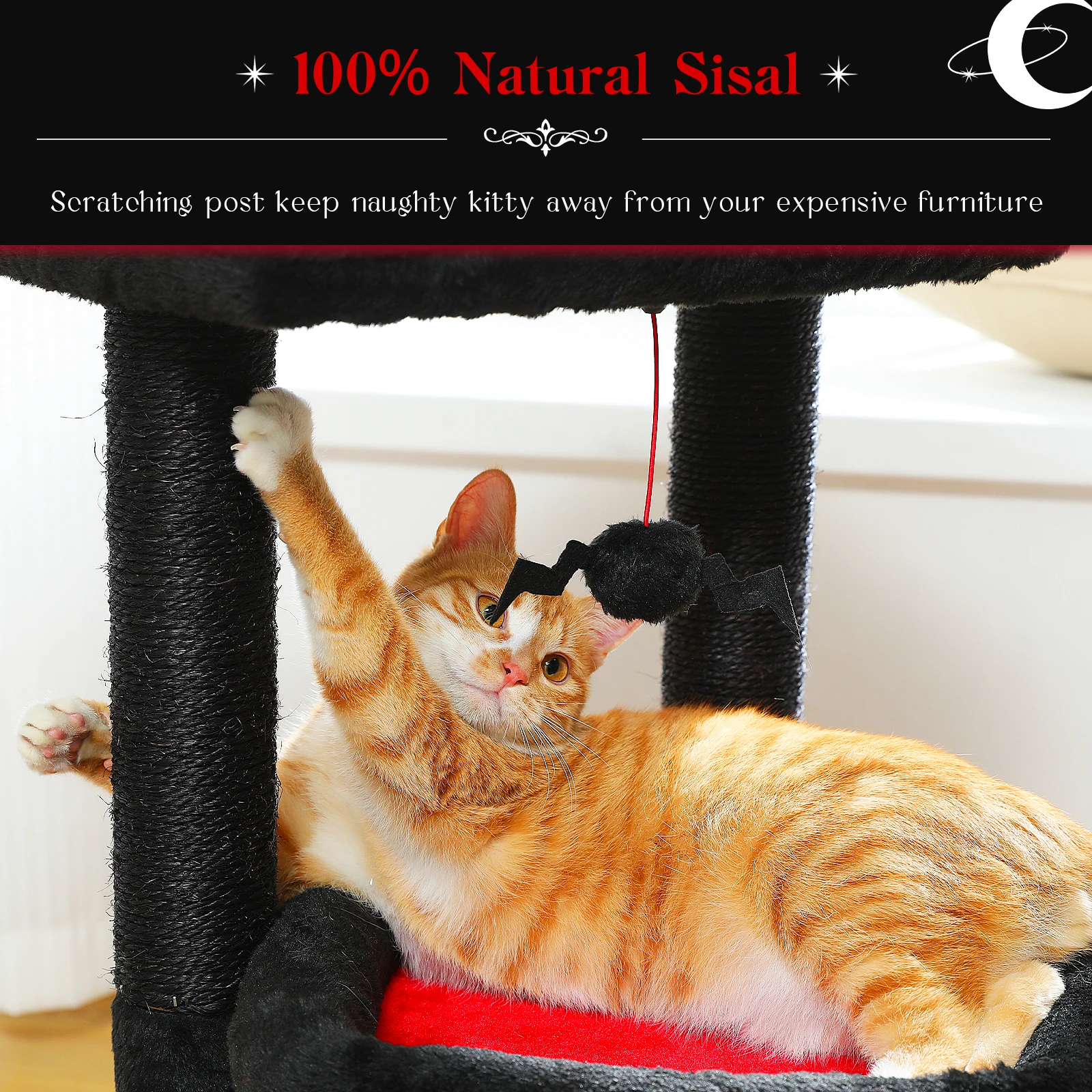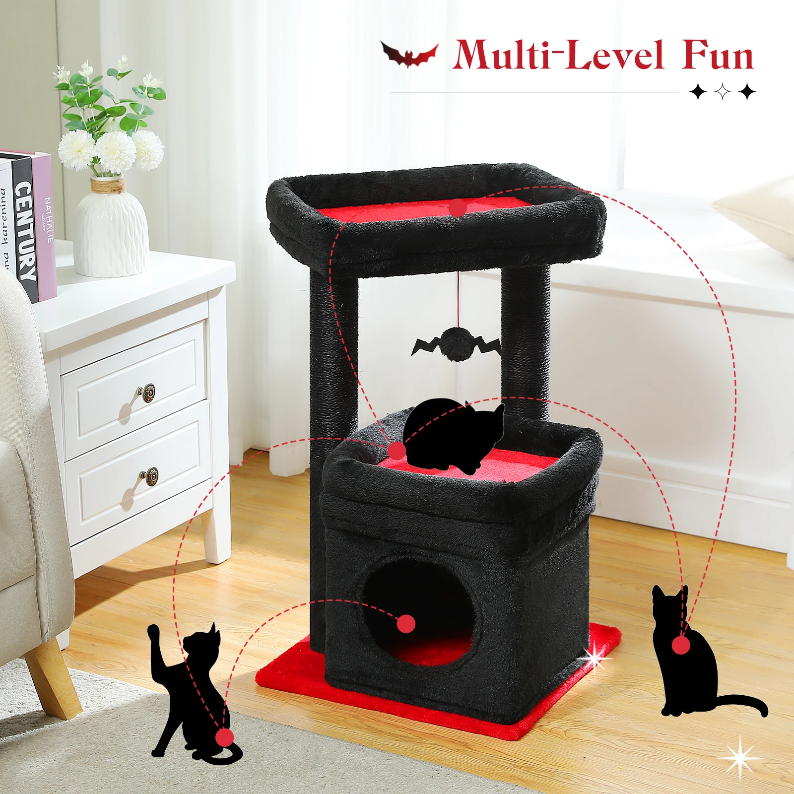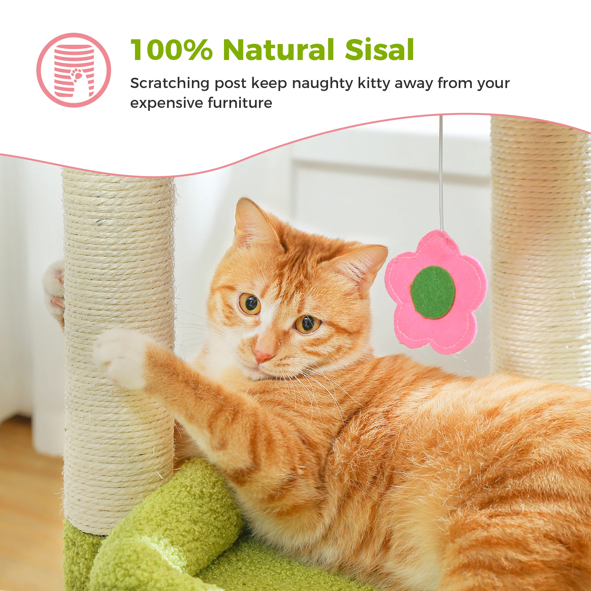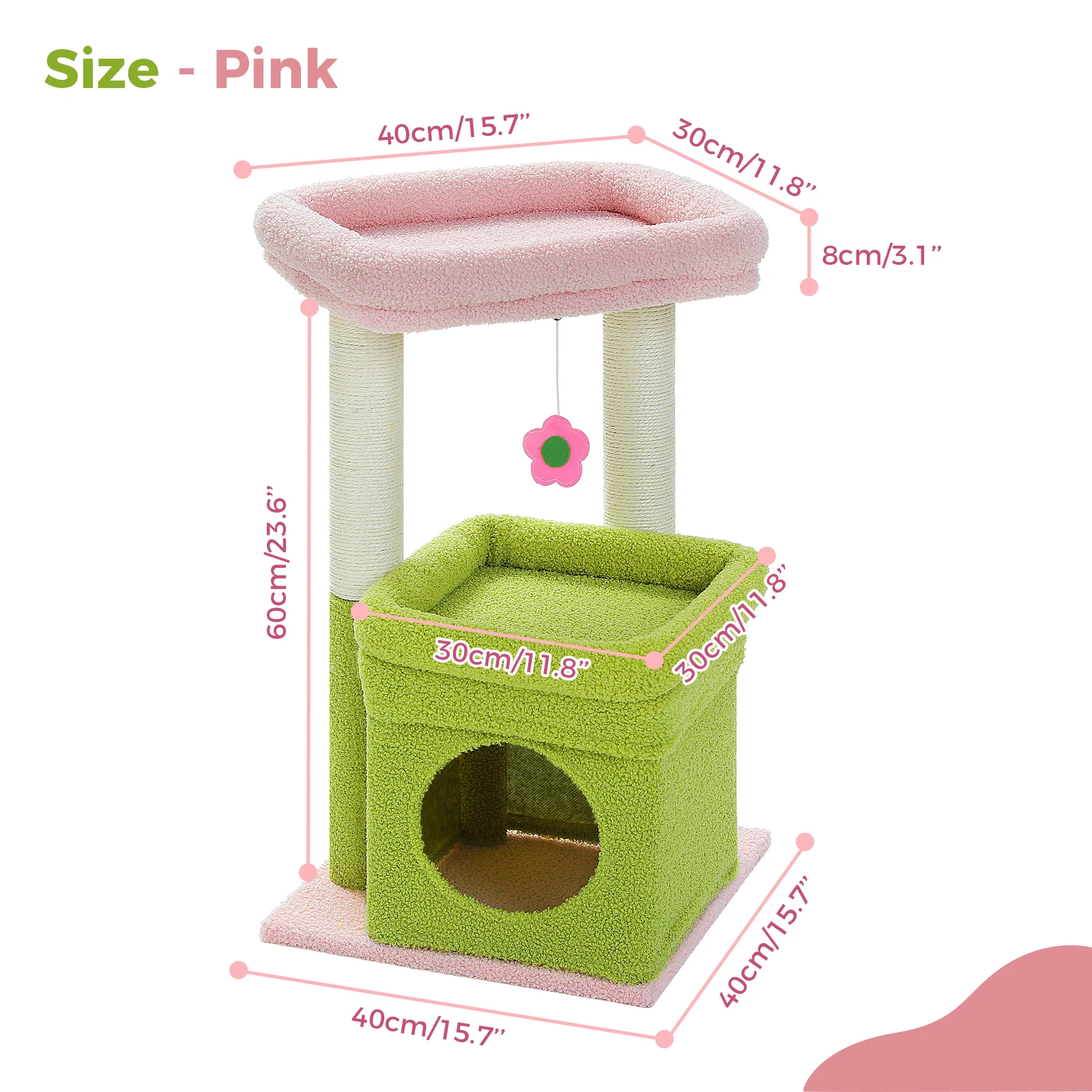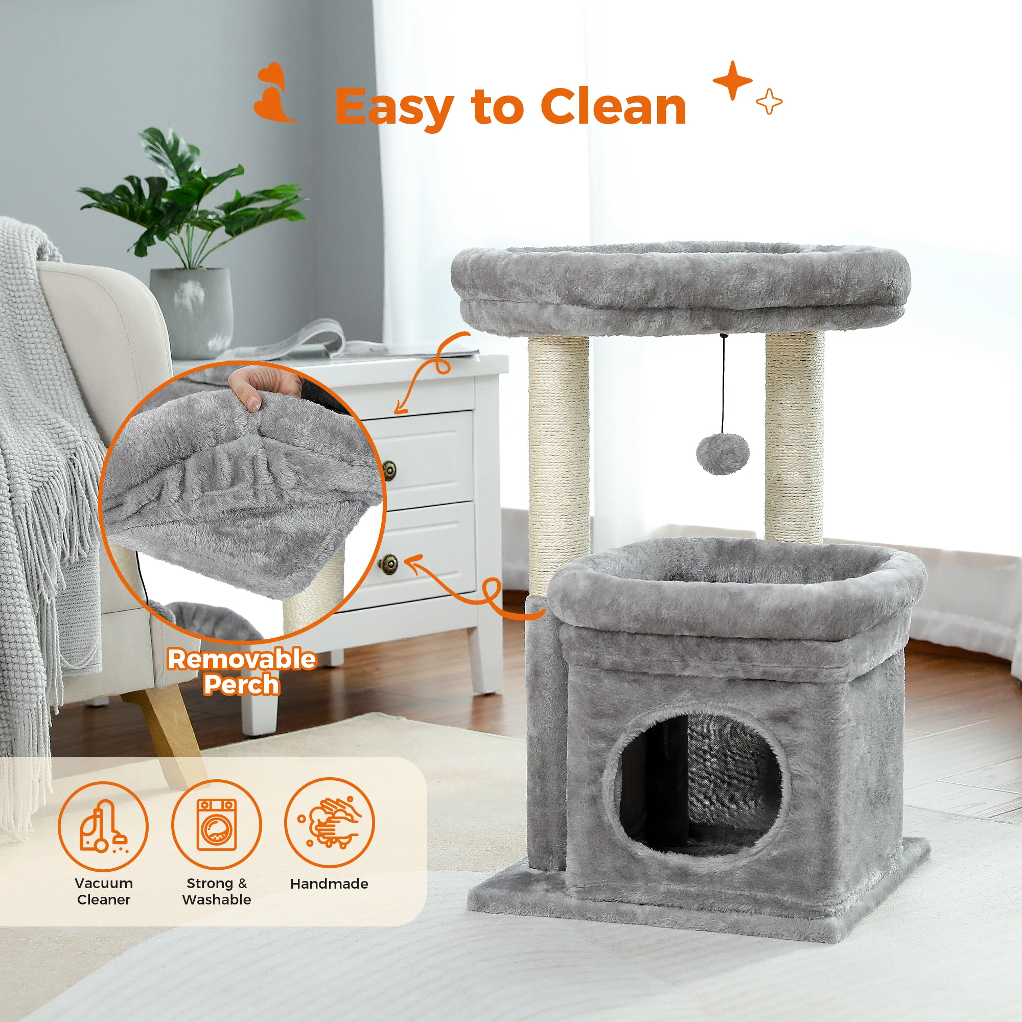 Condominio de árbol de gato pequeño de H68 cm para interior, torre de bolas colgante, percha superior grande, poste rascador de Sisal cálido y acogedor para el hogar, rascadores de gato