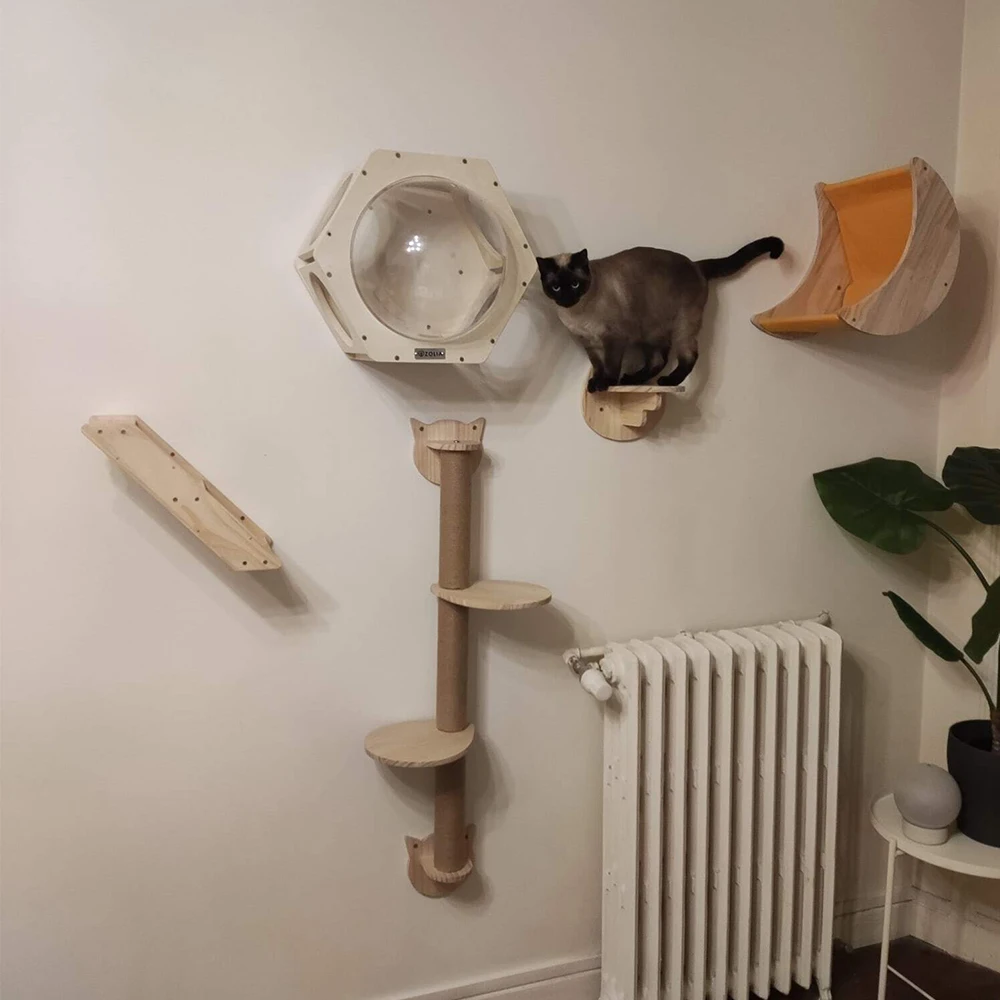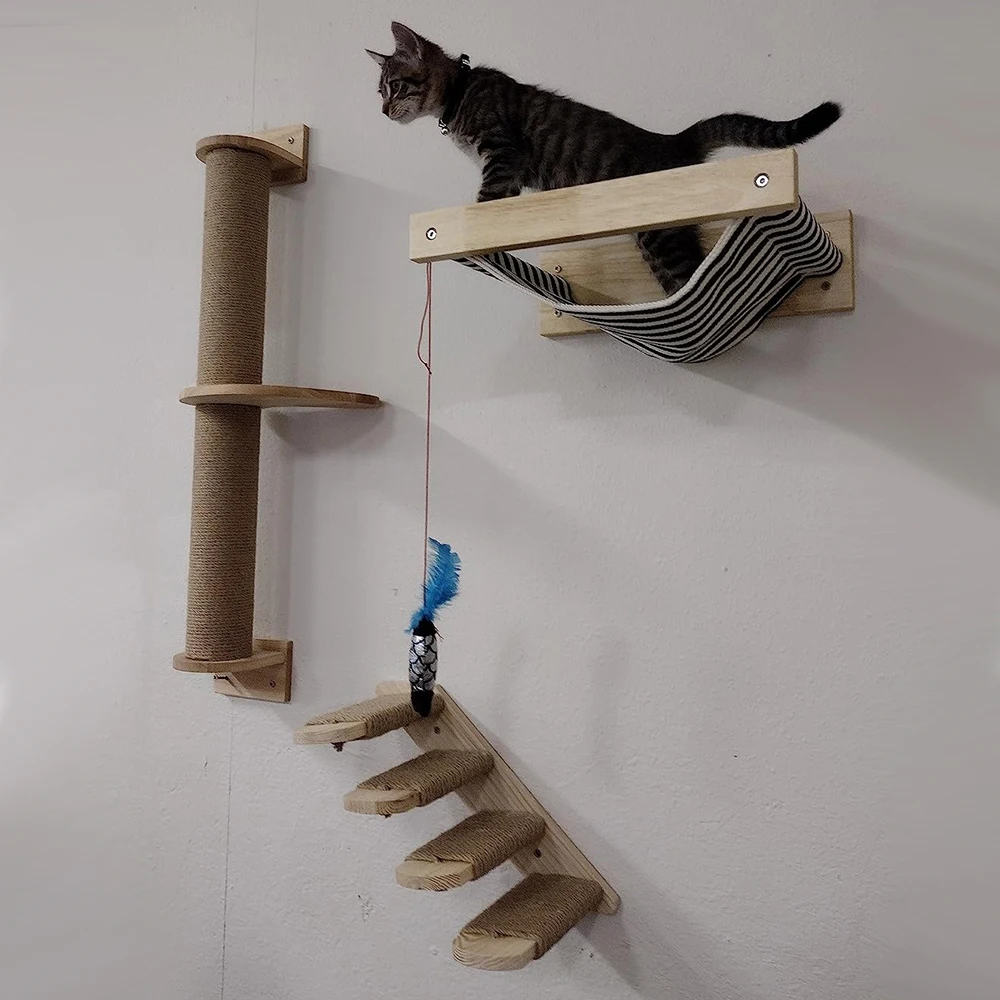 Árbol para gatos montado en la pared, sisal, rascador para gatos, hamaca, juego de descanso, escalera de madera maciza y Pedal para gatos, muebles para mascotas de interior