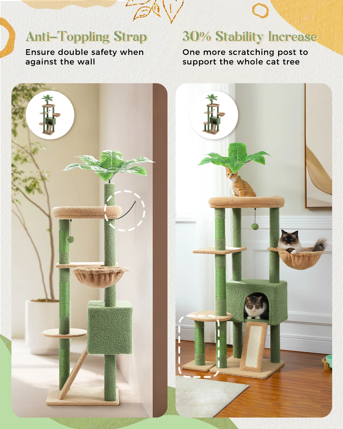 Diseño de cactus fresco: El diseño único de cactus de nuestro árbol para gatos aporta un aspecto fresco y divertido a cualquier habitación. Las hojas verdes adjuntas también pueden despertar la atención de tu felino y llevarlo a explorar. Esos elementos frescos lo convierten no solo en un árbol para gatos, sino en una pieza de decoración que se adapta perfectamente a su hogar.