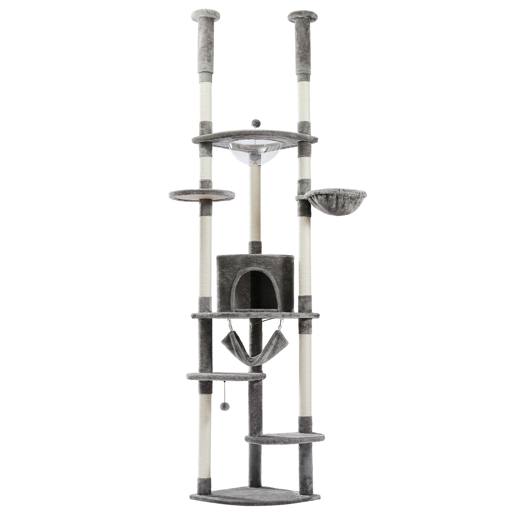 CON ESTILO Y UTILIDAD:Este gran árbol trepador para gatos de altura ajustable es un centro de actividades todo en uno para gatos que satisface sus demandas de pasear y permanecer en diferentes alturas.Con 9 postes rascadores envueltos de sisal, 2 pompones peludos y 7 puntos de descanso adicionales, les brinda suficiente espacio para jugar y descansar.Perfecto para una gran familia de gatos.El diseño elegante y moderno podría combinarse bien con cualquier estilo decorativo de su casa.