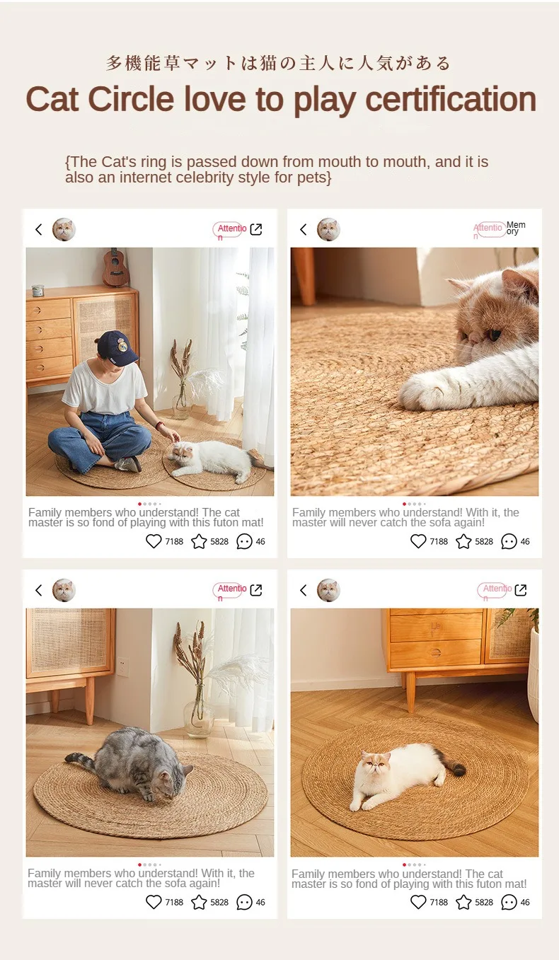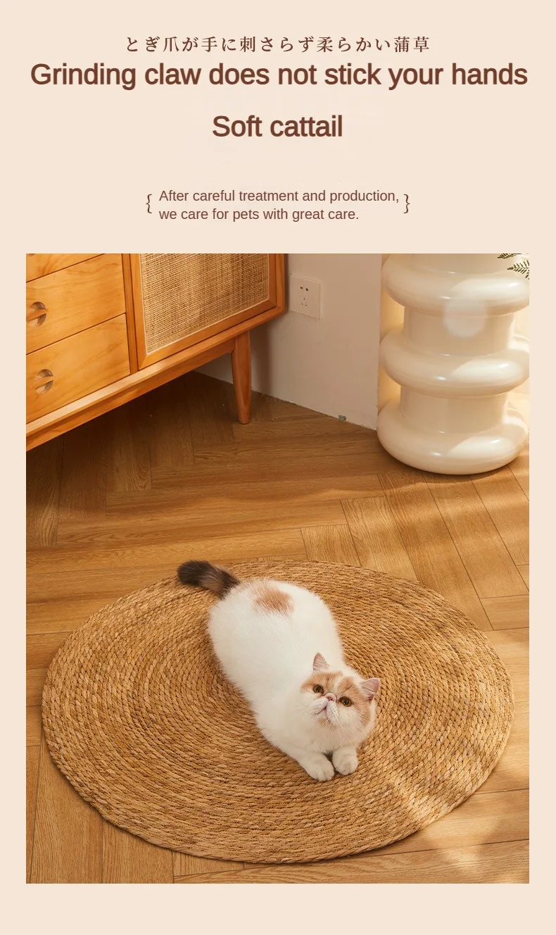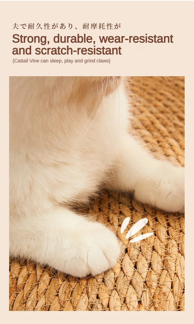 Arena redonda tejida a mano para gatos, nido de ratán para cachorros, almohadilla de refrigeración, alfombrilla para rascar para gatitos, cuerda de algodón lavable, Verano
