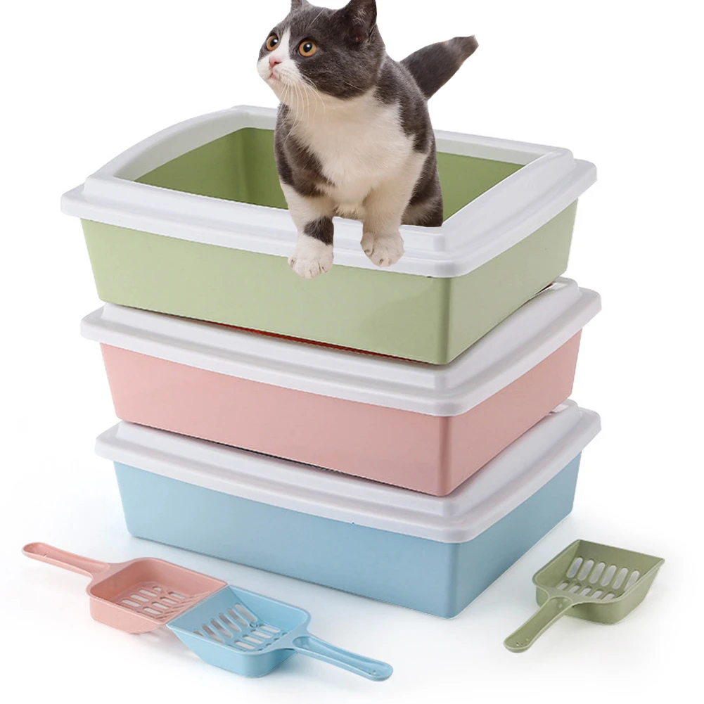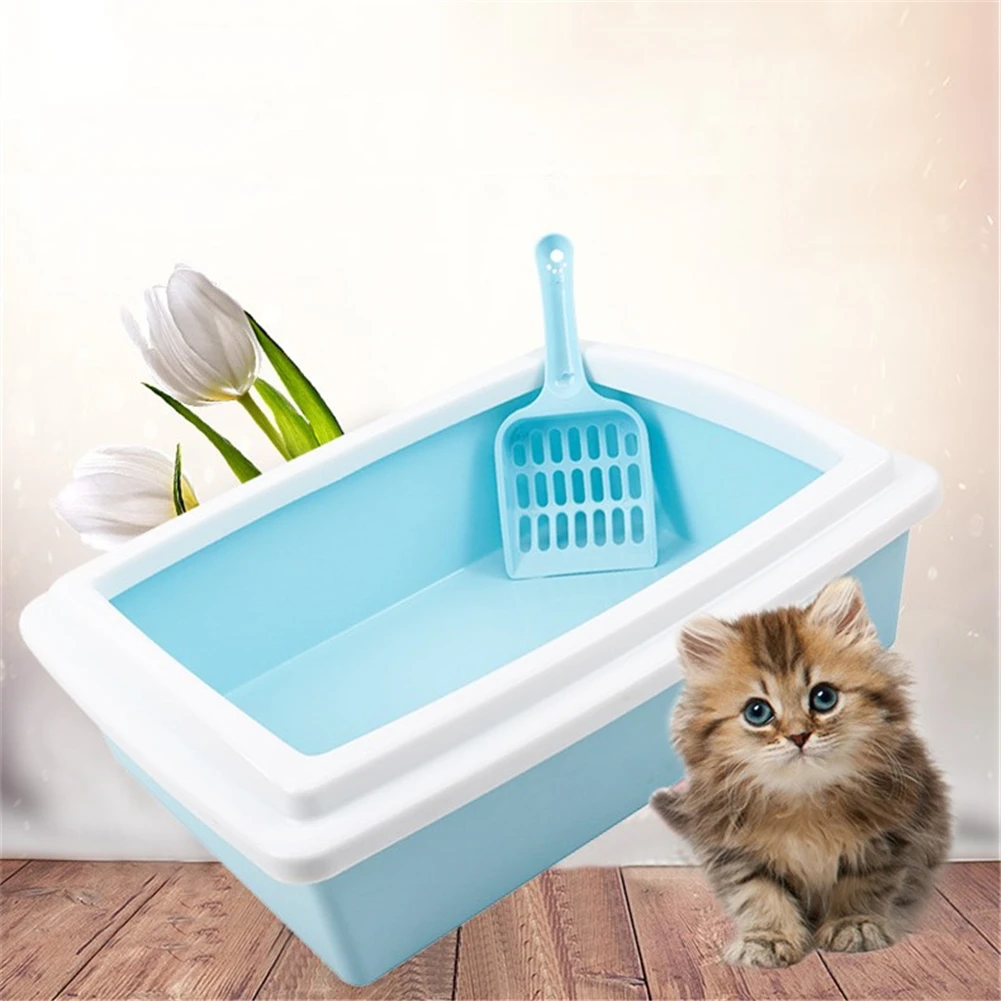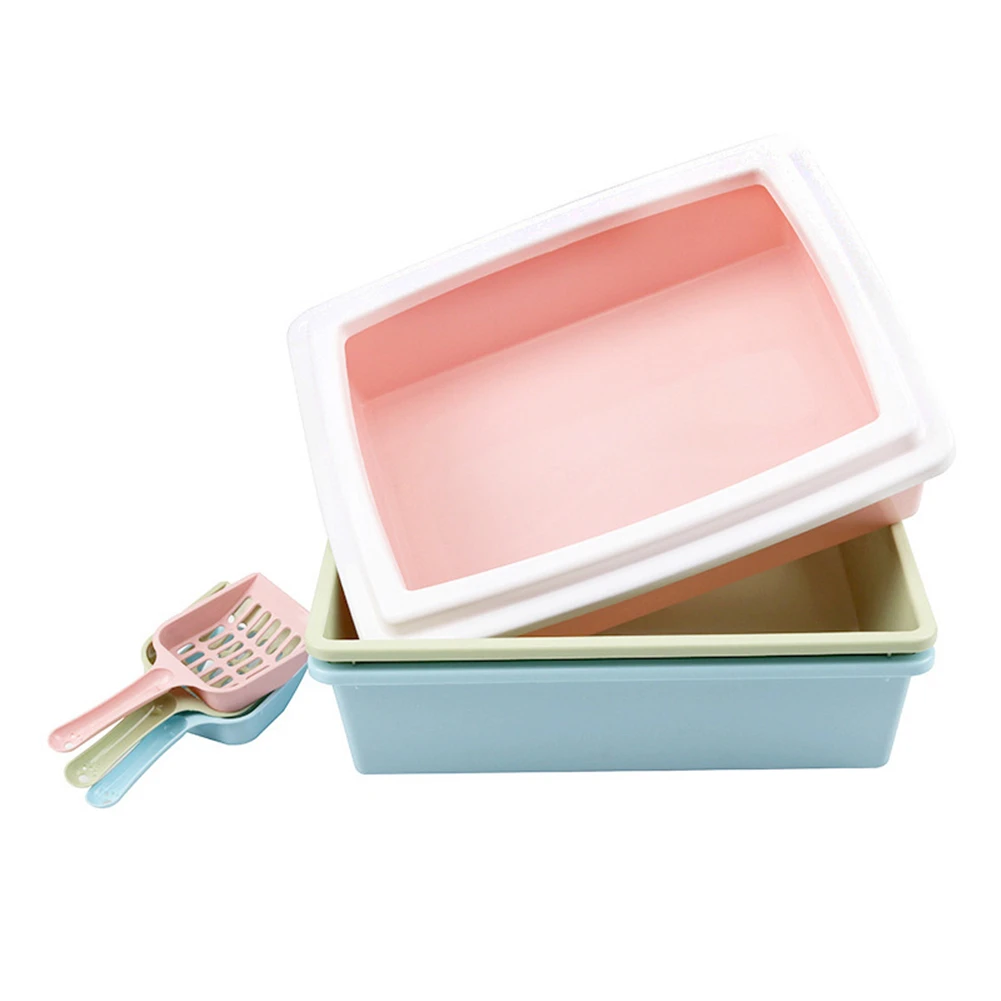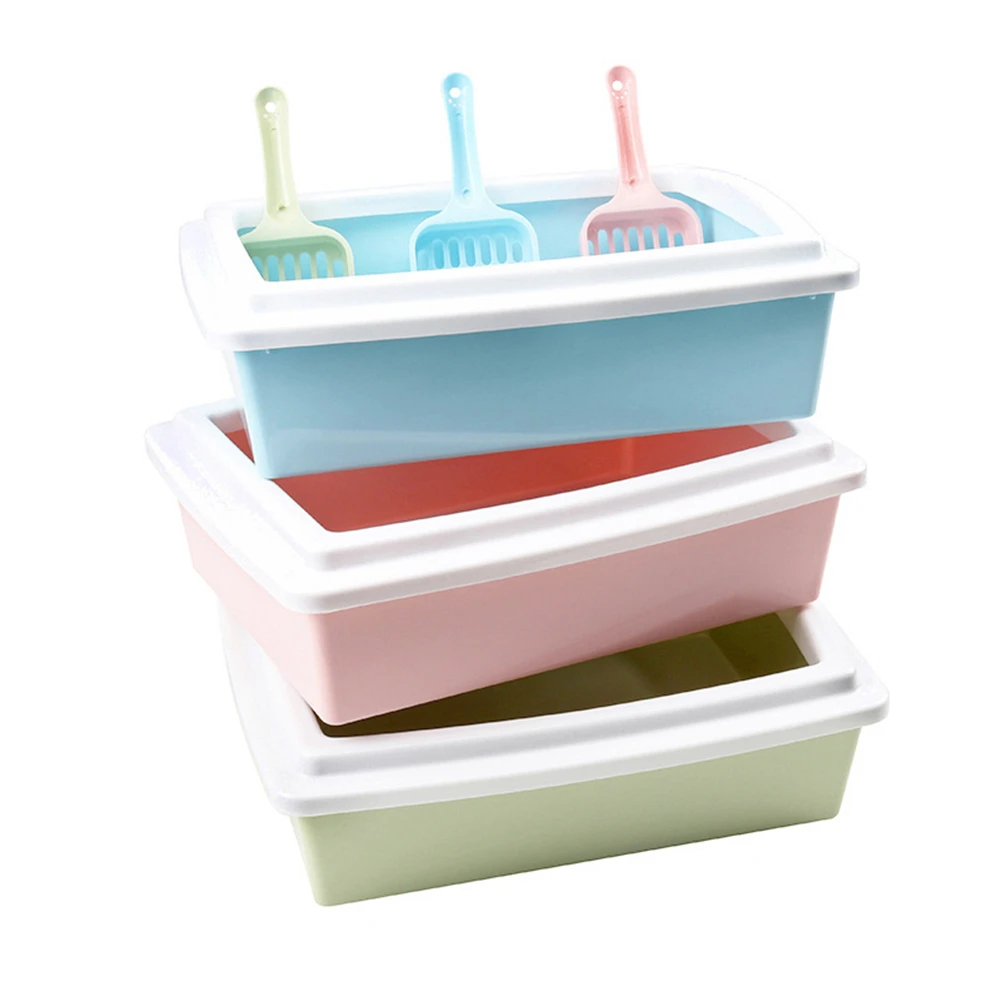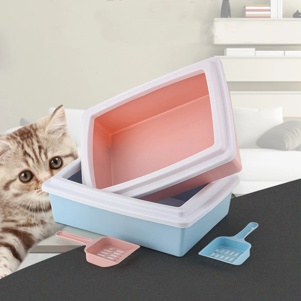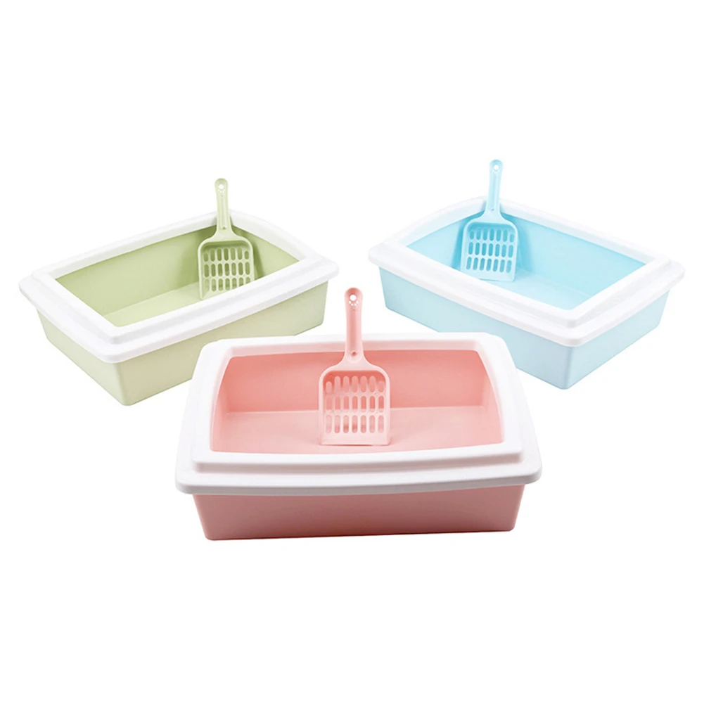 Inodoro para mascotas con cuchara, bandeja para perros y gatos, caja de arena antisalpicaduras de plástico para el hogar, caja de arena para gatos, suministros de aseo para perros y gatitos
