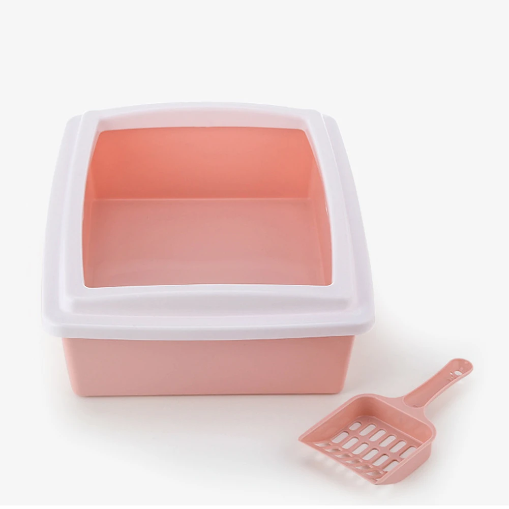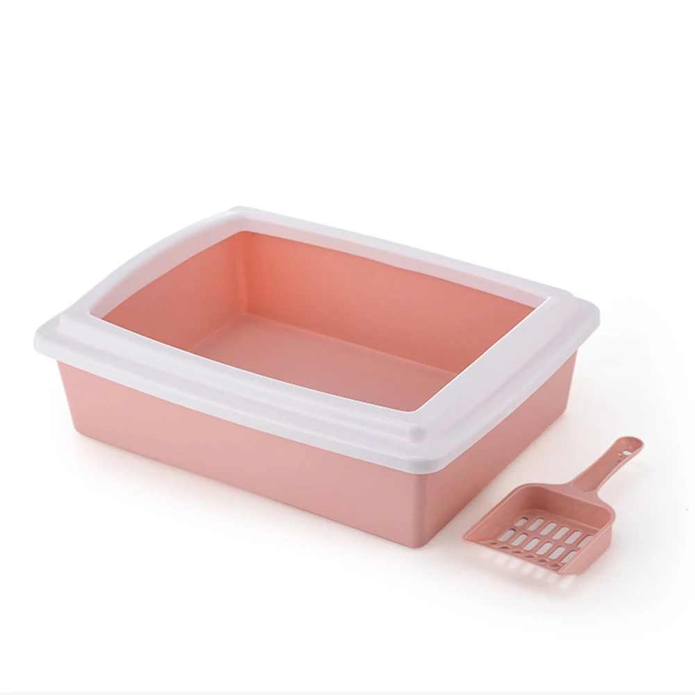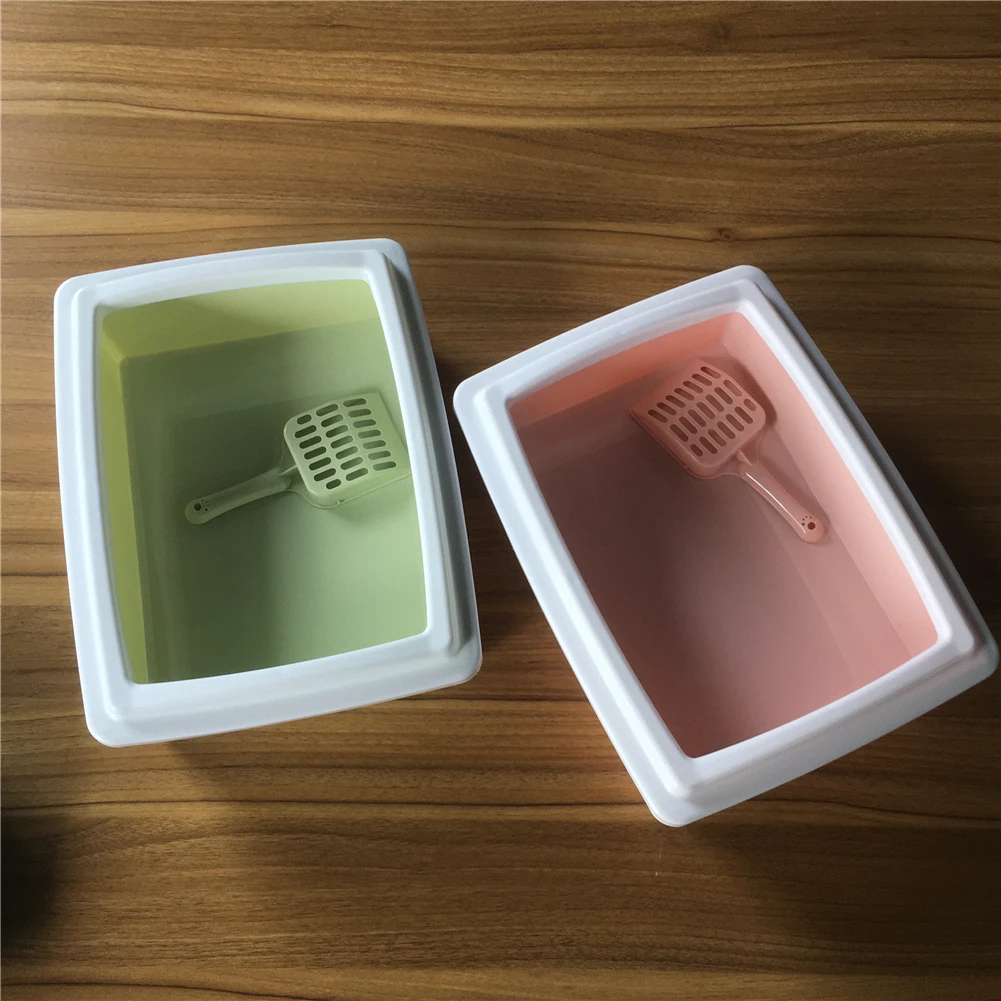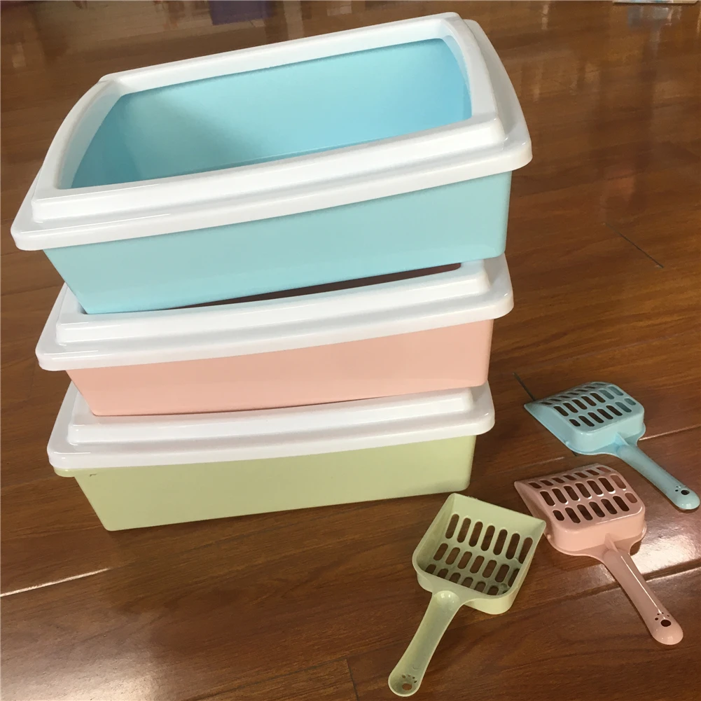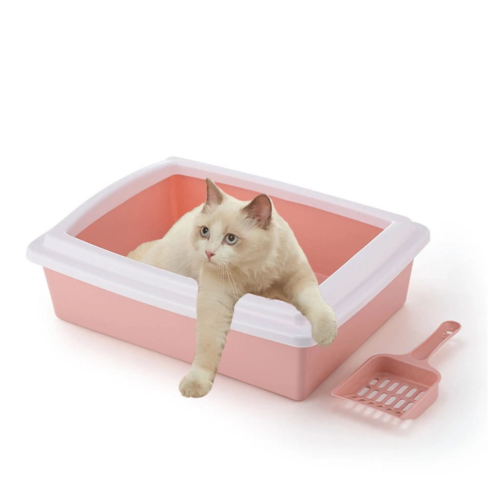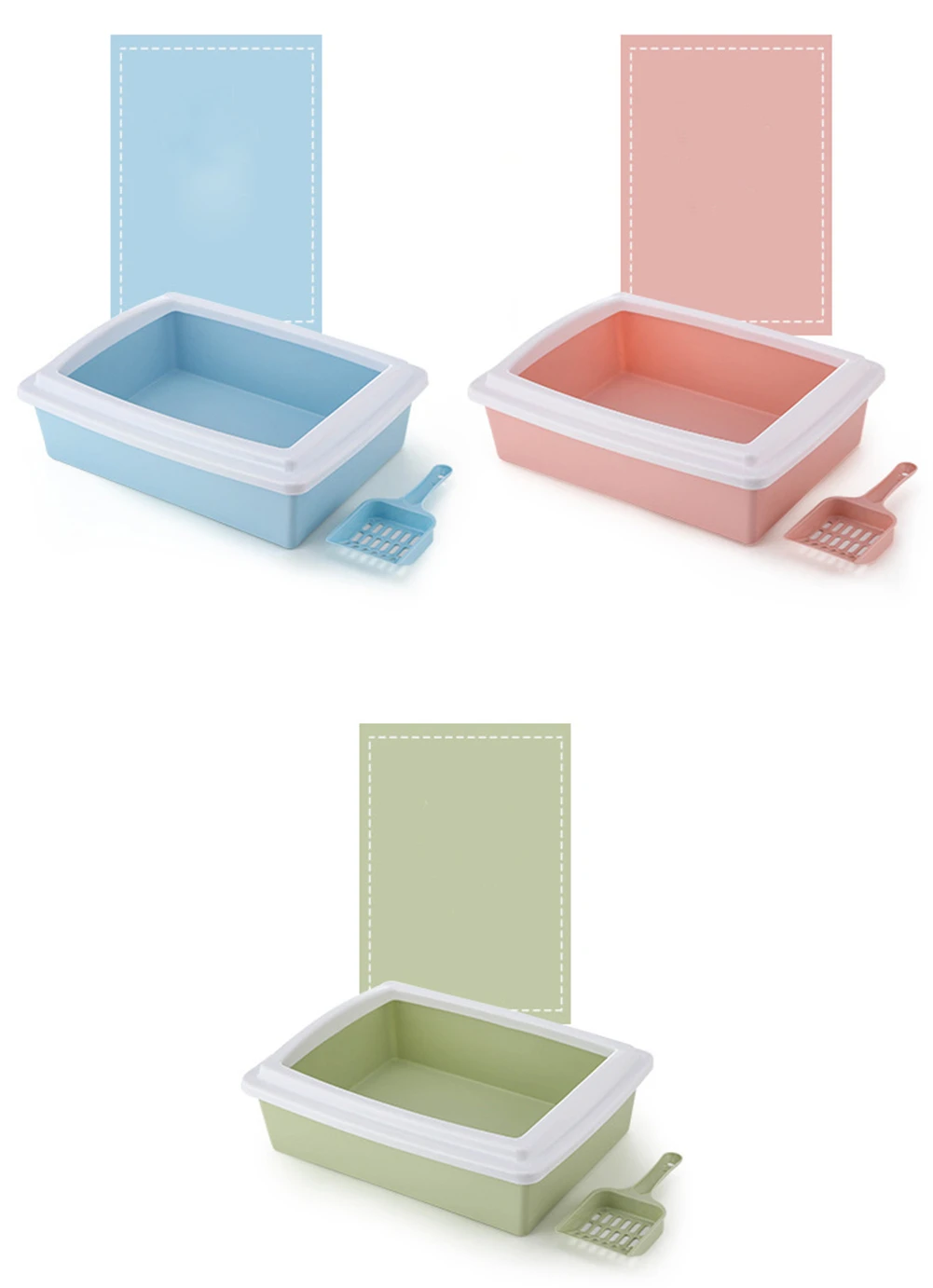 Inodoro para mascotas con cuchara, bandeja para perros y gatos, caja de arena antisalpicaduras de plástico para el hogar, caja de arena para gatos, suministros de aseo para perros y gatitos