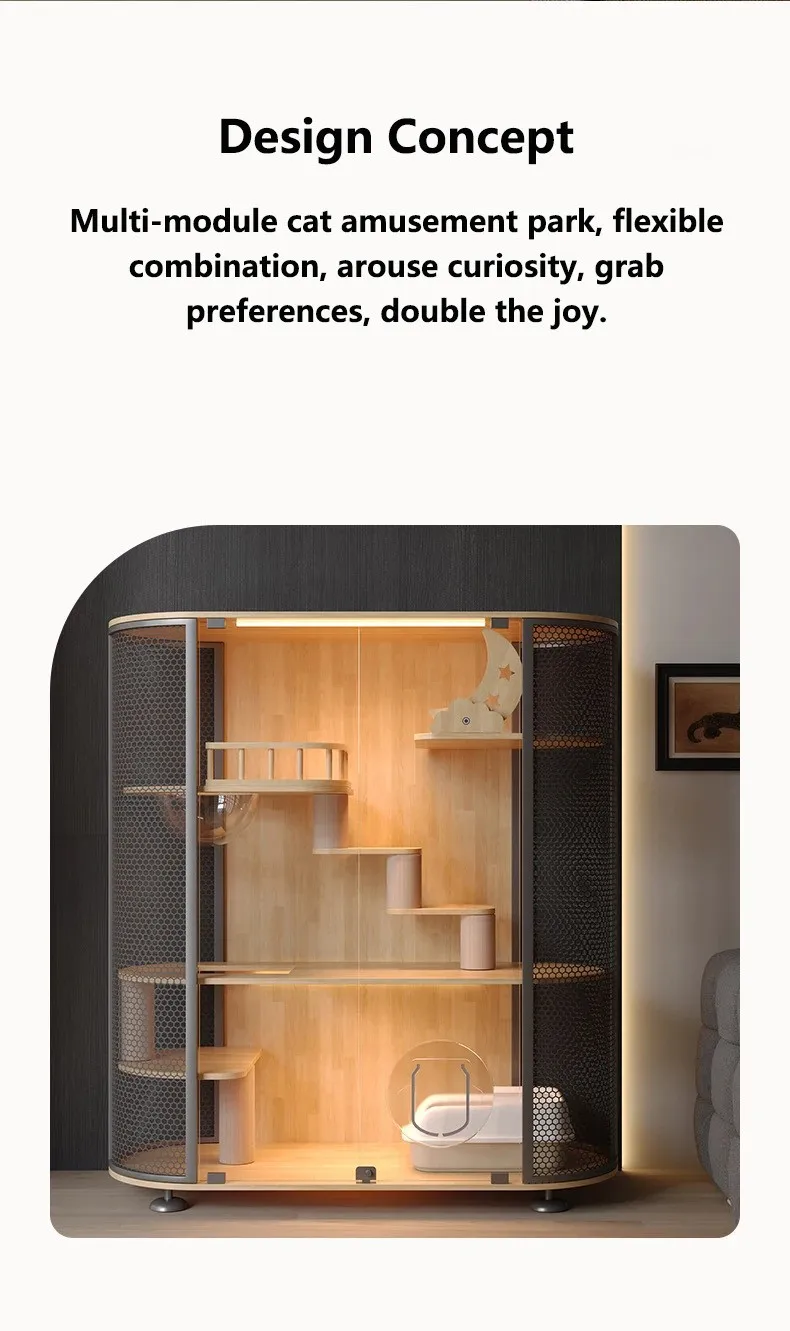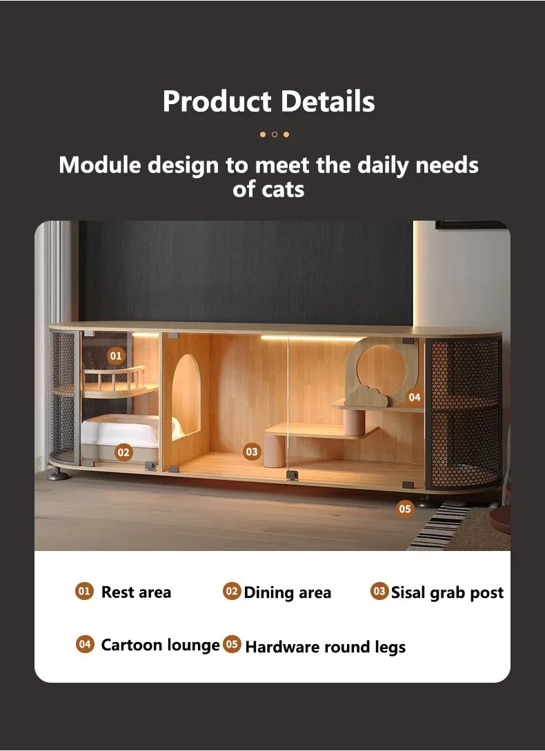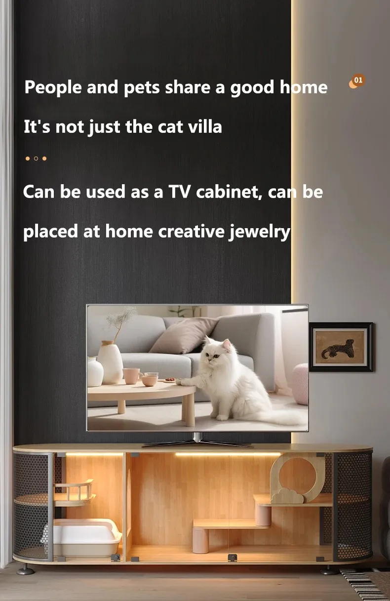 Armario de lujo de alta gama para mascotas y Tv, casa de madera maciza para gatos, jaula para gatos, malla transpirable de acero inoxidable, casa para mascotas pequeñas