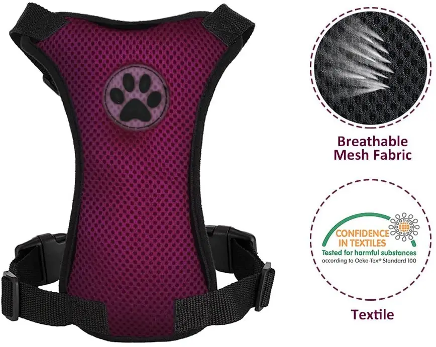 Las correas se aprietan de forma segura, por lo que los perros no pueden deambular por el automóvil para evitar que los perros se suban al asiento delantero, pero no tiran de ellas.