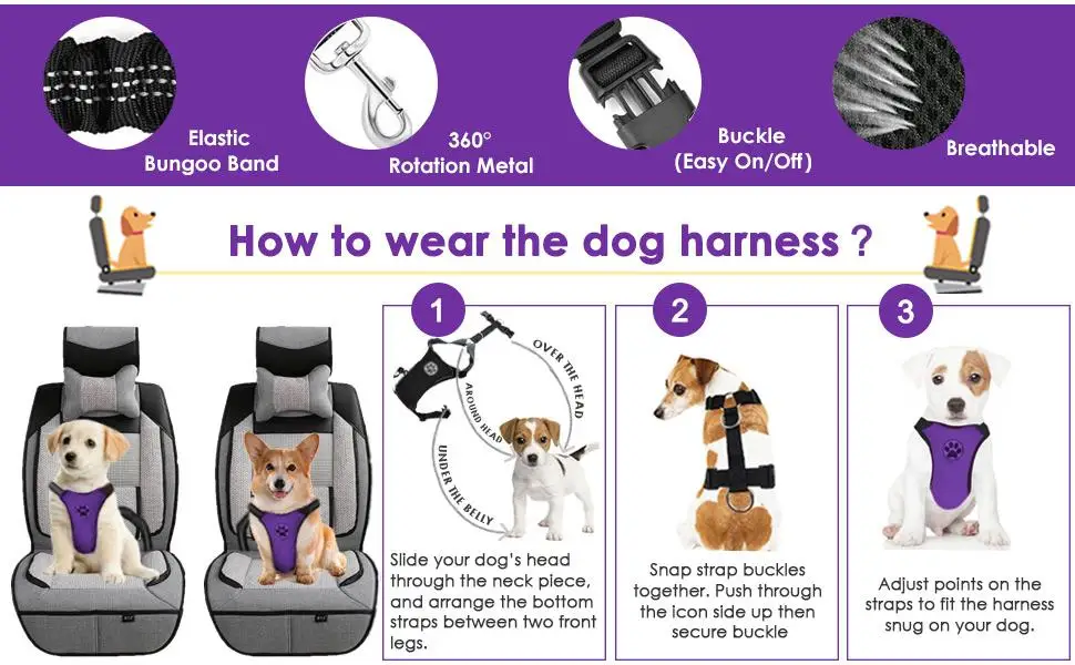 Este cinturón de arnés multifuncional no solo puede combinar placer con tratamiento durante el viaje, también puede ser una colocación con la correa retráctil para perros. También se puede usar un arnés regular que se conecta con la correa retráctil para perros como arnés regular.