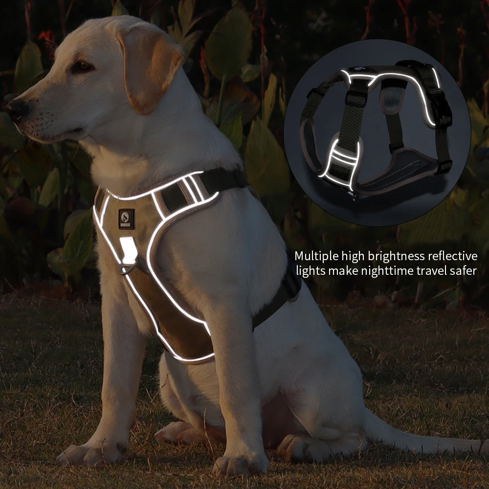 Mango práctico resistente: Nuestro arnés para perros viene con un punto de fijación resistente de la correa del anillo en D y un mango de agarre fácil para ayudarle a controlar y ayudar a su perro.