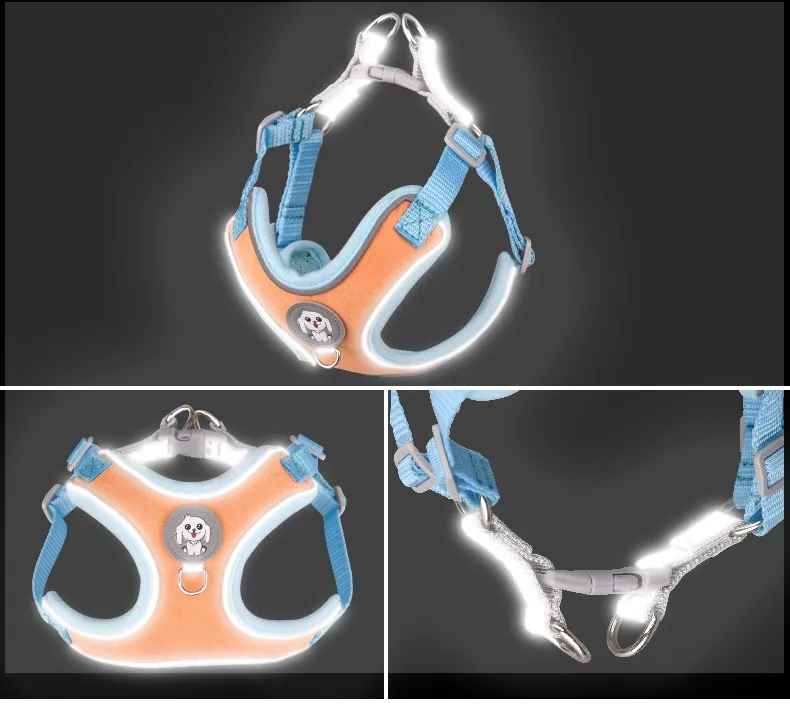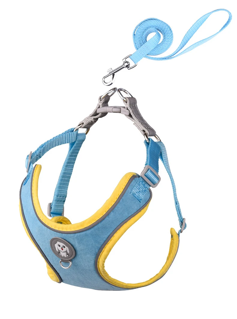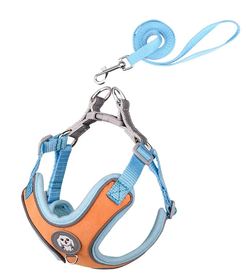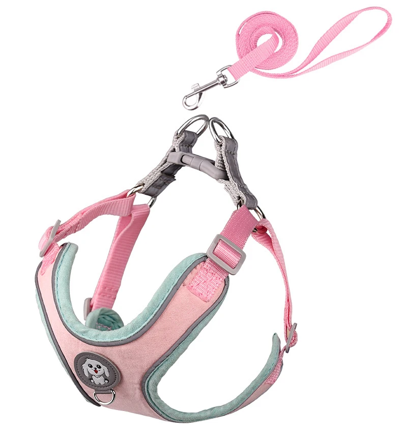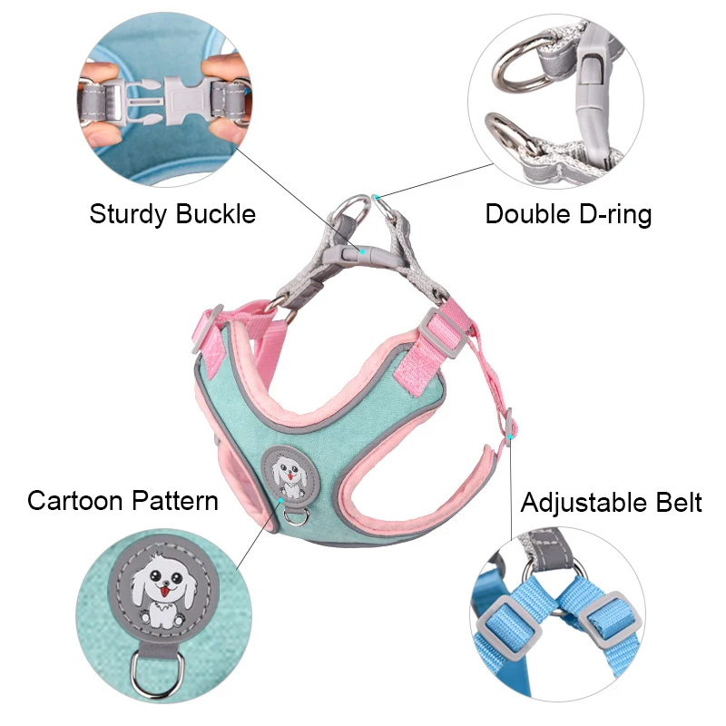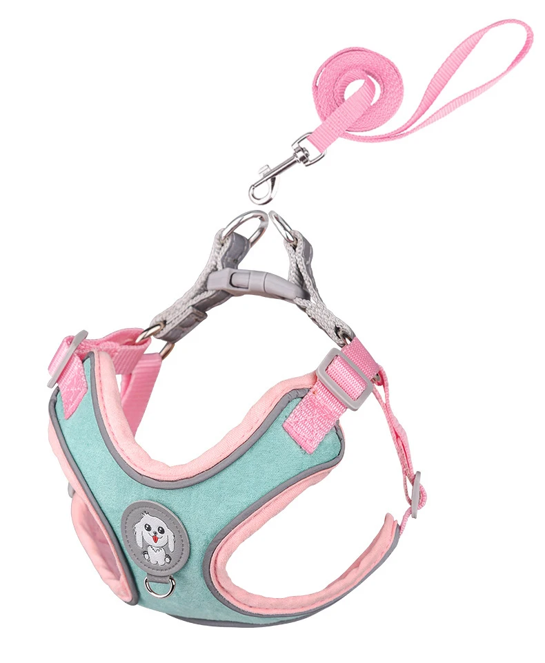 *4 colores: rosa, verde, naranja, azul.*Características: Suave, Cómodo, Ajustable*Apto para: perros pequeños y medianos, por ejemplo, Chihuahua, Yorkie, Bulldog francés, etc.*Paquete: Arnés X 1, Correa X 1