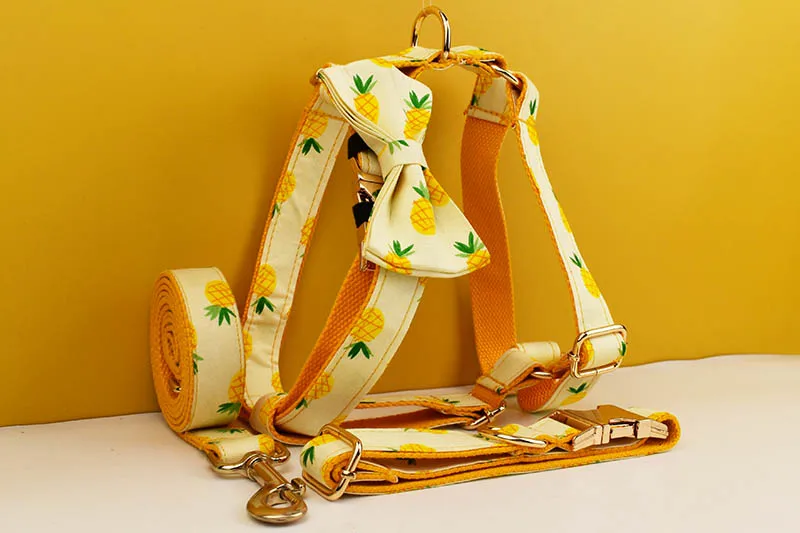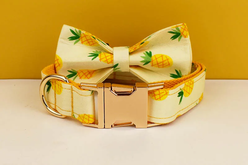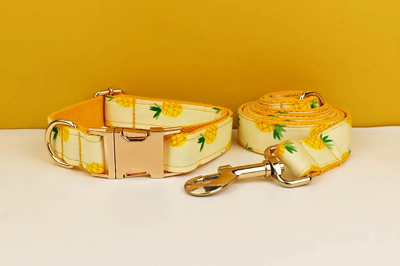 Piña frutaCollar de perro y juego de correa para perros Placa de identificación grabada personalizada Suministros para mascotas Correa para perroFruta 01