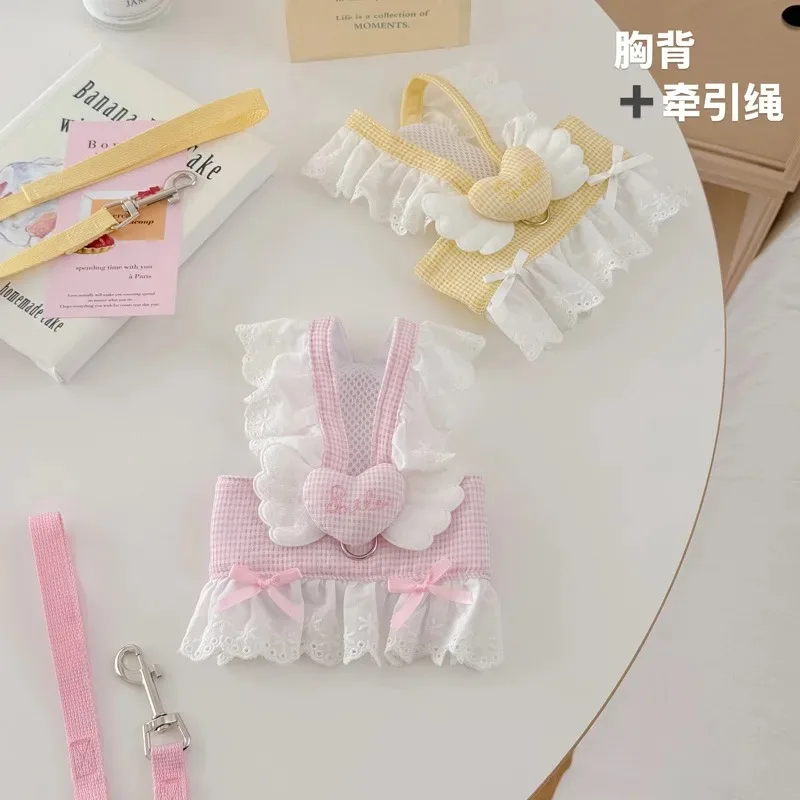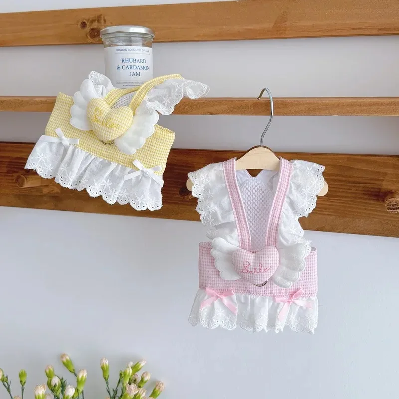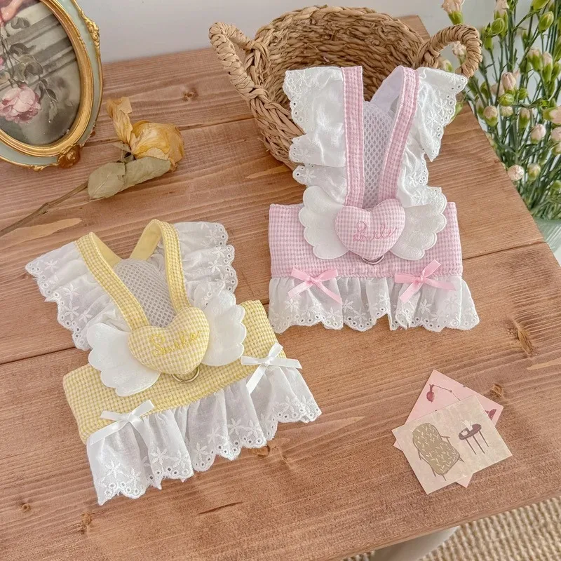 Arnés de amor para mascotas, vestido a cuadros de helado de verano con alas, vestido de princesa para perros y gatos, se puede tirar, ropa para cachorros pequeños