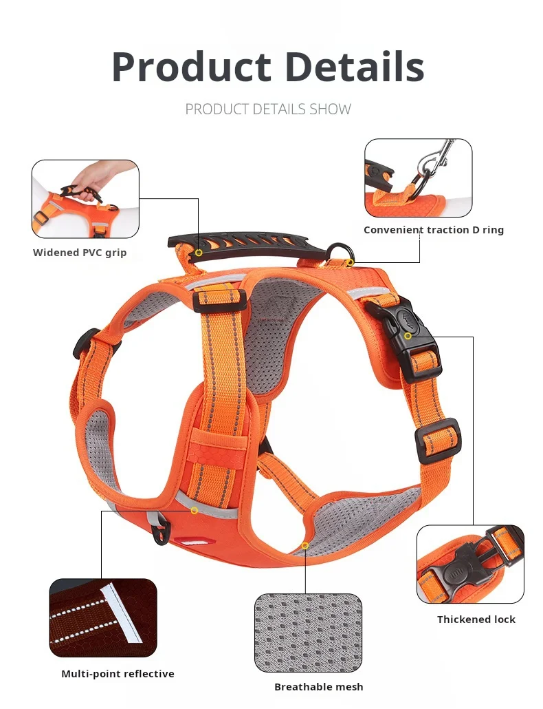 Arnés antichoke para perros grandes, cómodo, duradero, ajustable con mango de fácil Control