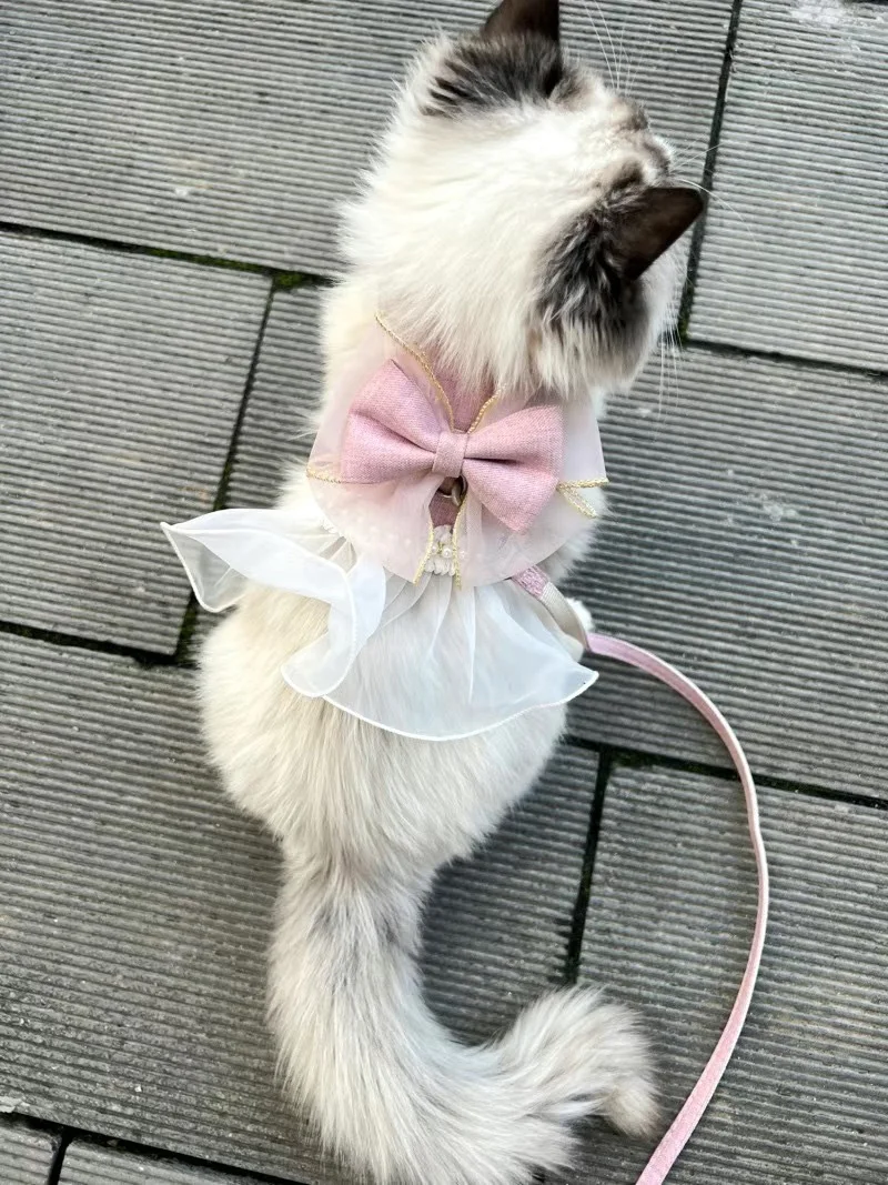 Arnés bonito para gatos con lazo, correa transpirable para el pecho para gatos, perros pequeños, arnés ajustable para cachorros, arnés para perros y gatos al aire libre
